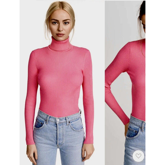 525 American Pink Form Fitting Ribbed Knit Long Sleeve Turtleneck Top Small