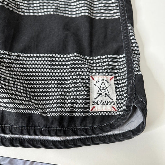 3rd & Army Mens Black & White Stripe Tie Waist Back Button Pocket Board Short 30