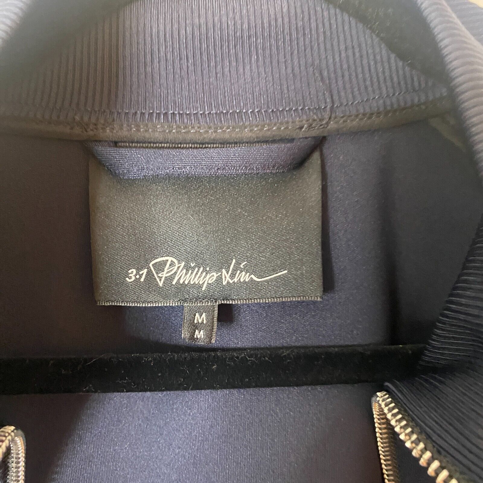 3.1 Phillip Lim Dark Navy Blue Track Jacket Zip Front Black Stripe Piping Medium