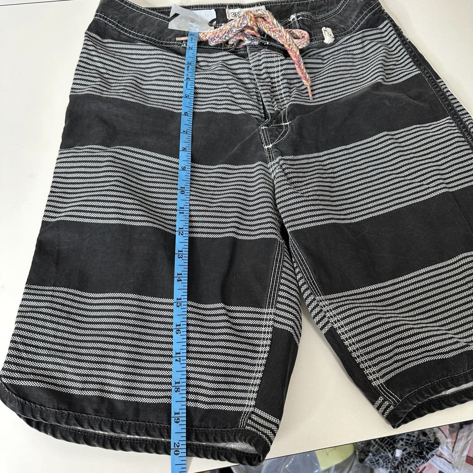 3rd & Army Mens Black & White Stripe Tie Waist Back Button Pocket Board Short 30