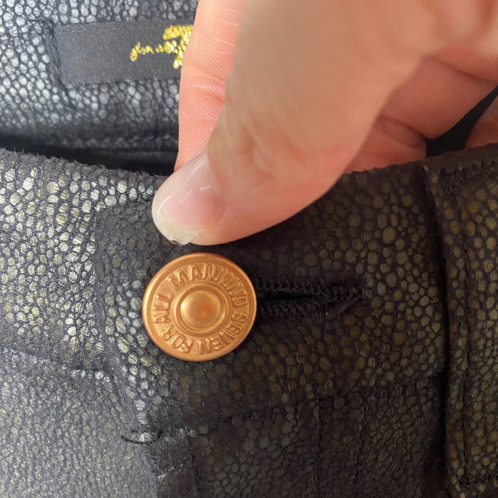 7 For All Mankind Black Crackled Gold Shimmer Stretch Faux Leather Skinny Pants Jeans