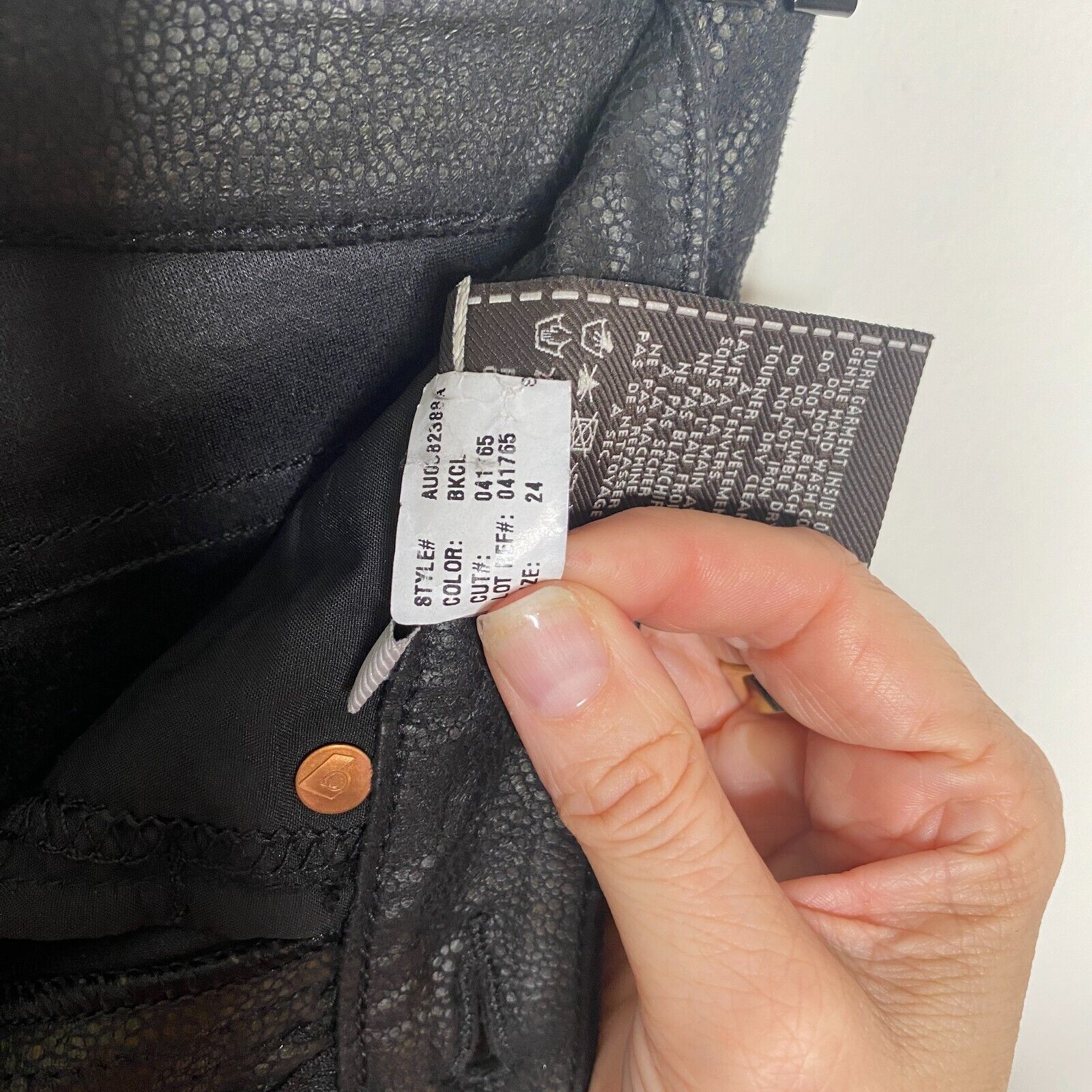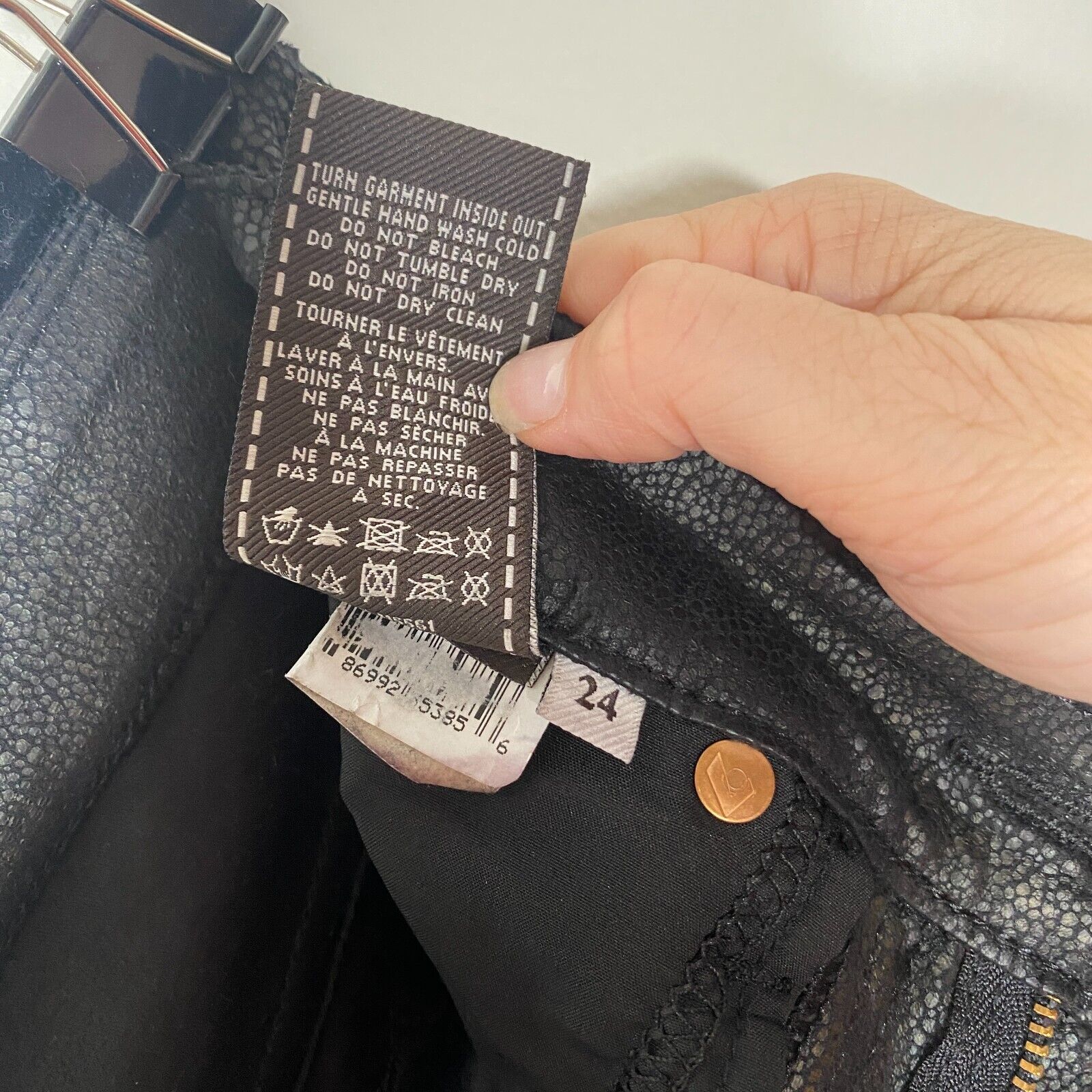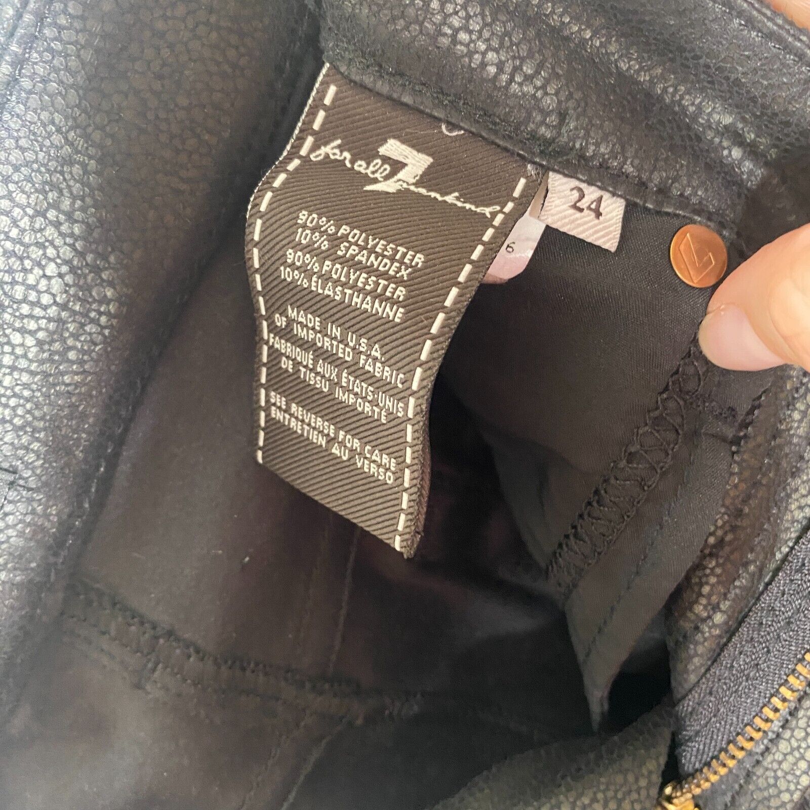 7 FAM Sexy Black Crackled Gold Shimmer Stretch Faux Leather Skinny Pant Size 24