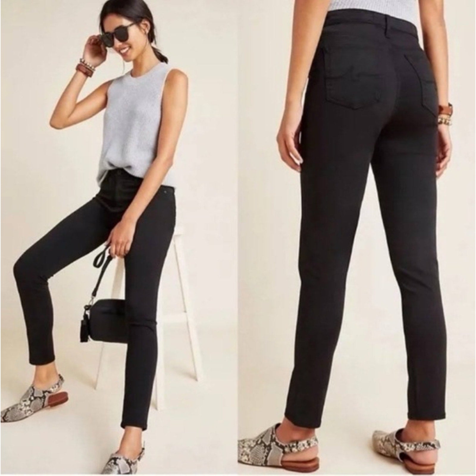 Adriano Goldschmeid Black The Abbey Ankle Mid Rise Super Skinny Ankle Jeans 27