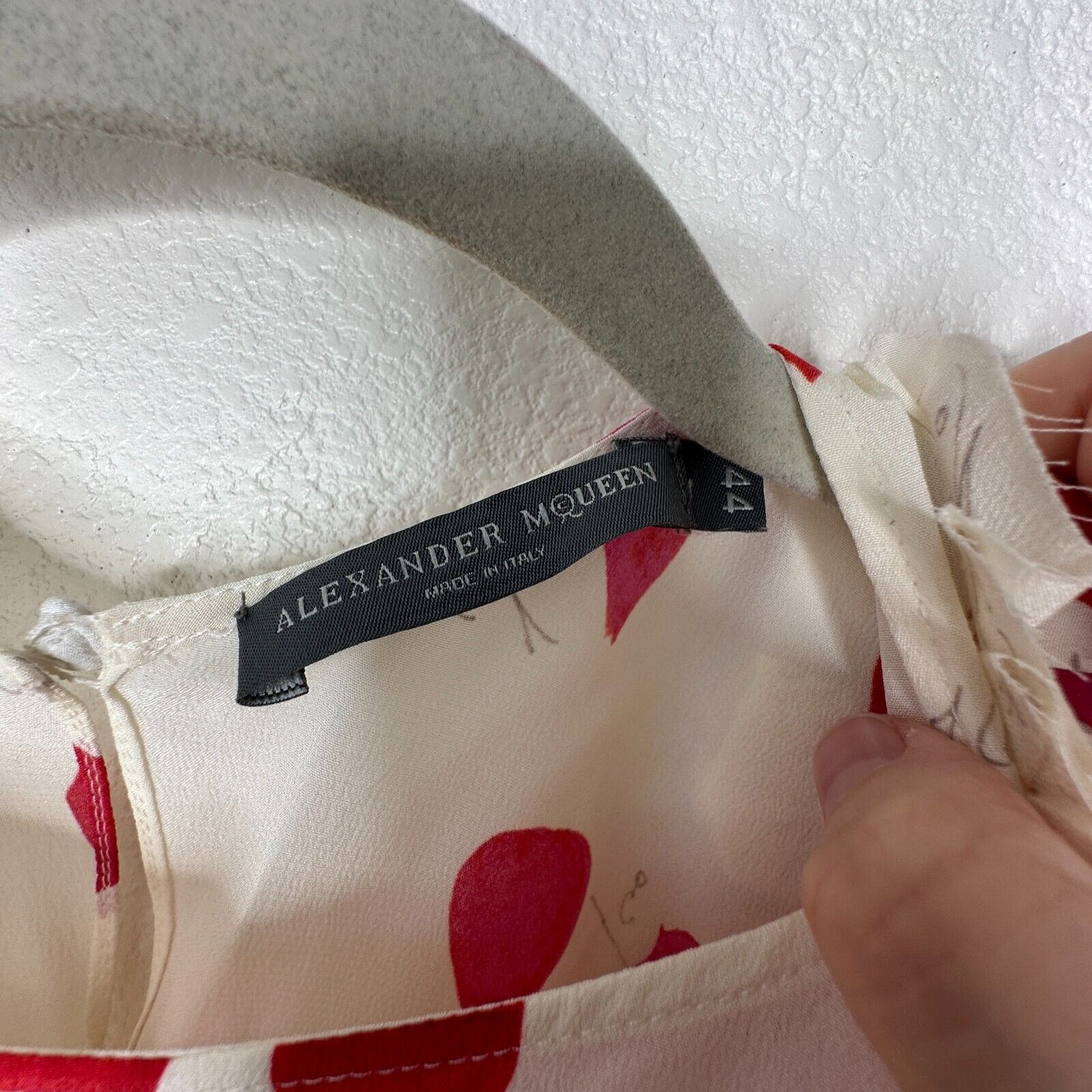 Alexander McQueen Cream Red Sleeveless Asymmetric Pleated Ruffle Blouse 100% Silk