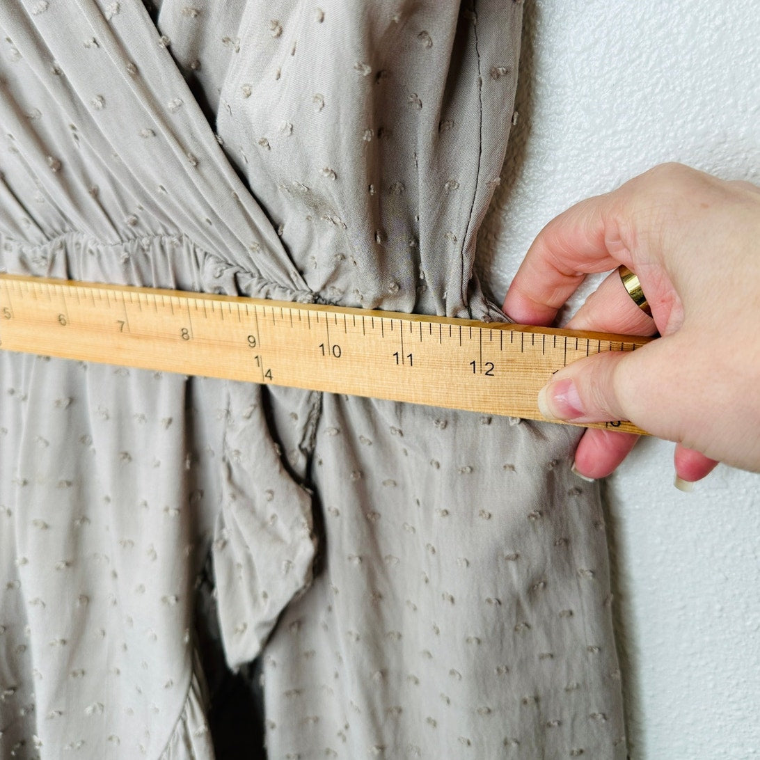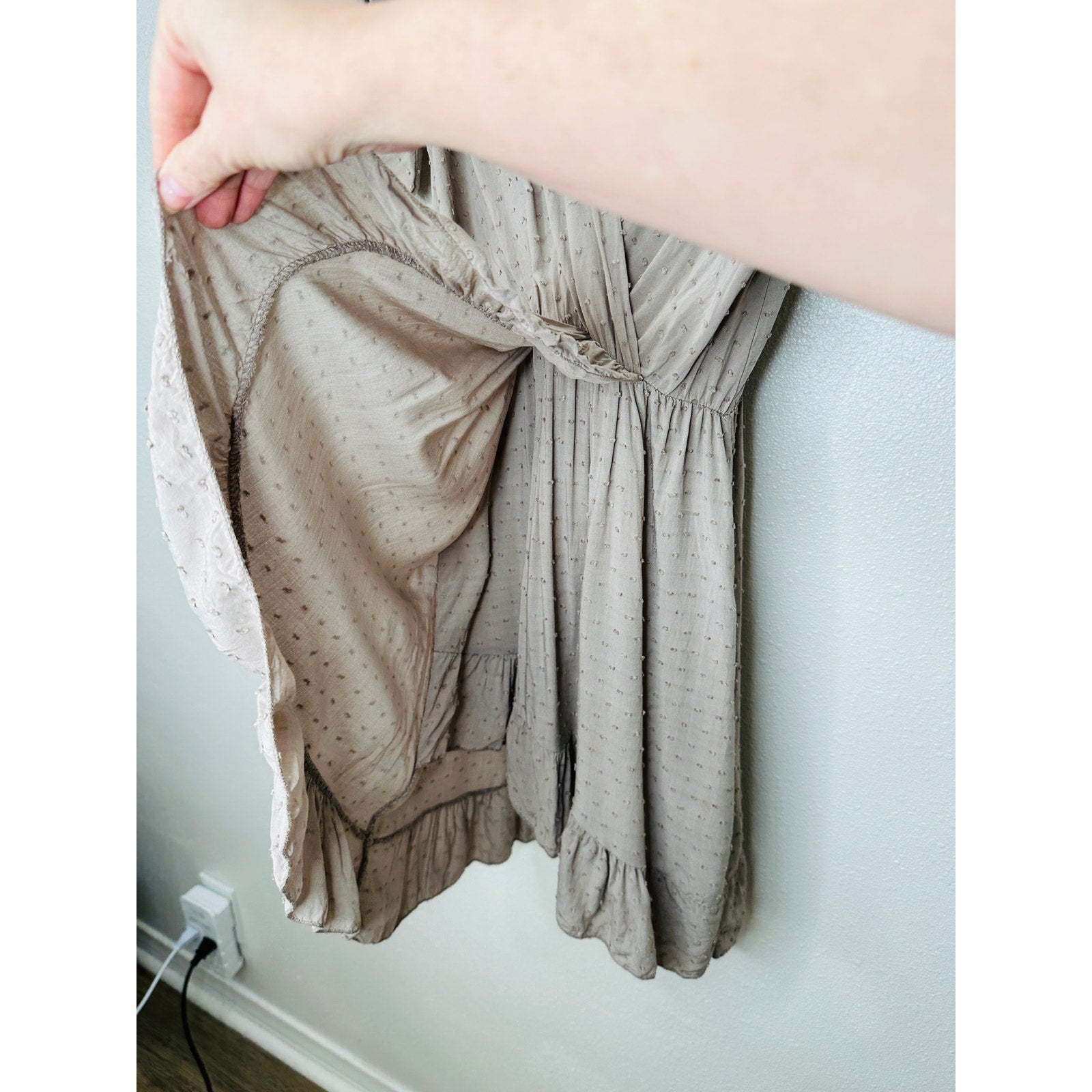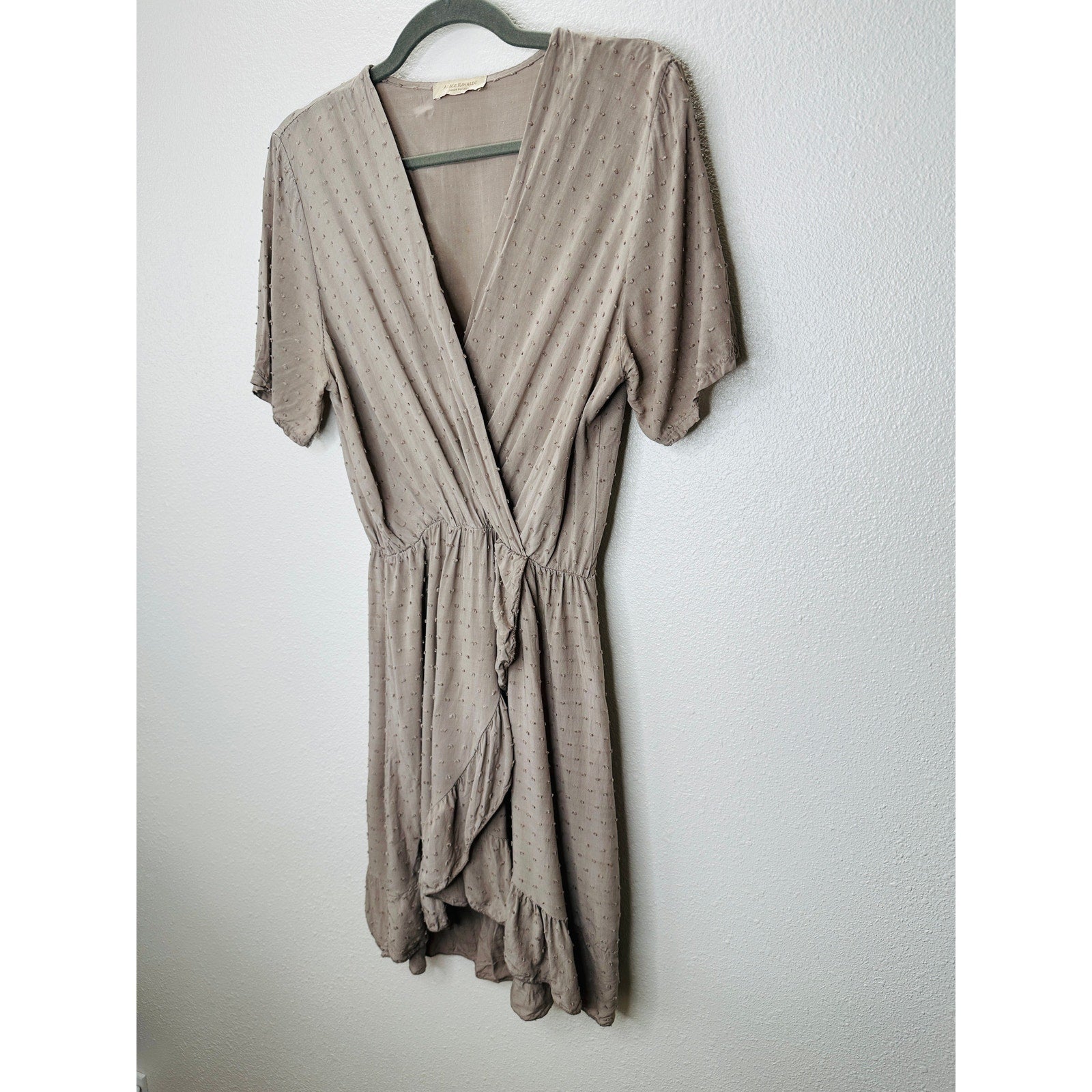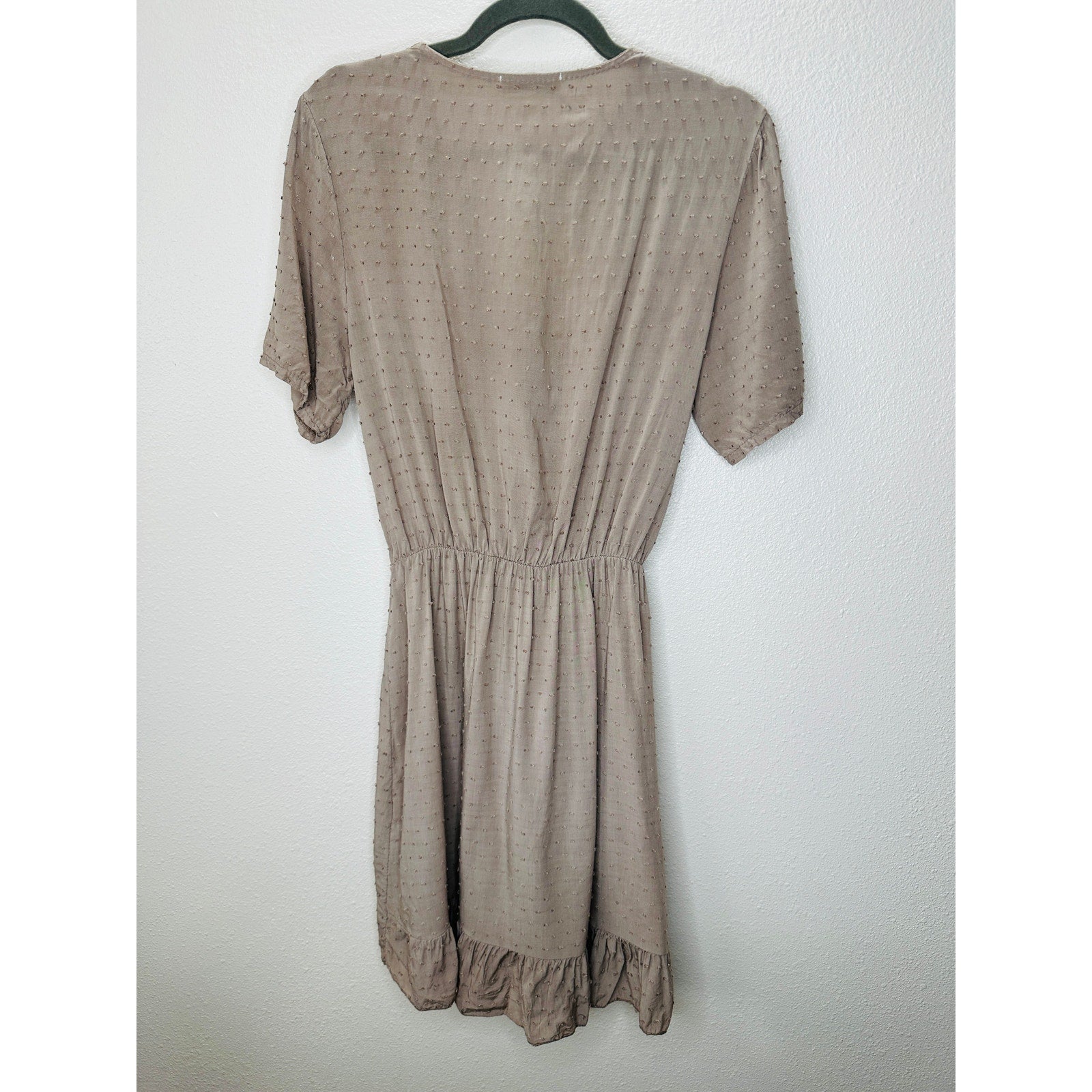 Alice Rinaldi Taupe Tonal Polka Dot Short Sleeve Faux Wrap Ruffle Dress M