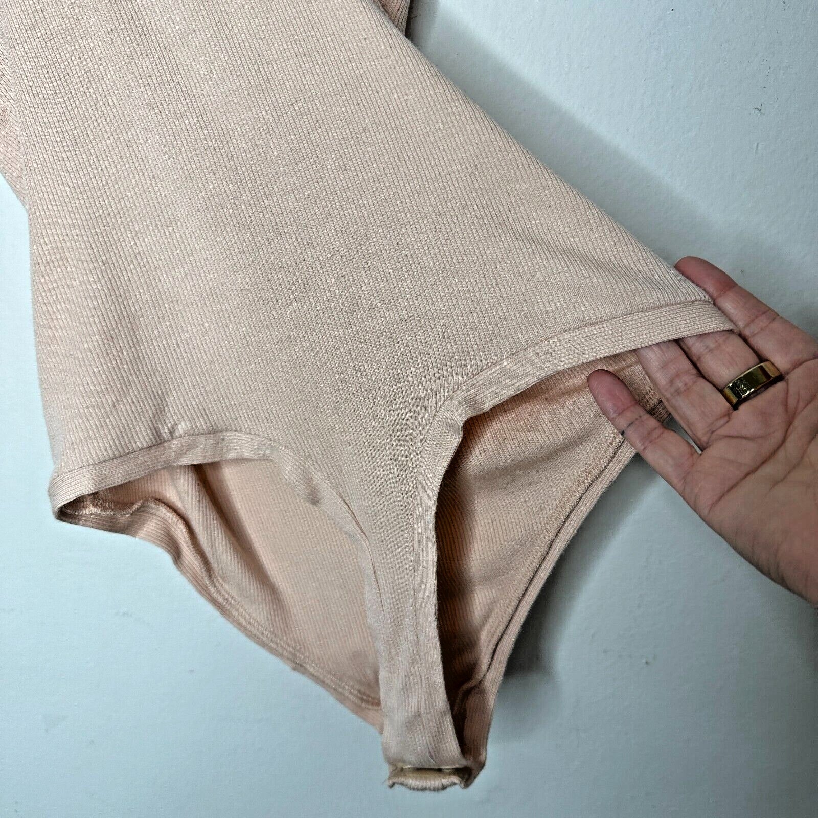 Alix NYC Tan Allen Asymetrical Scoop Neckline Sleeveless Ribbed Knit Bodysuit SM