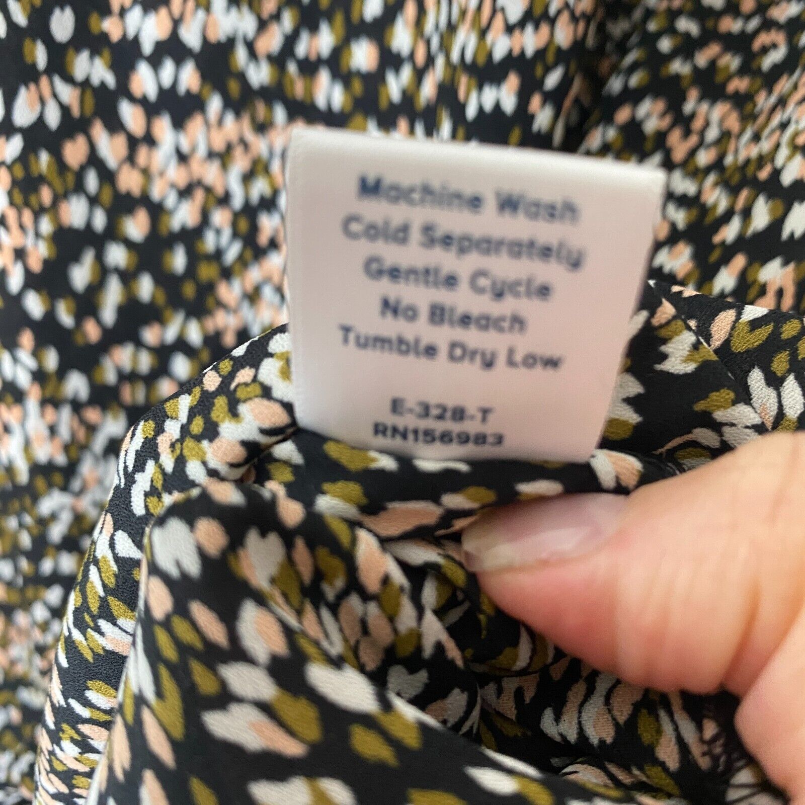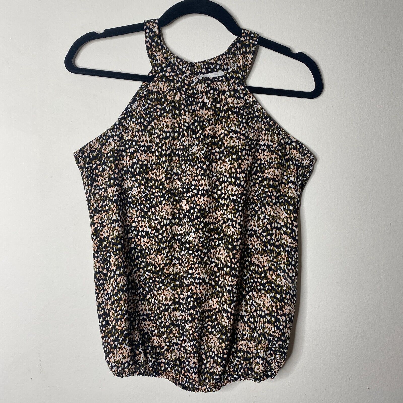 Allison Joy Black Peach Cream & Olive Print Halter Neck Sleeveless Tank Blouse S