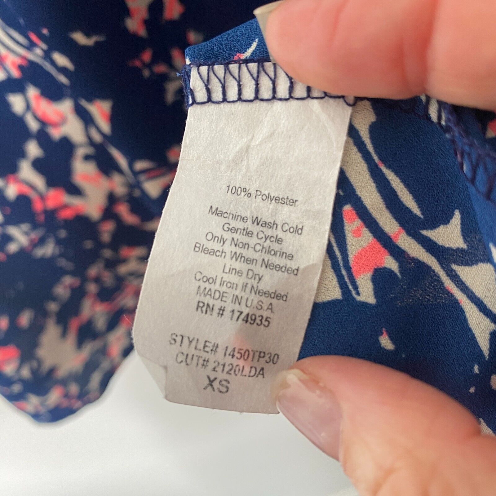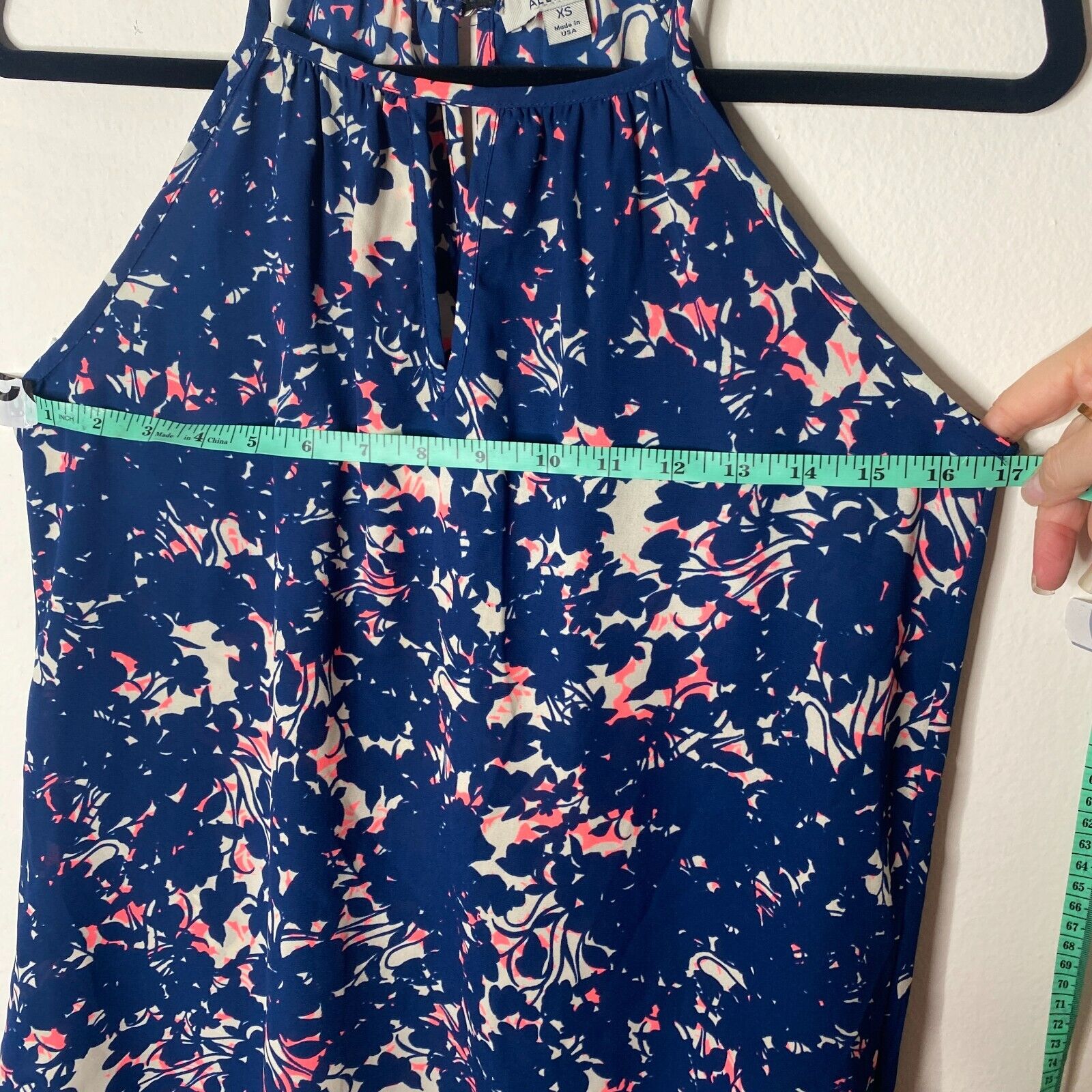 Allison Joy Cassidy Tank Navy Pink Keyhole VNeck Sleeveless Back Button XS