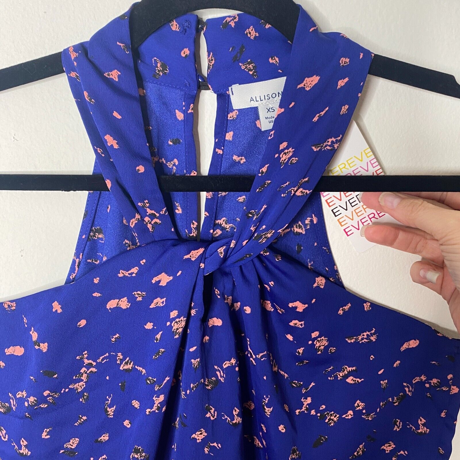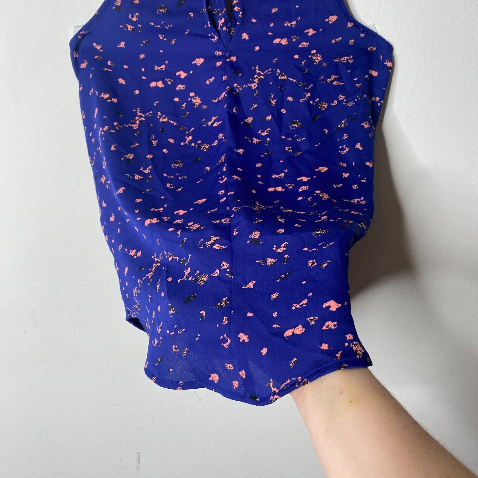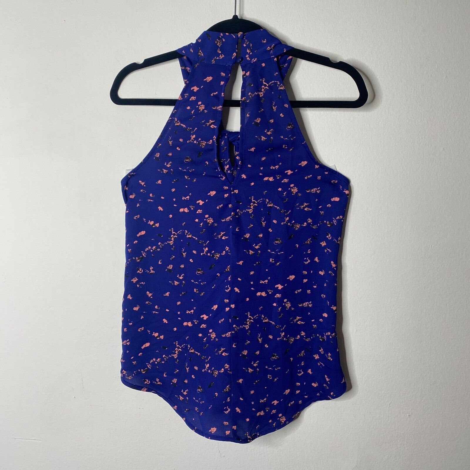 Allison Joy Twist Front Keyhole Halter Back Sleeveless Blue & Peach Tank top XS