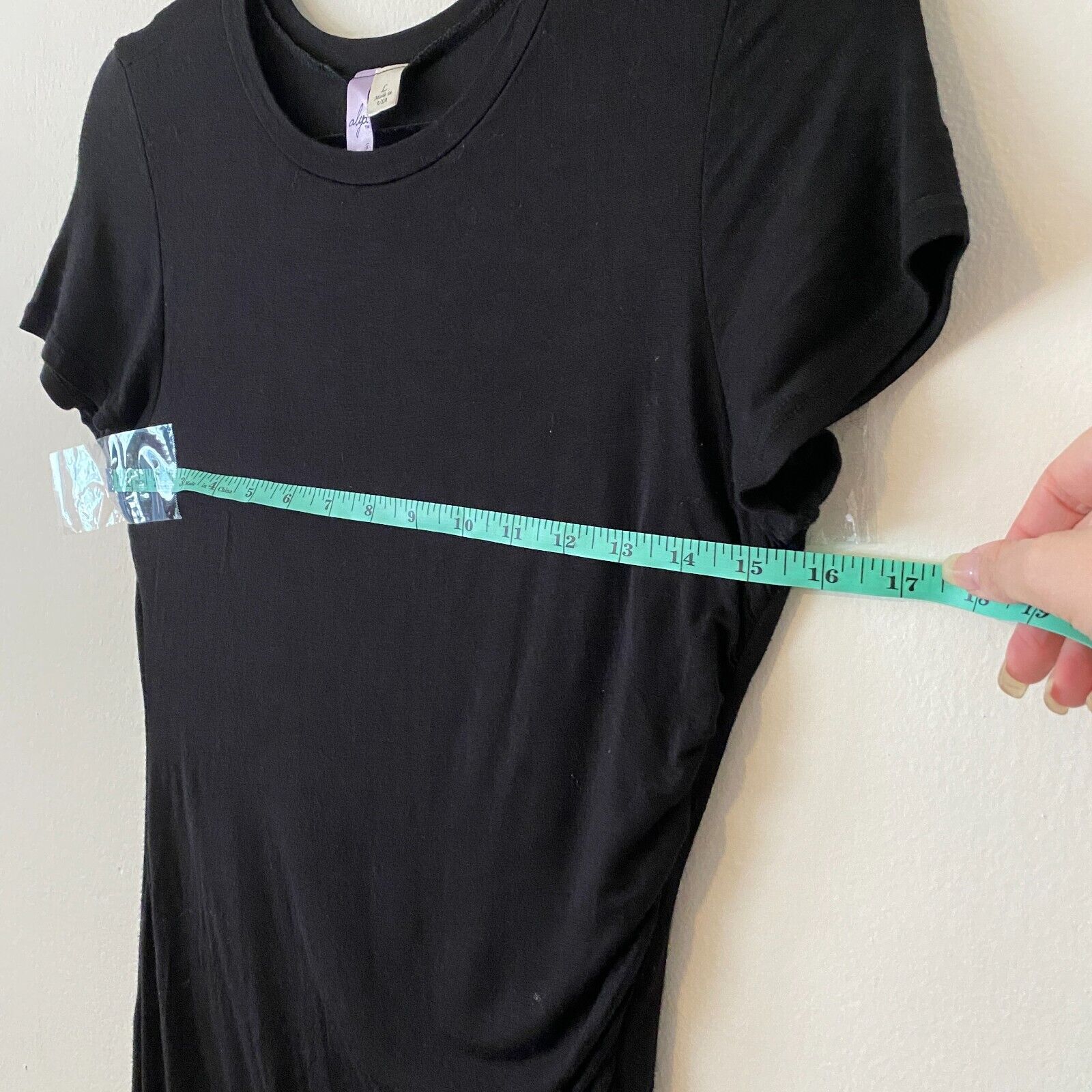 Alya Cute Black Bodycon Stretchy TShirt LBD Dress Asymmetrical Ruched Side Large