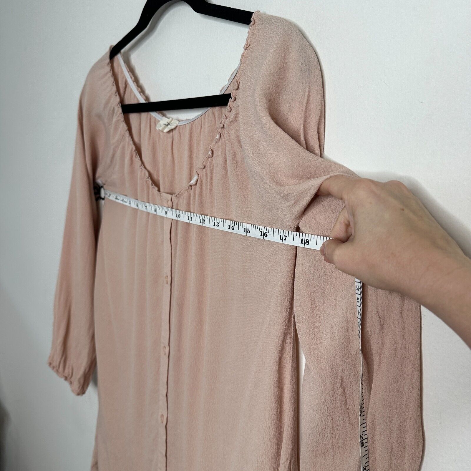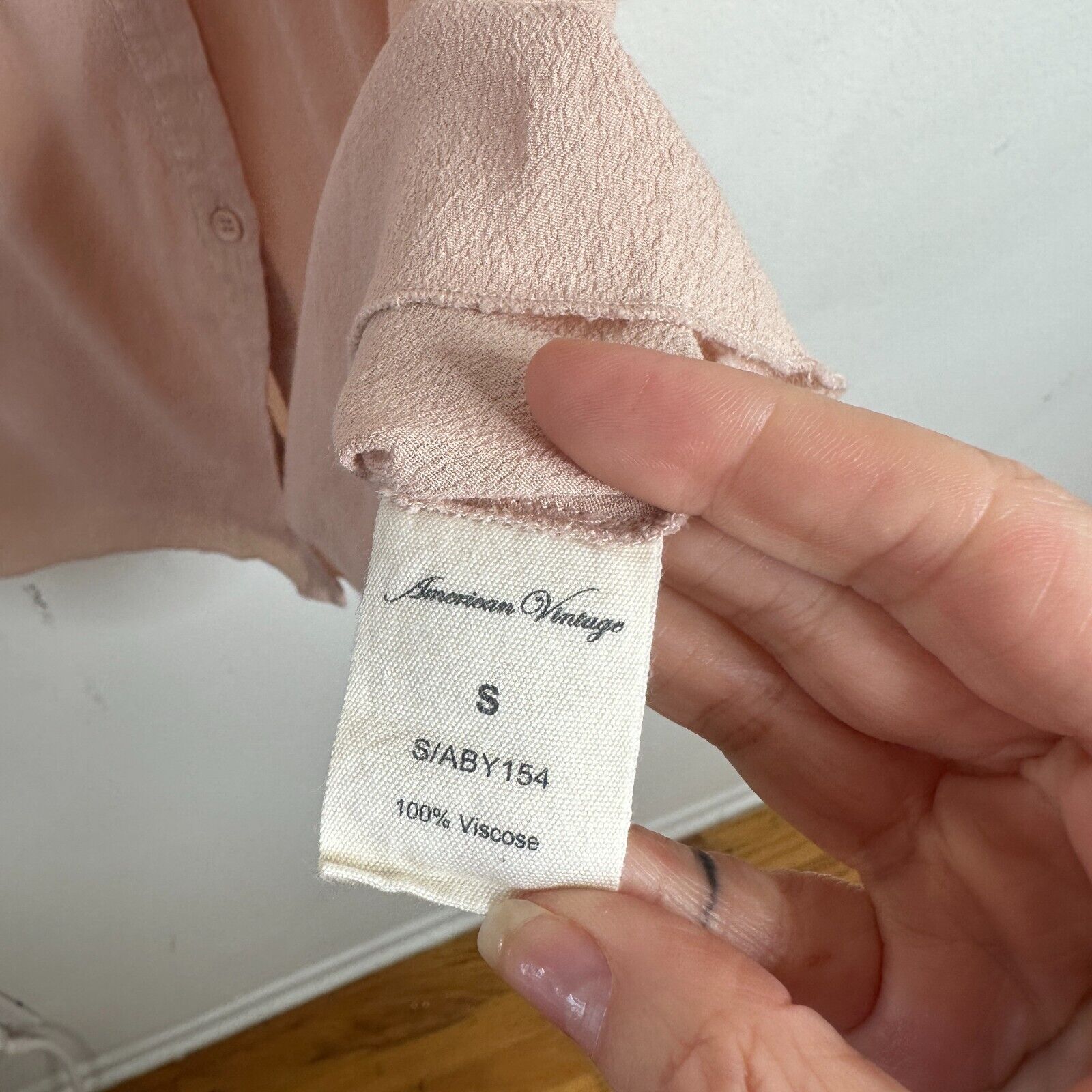 American Vintage Blush Off Shoulder 3/4 Sleeve Flowy Button Up Blouse Top Small