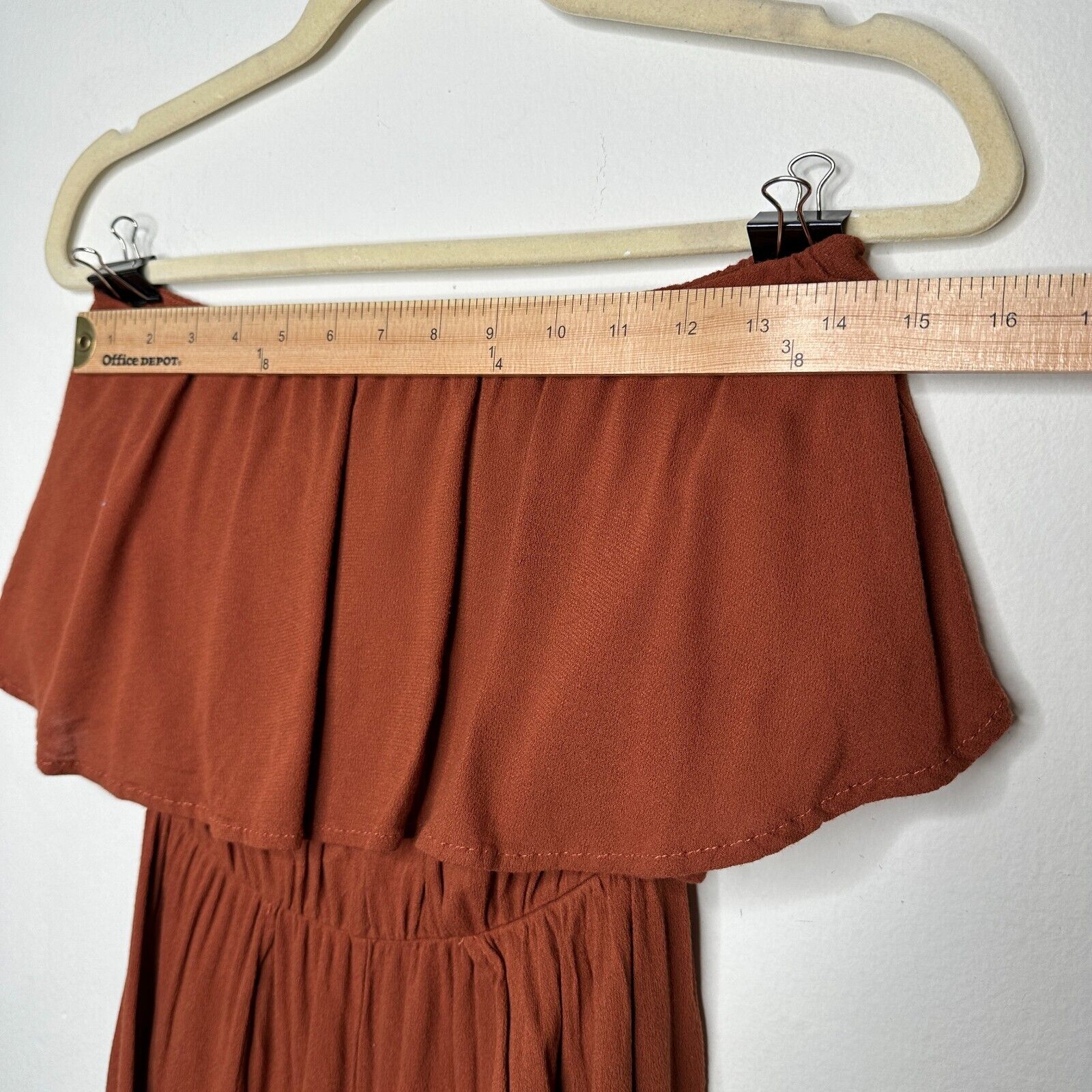 Angl Rust Bronze Brown Bandeau Ruffle Off-Shoulder Harem Slit Pant Jumpsuit SM