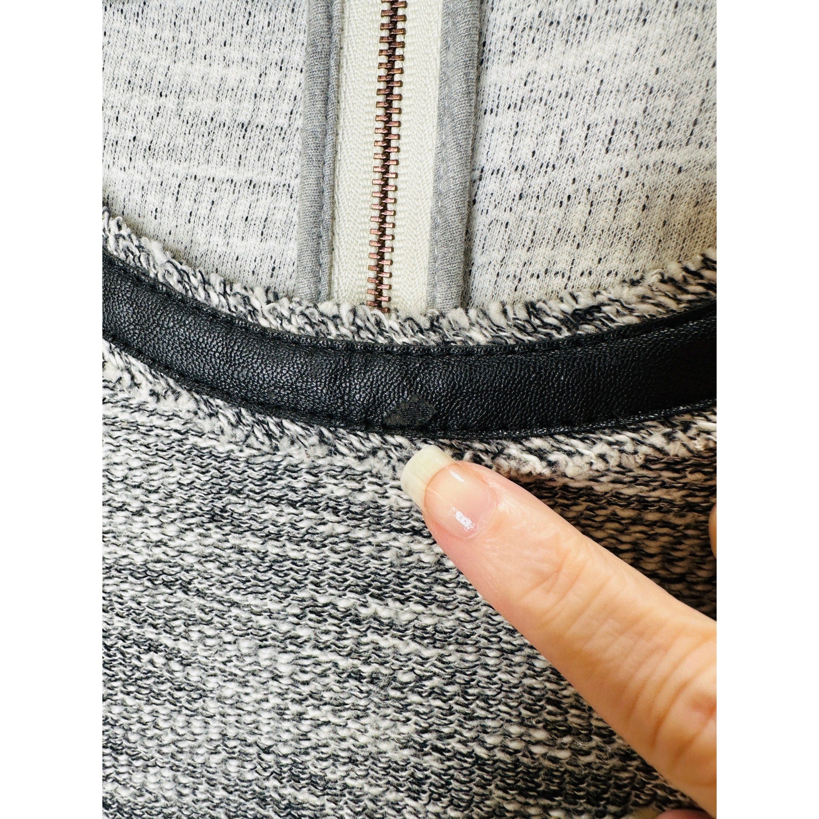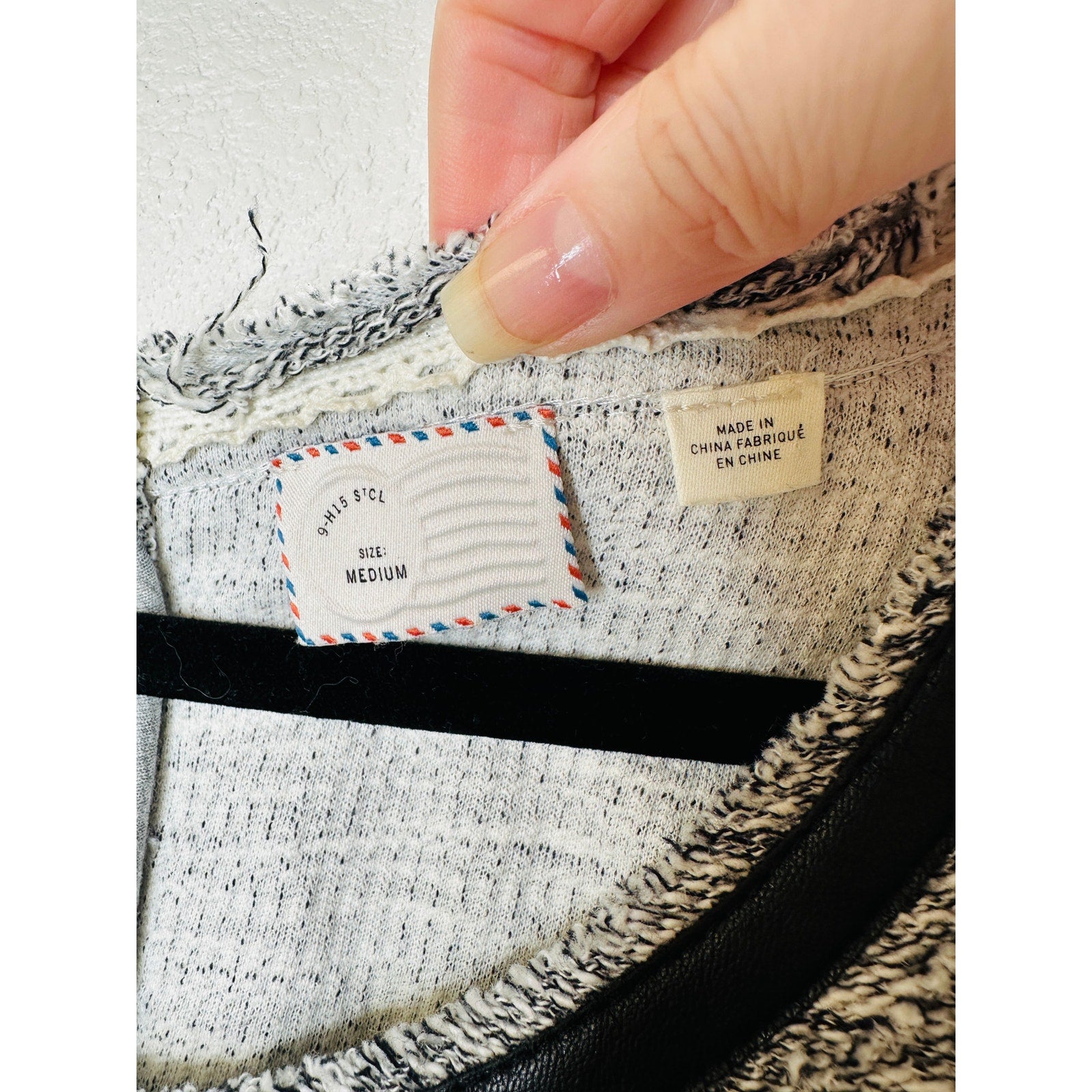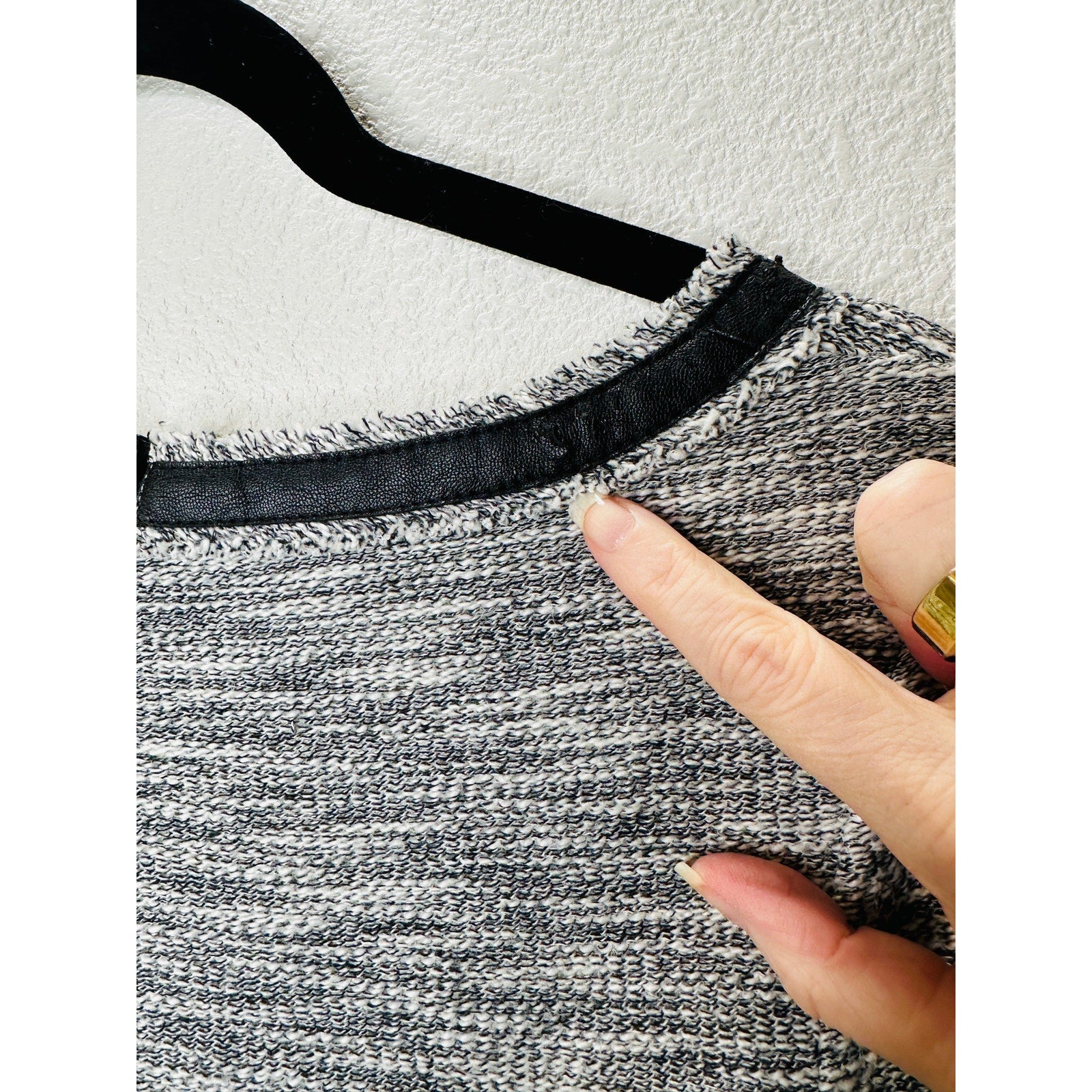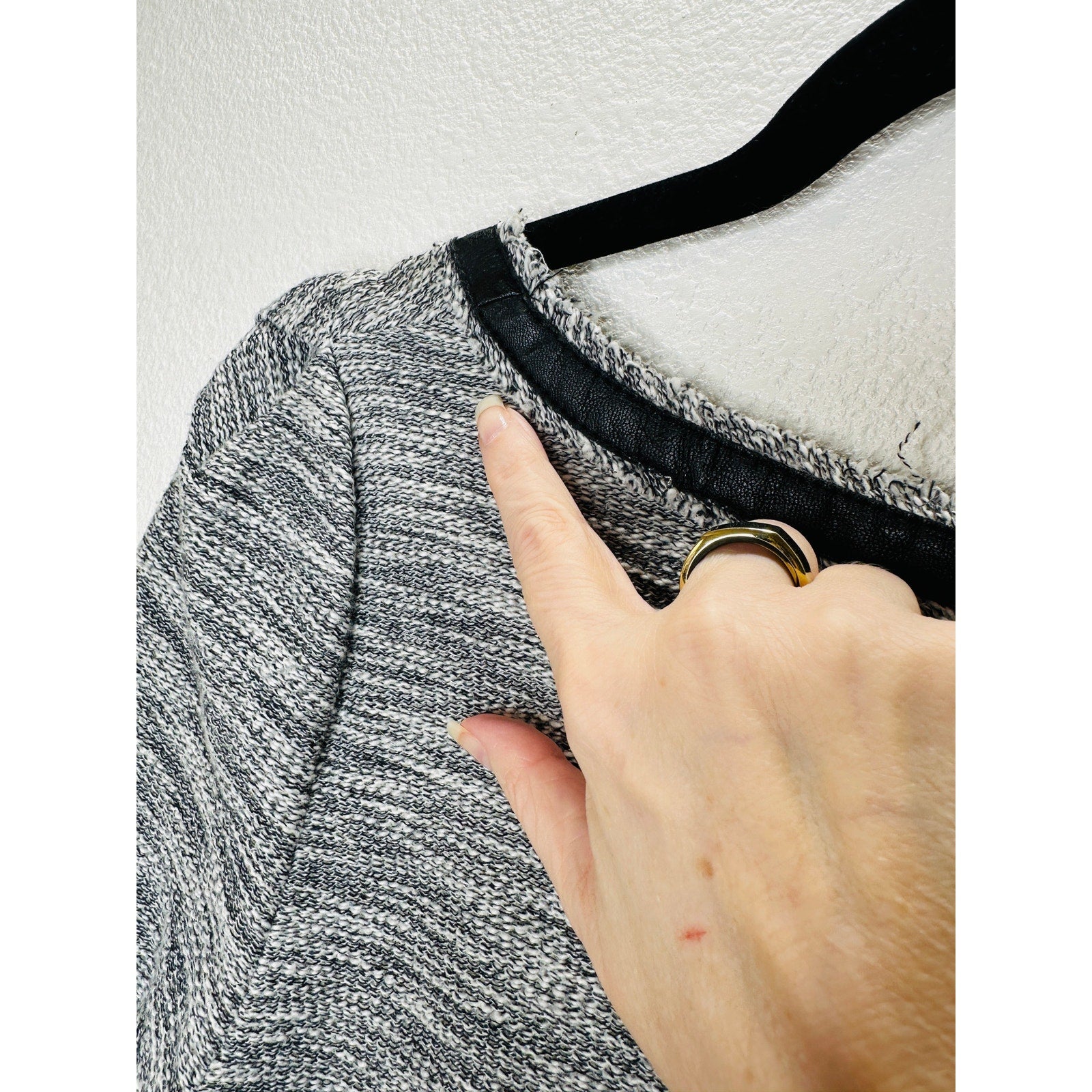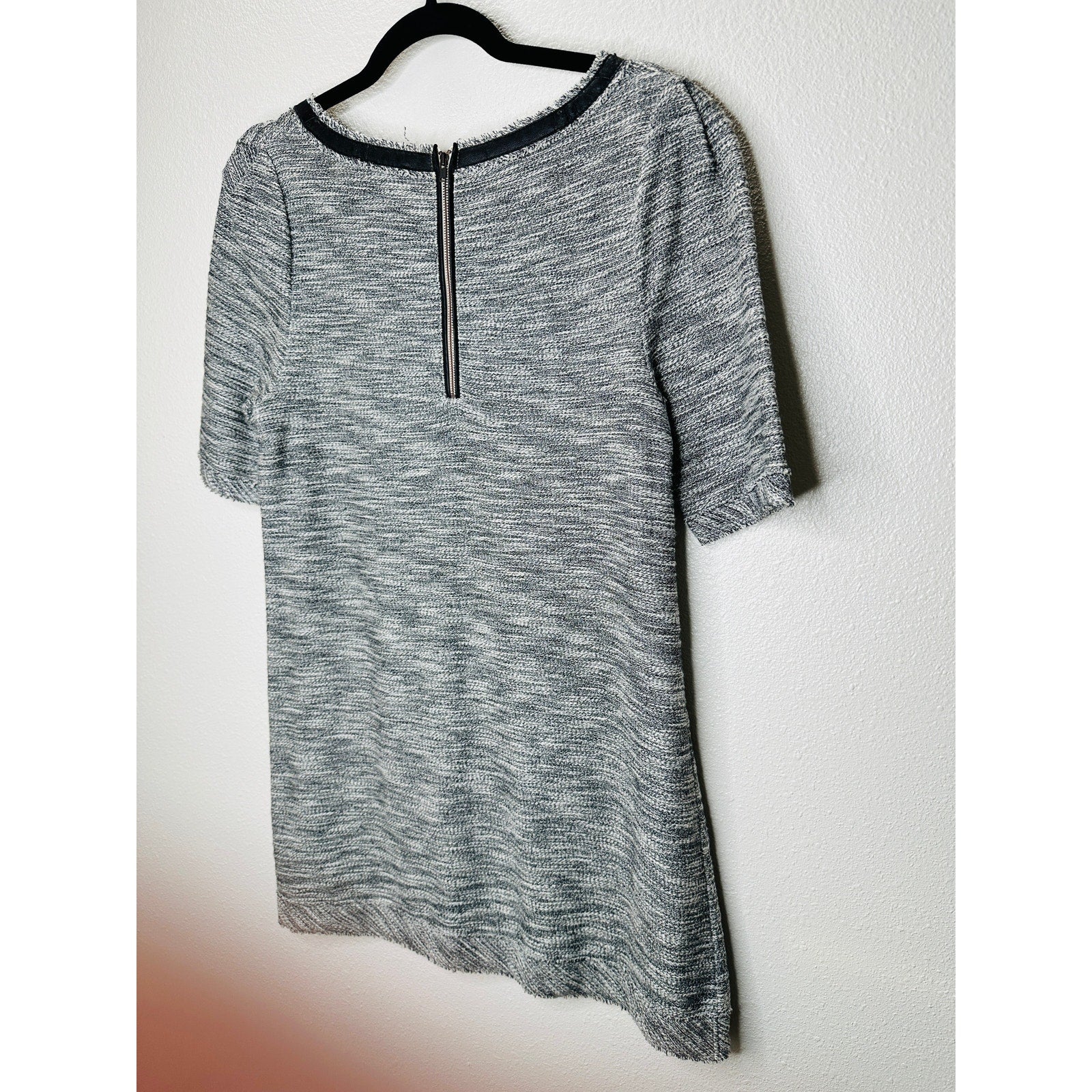 Anthropologie Postage Stamp Beverly Black Ivory Heathered Gray Crochet Knit Leather Trim Tunic Dress