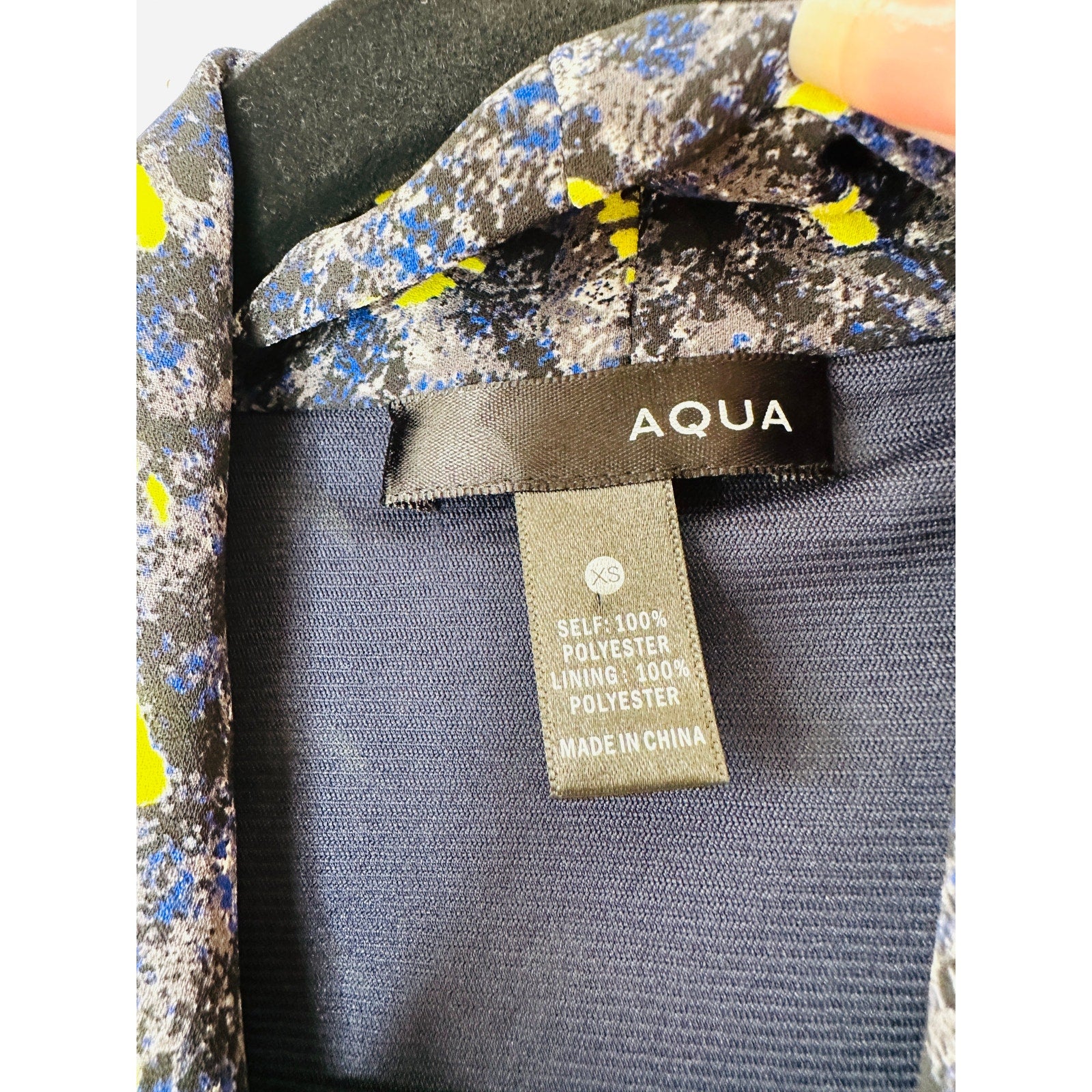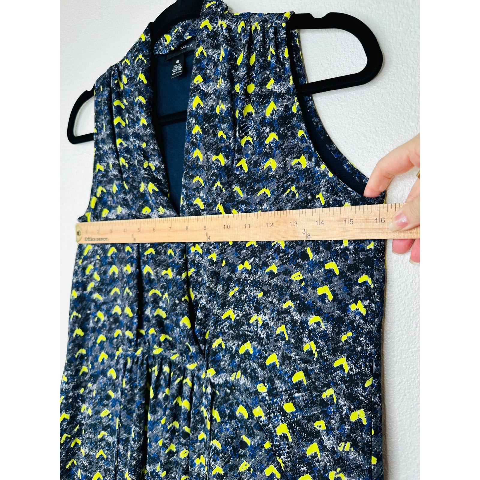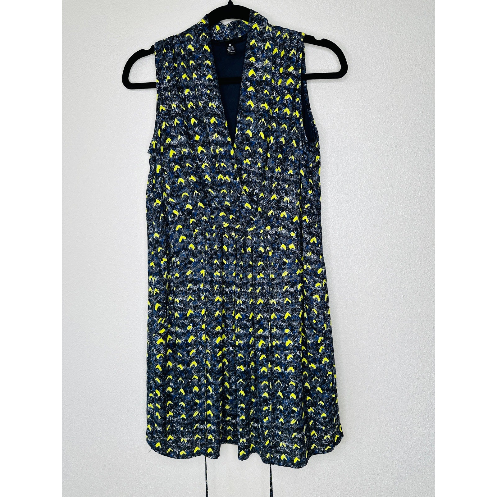 Aqua Florescent Yellow Blue Gray Print Faux Wrap Dress XS