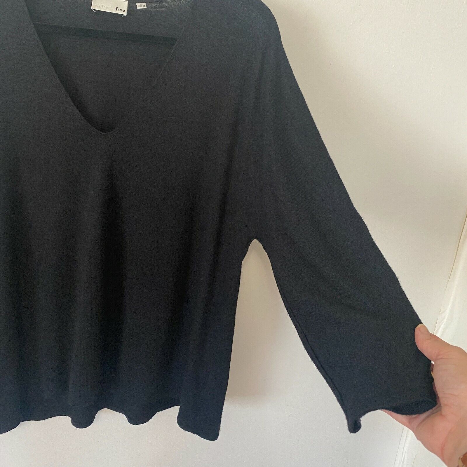 Aritizia Wilfred Free Black Thin Knit V-Neck 3/4 Sleeve Boxy Sweater Jumper M