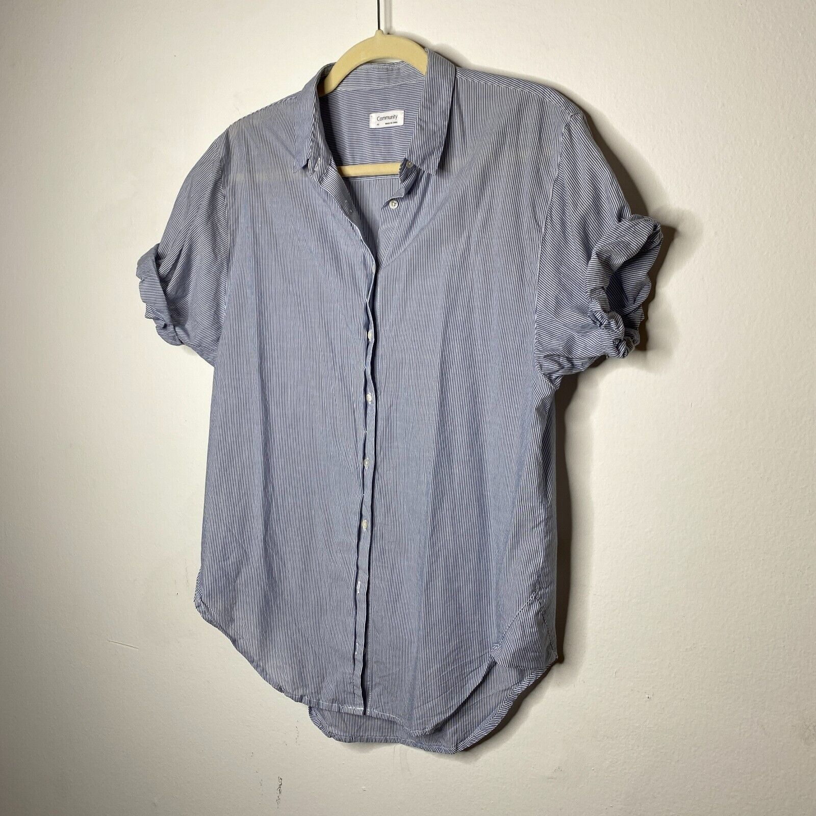 Aritzia Community Dark Blue & White Stripe The Jane Short Sleeve Button Up Shirt Top