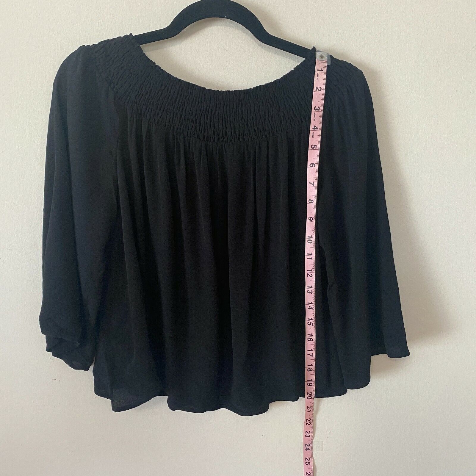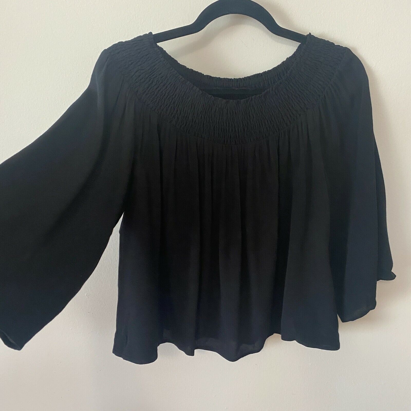 Aritzia Talula Marcilly Off Shoulder Ribbed Black Flowy Blouse Bell Sleeve SM
