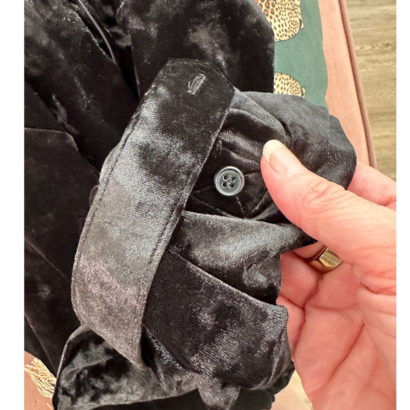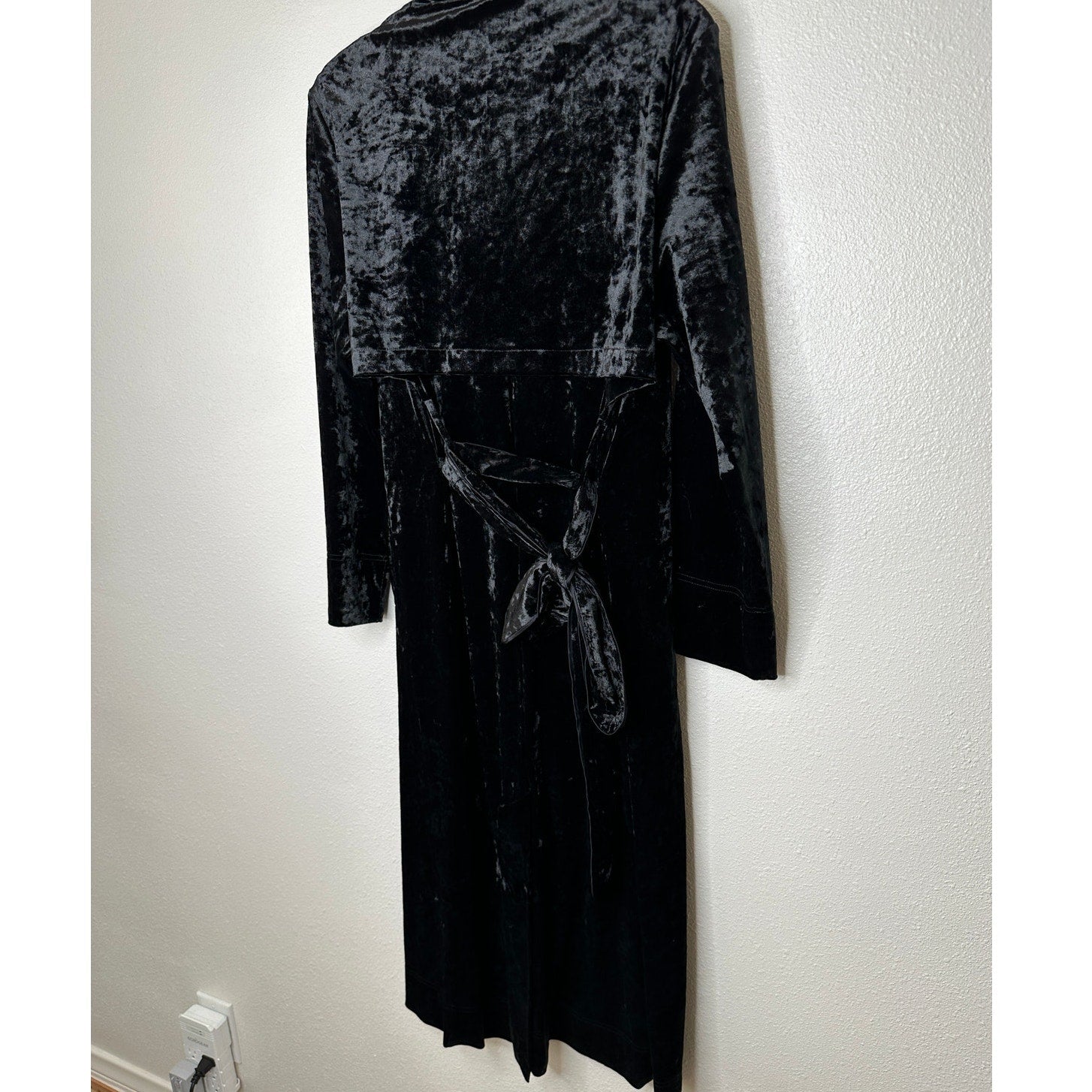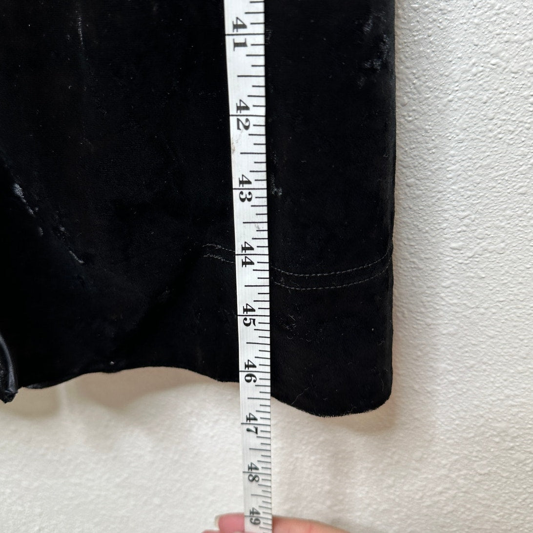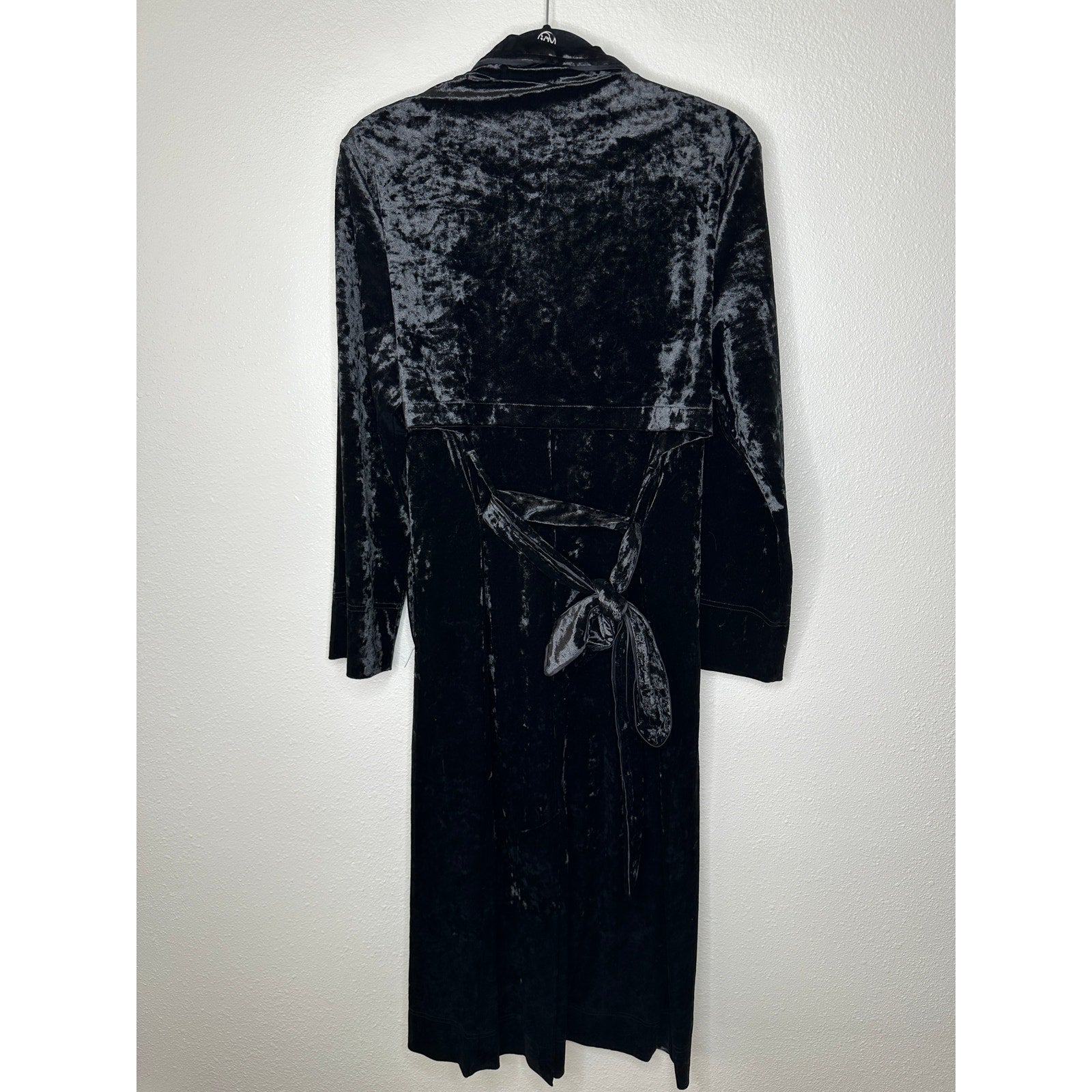 Arrive Black Velour Front Button Long Sleeve Tie Waist Midi Dress Small
