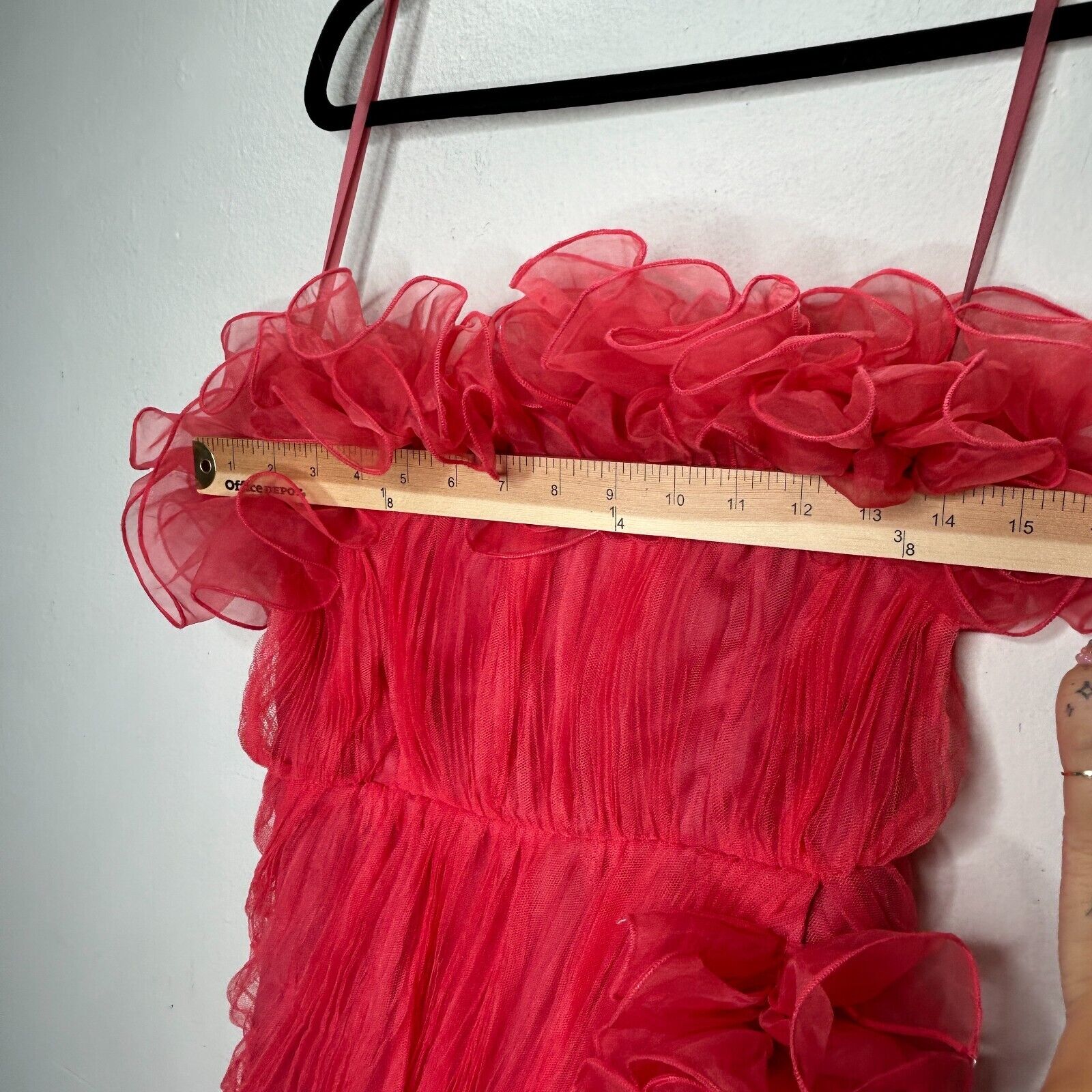 ASOS Design Red Bodycon Ruffle Mesh Bandeau Neck Strapless Mini Dress 4