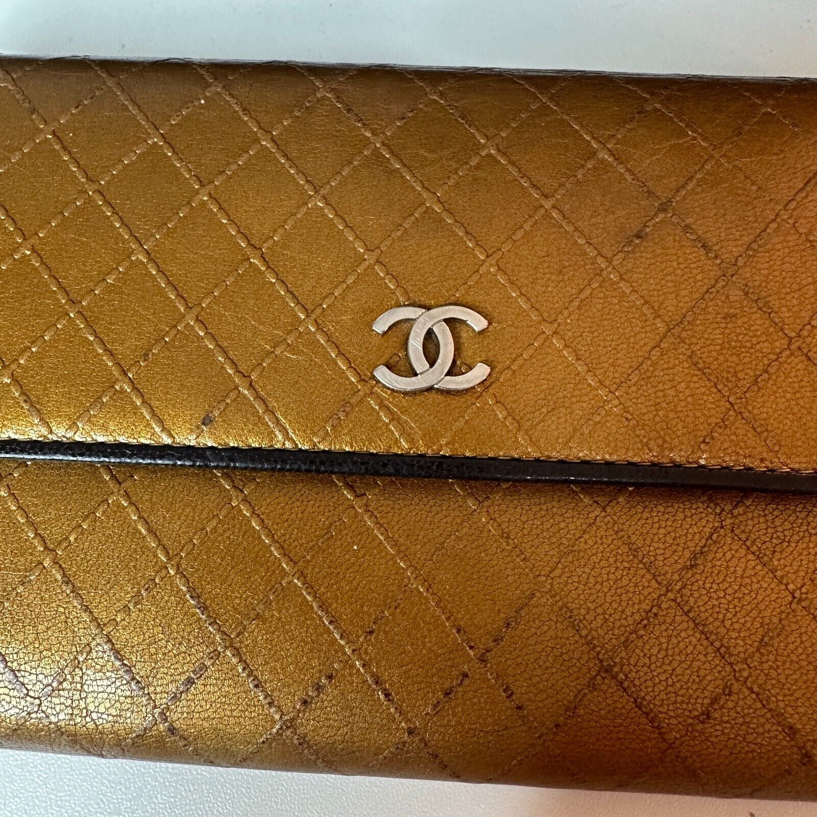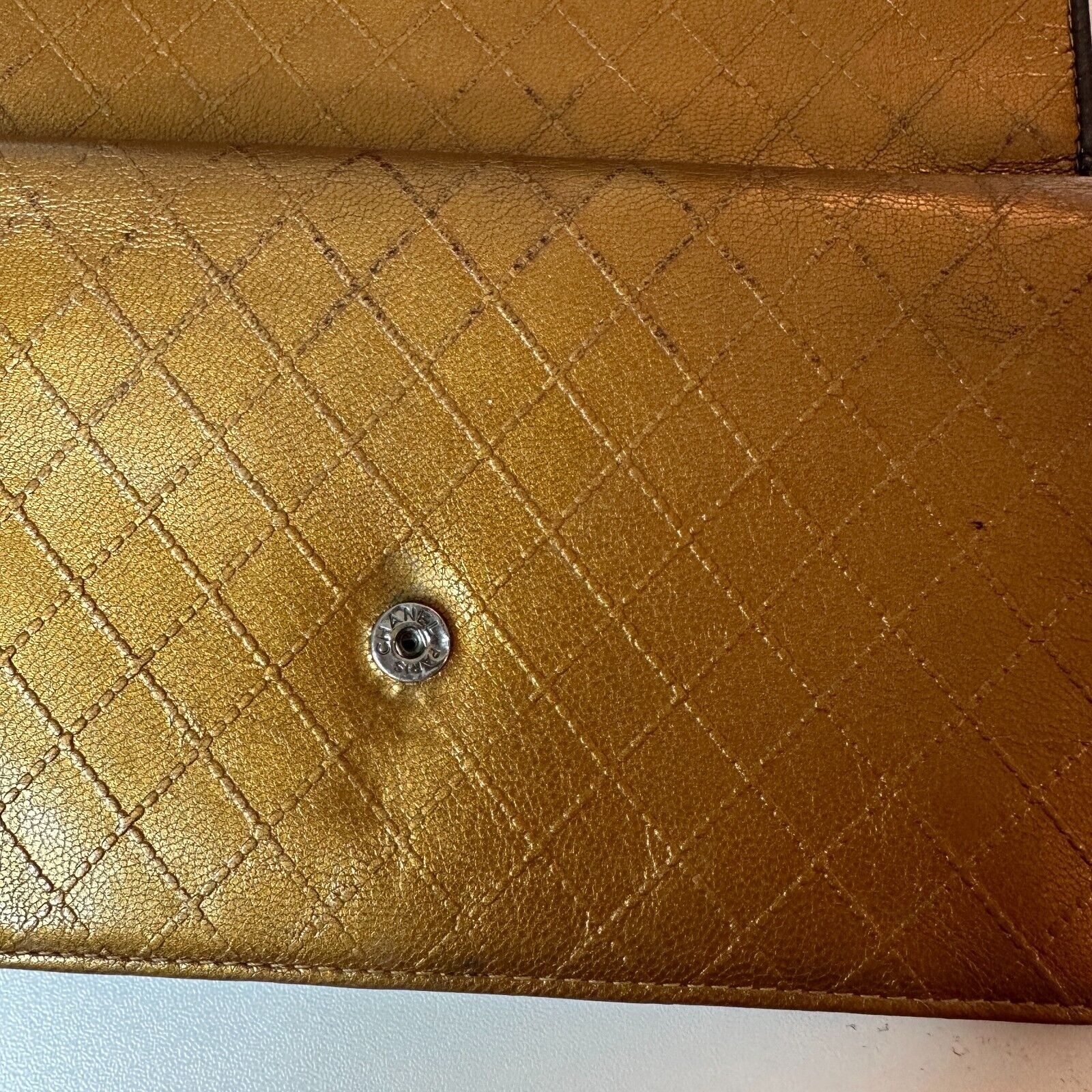 Authentic Chanel Tri-Fold Wallet Gold & Black Interior Trim Leather gold CC Logo