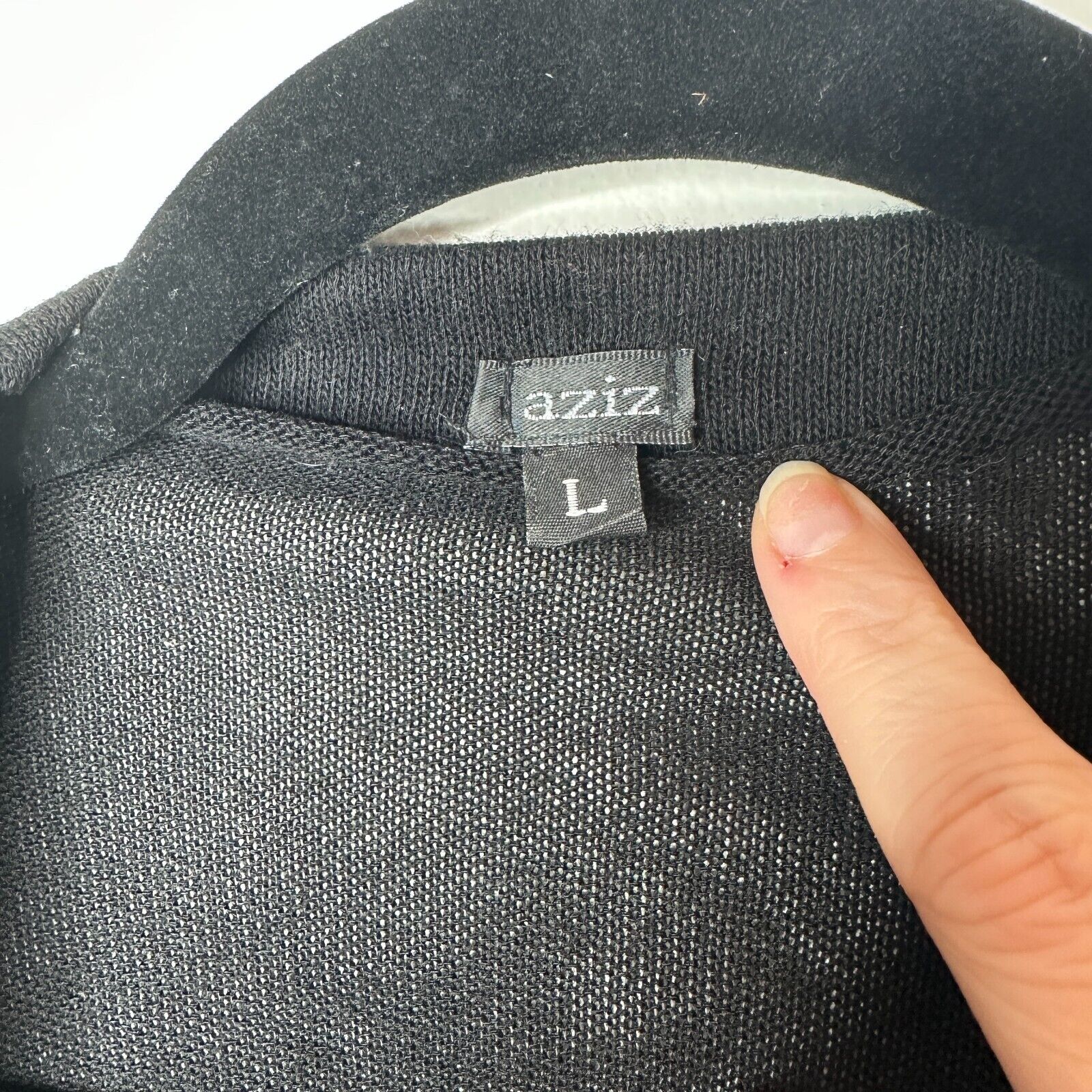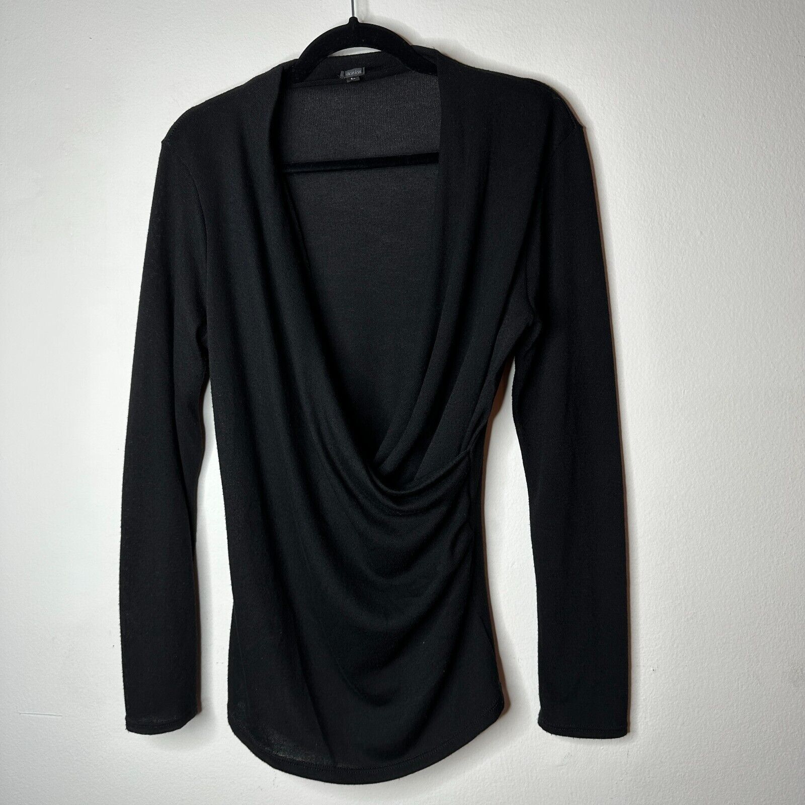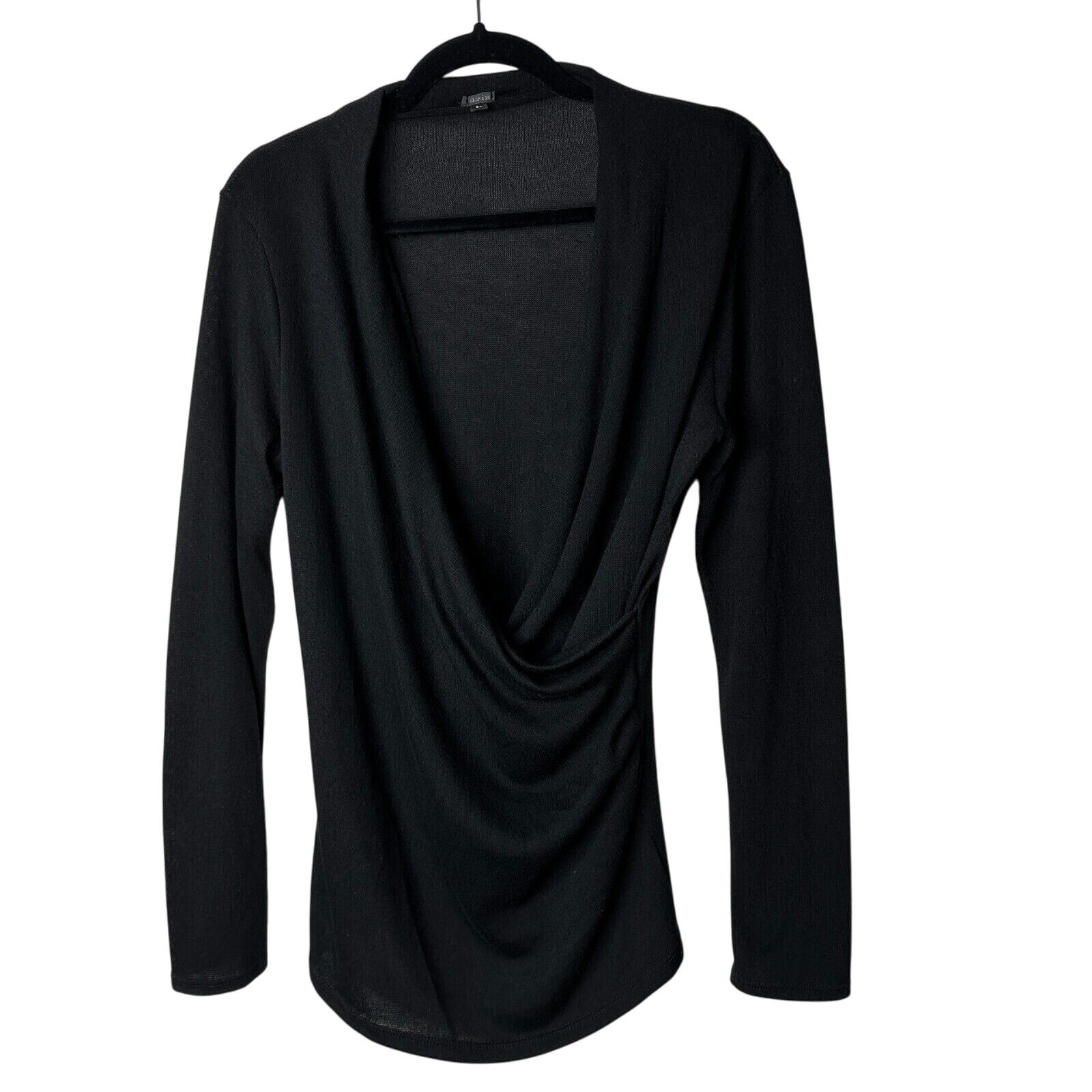 Aziz Jet Black Slinky Faux Wrap Deep VNeck Long Sleeve Sweater Jumper Top L