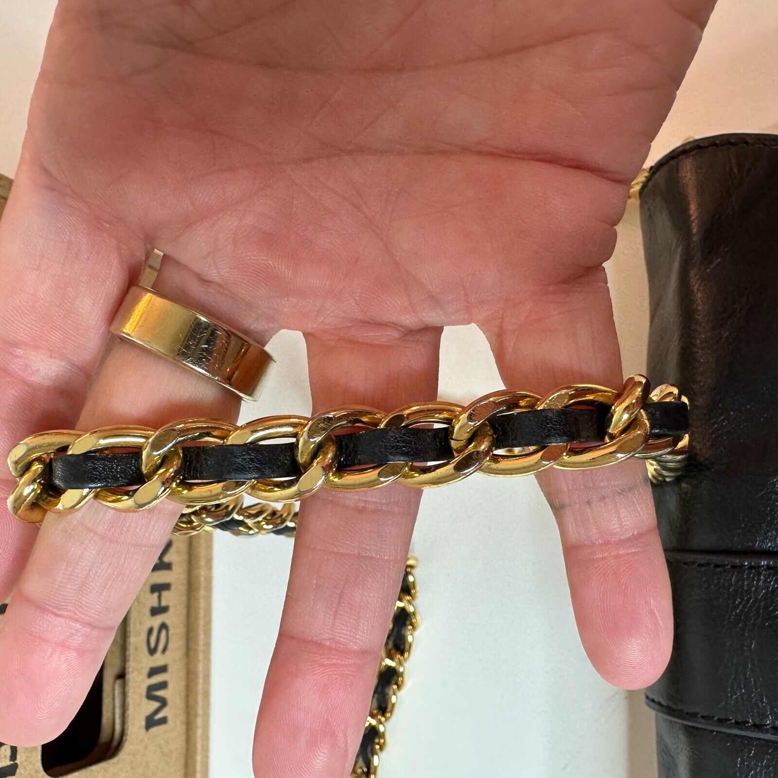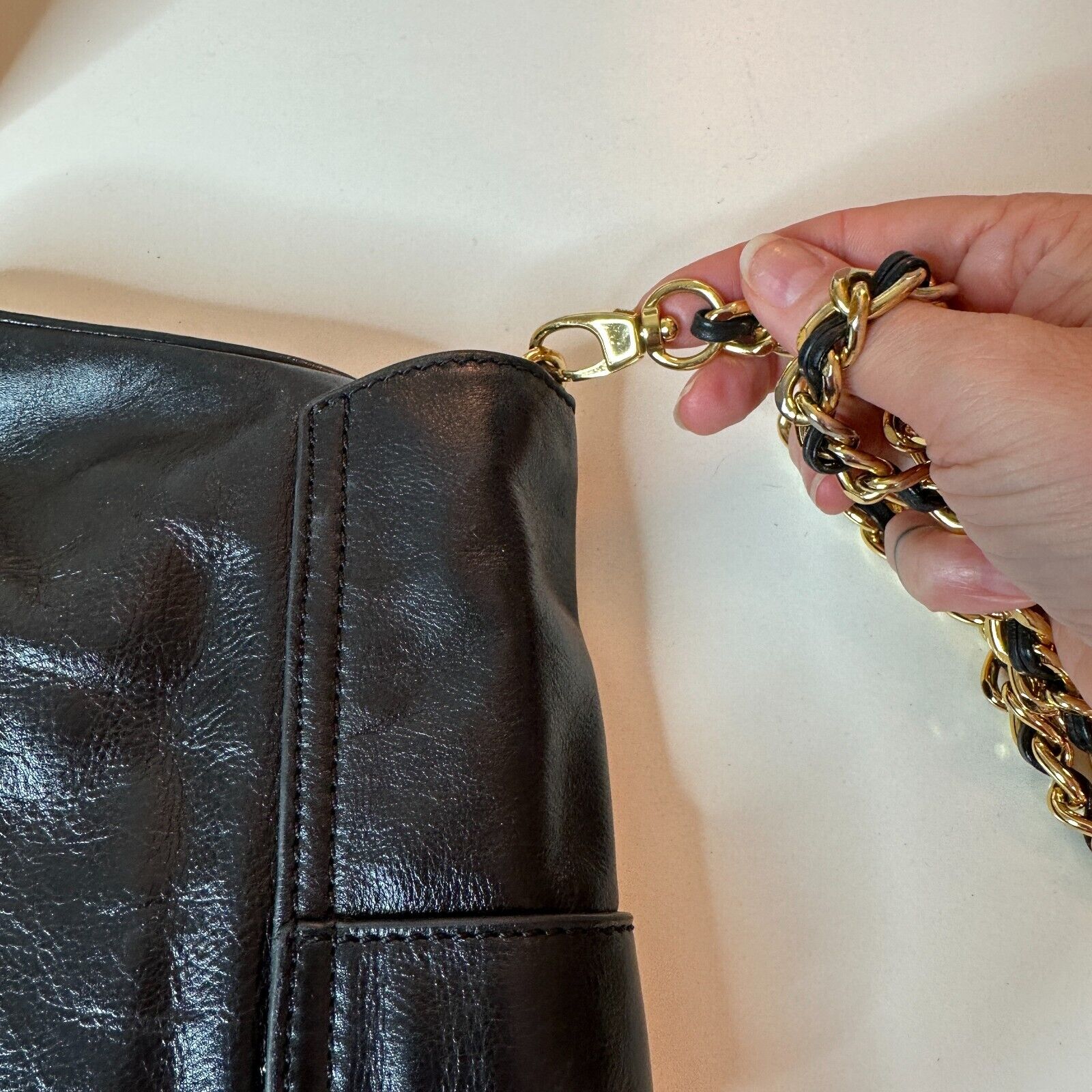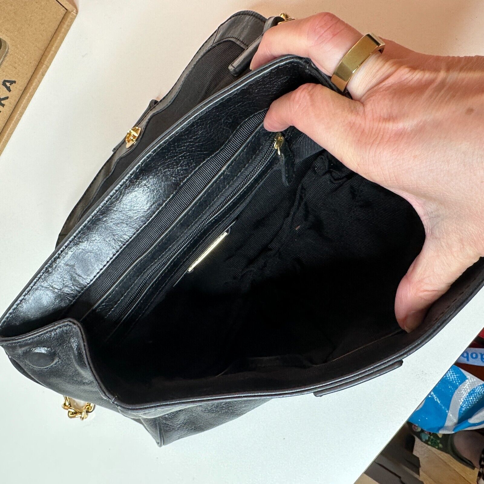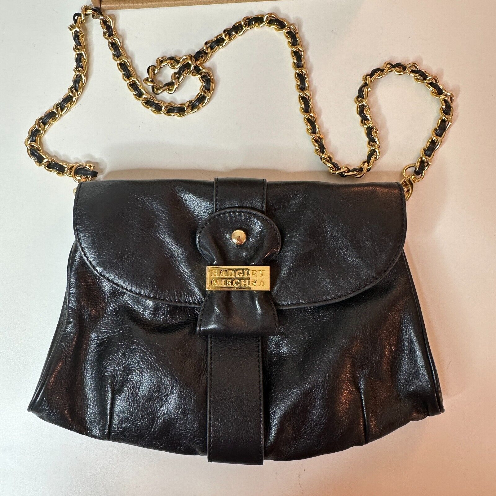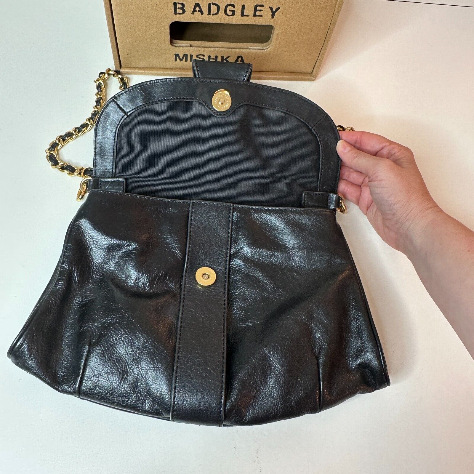 Badgley Mischka Black Leather Purse Detachable Chain/Leather Strap Gold Hardware magnetic sides fold over top