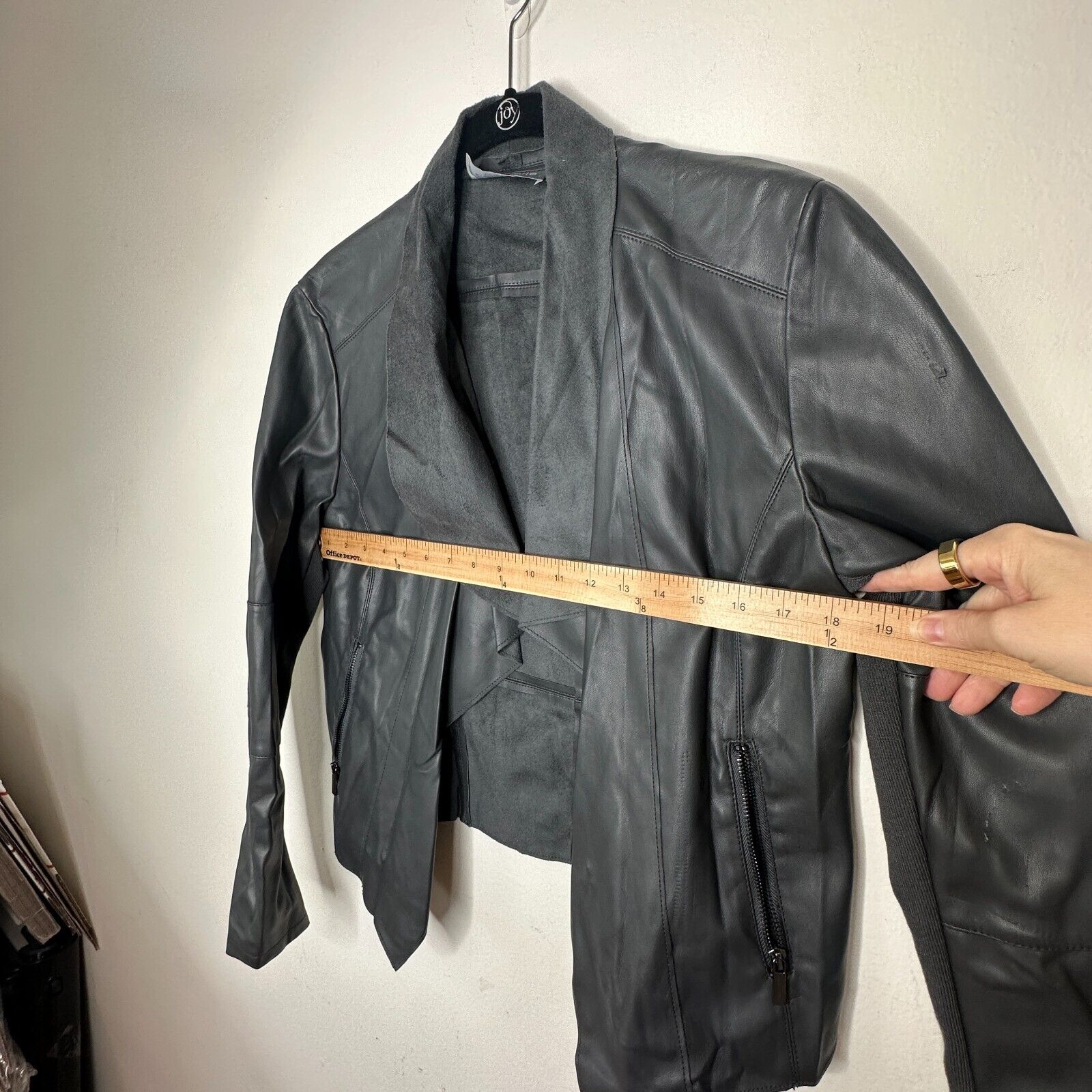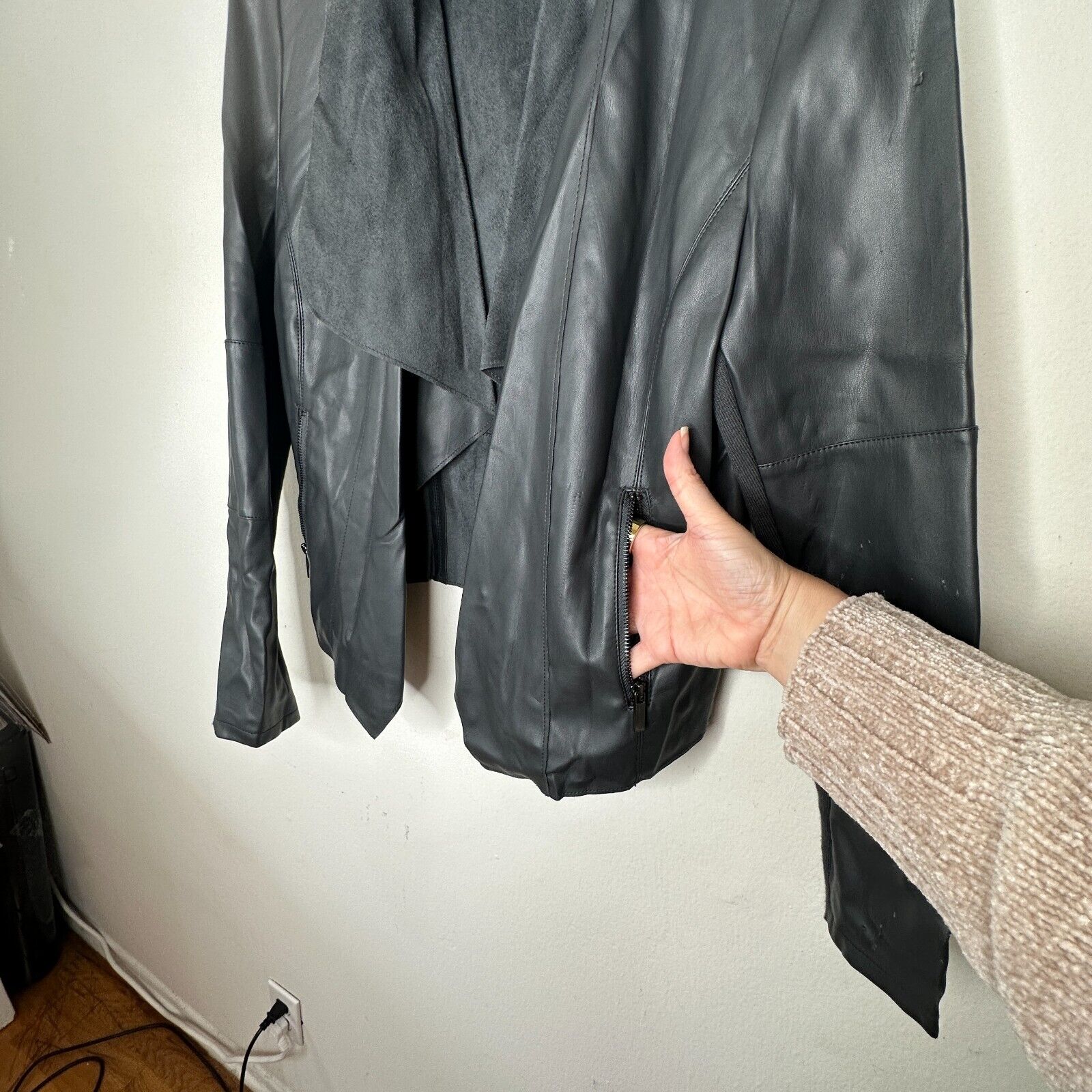 Bagatelle Pewter Gray Faux Leather Open Front Waterfall Cardigan Jacket Zip Pockets