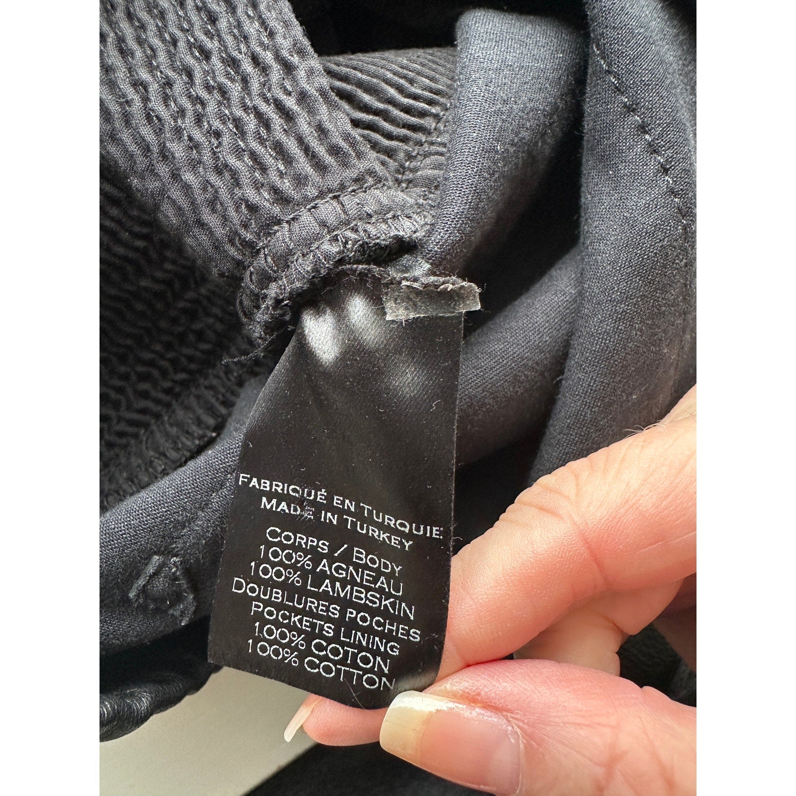 Panelled lambskin leather trousers with ribbed moto detailing and drawstring elastic waist. Slim leg; side pockets; pocket linings 100% cotton. Made in Turkey. Great for night-out or statement street looks. Care: dry clean by leather specialist only.