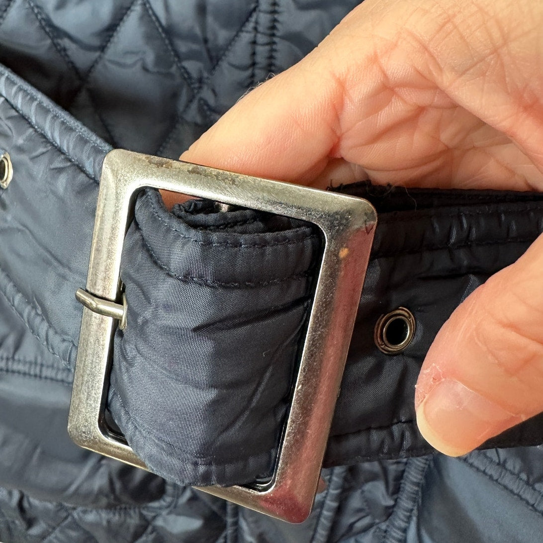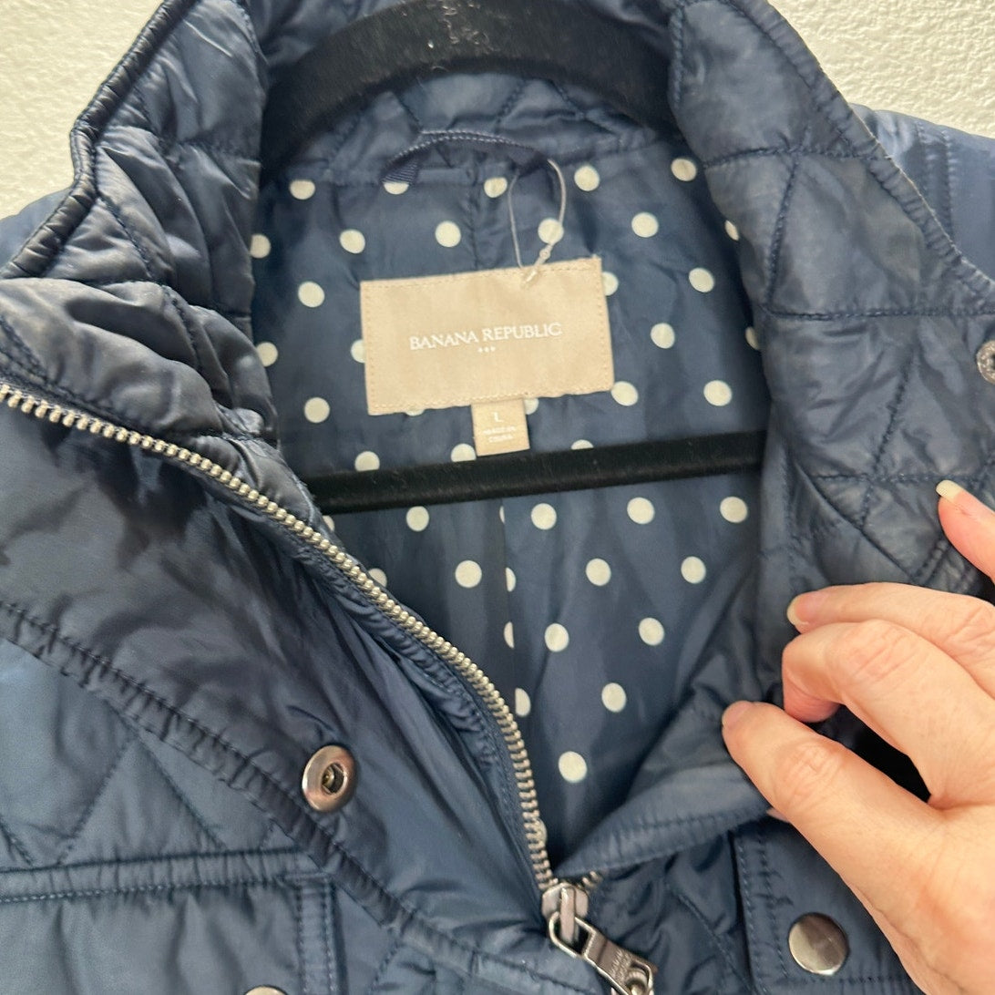 Banana Republic Navy Diamond Quilted Zip Belted Mock Neck Jacket L