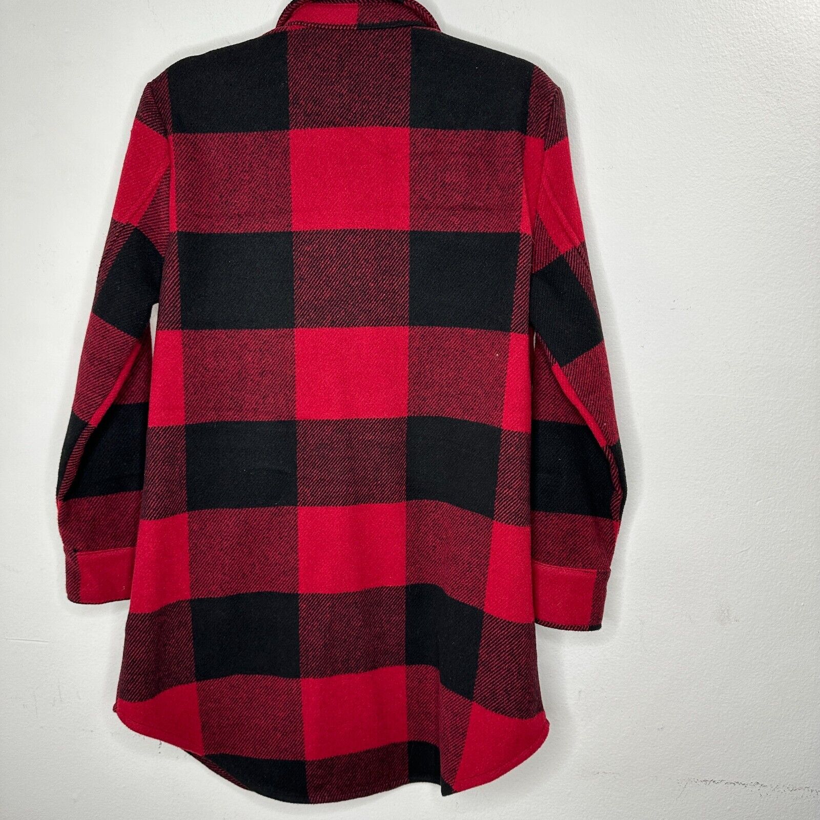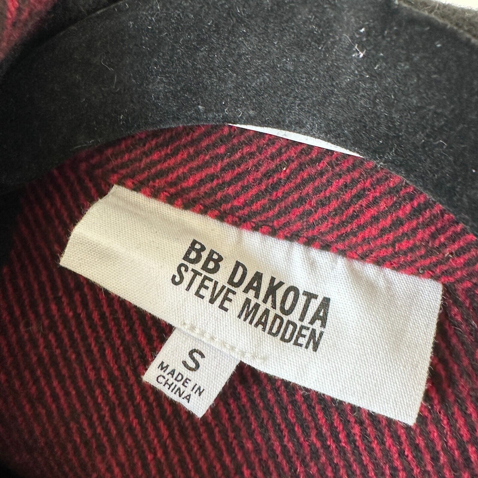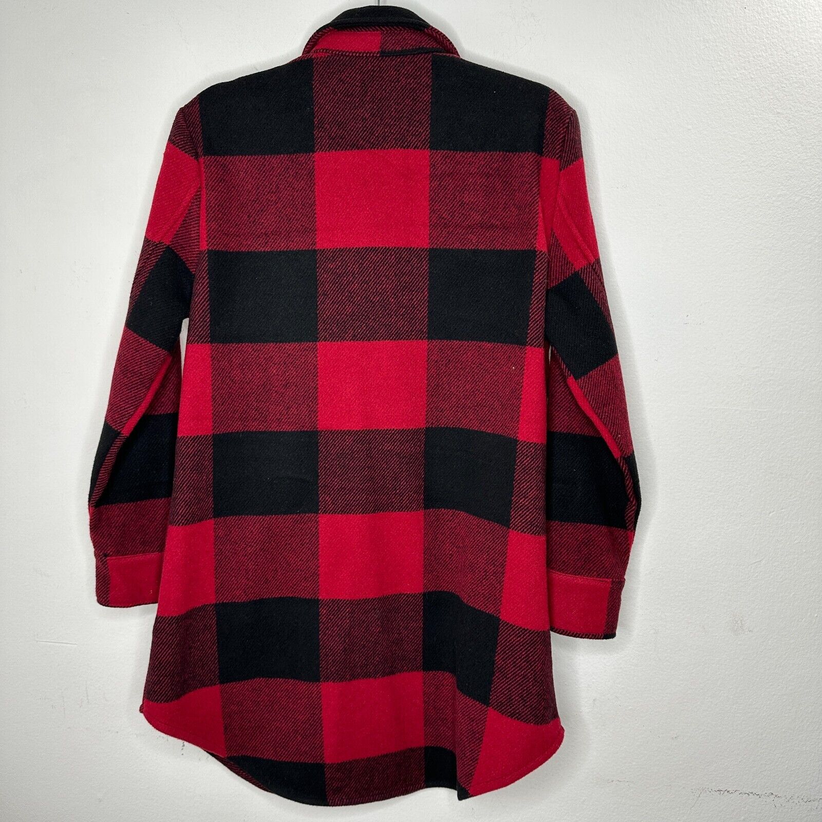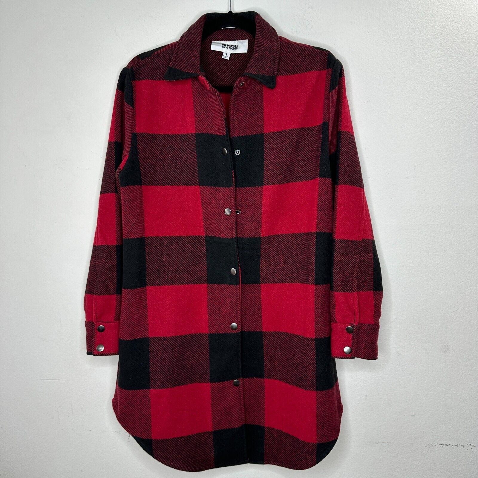 BB Dakota Red Black Buffalo Plaid Snap Front Long Sleeve Shirttail Hem Jacket S