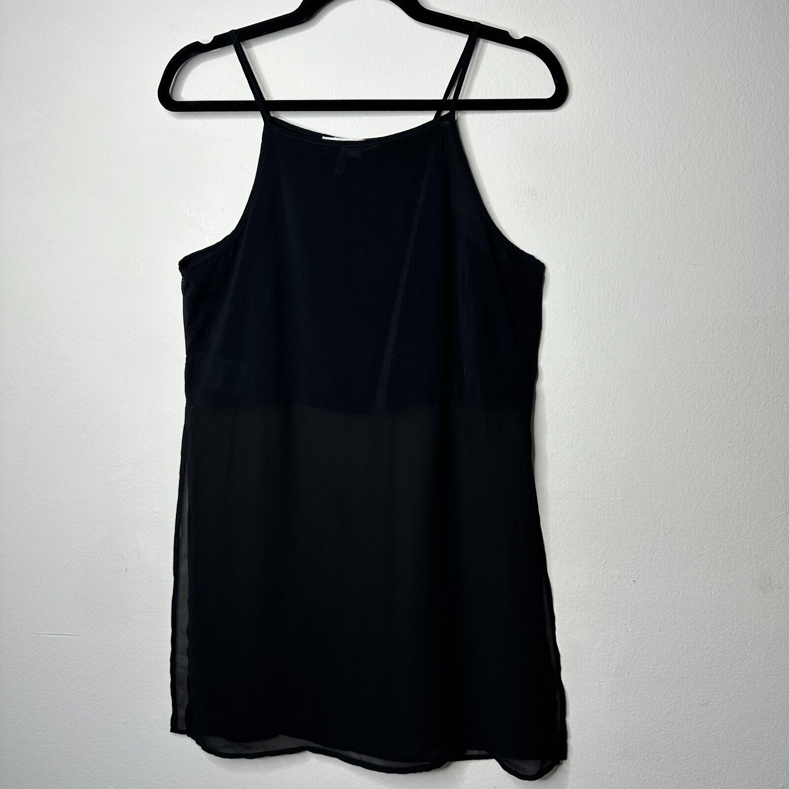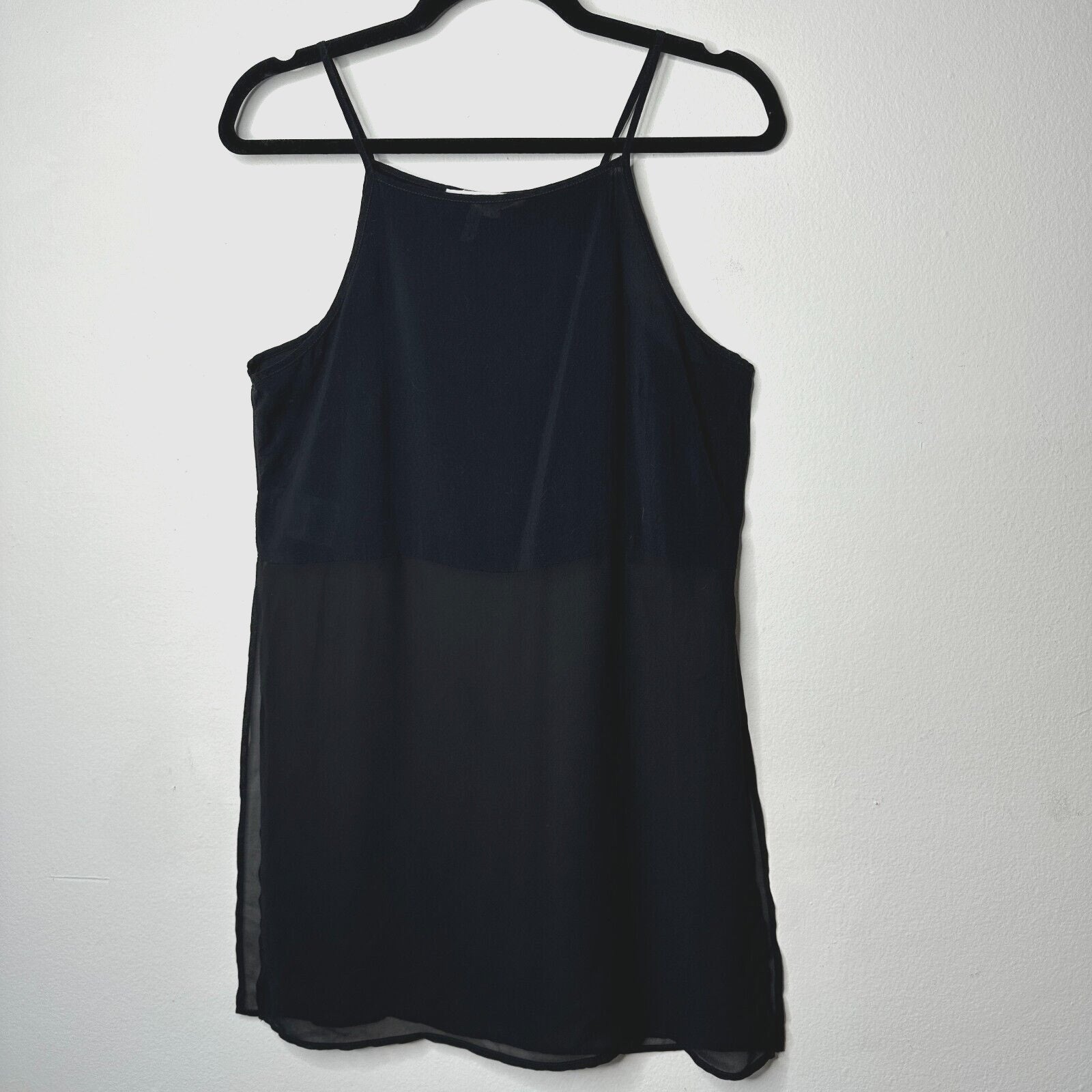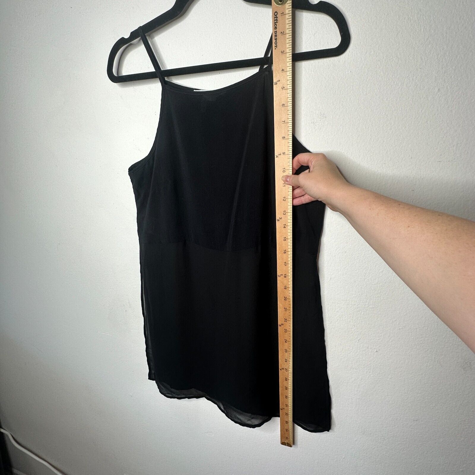 BCBGeneration Jet Black Sheer Side Slit Flowy Layer Spaghetti Strap Tank Top Cami