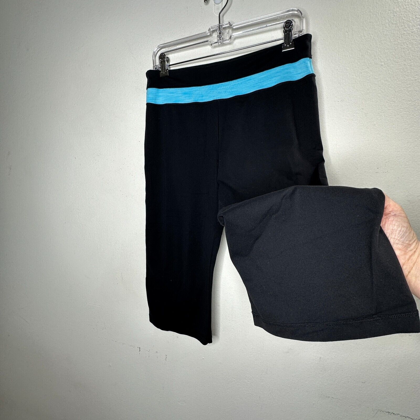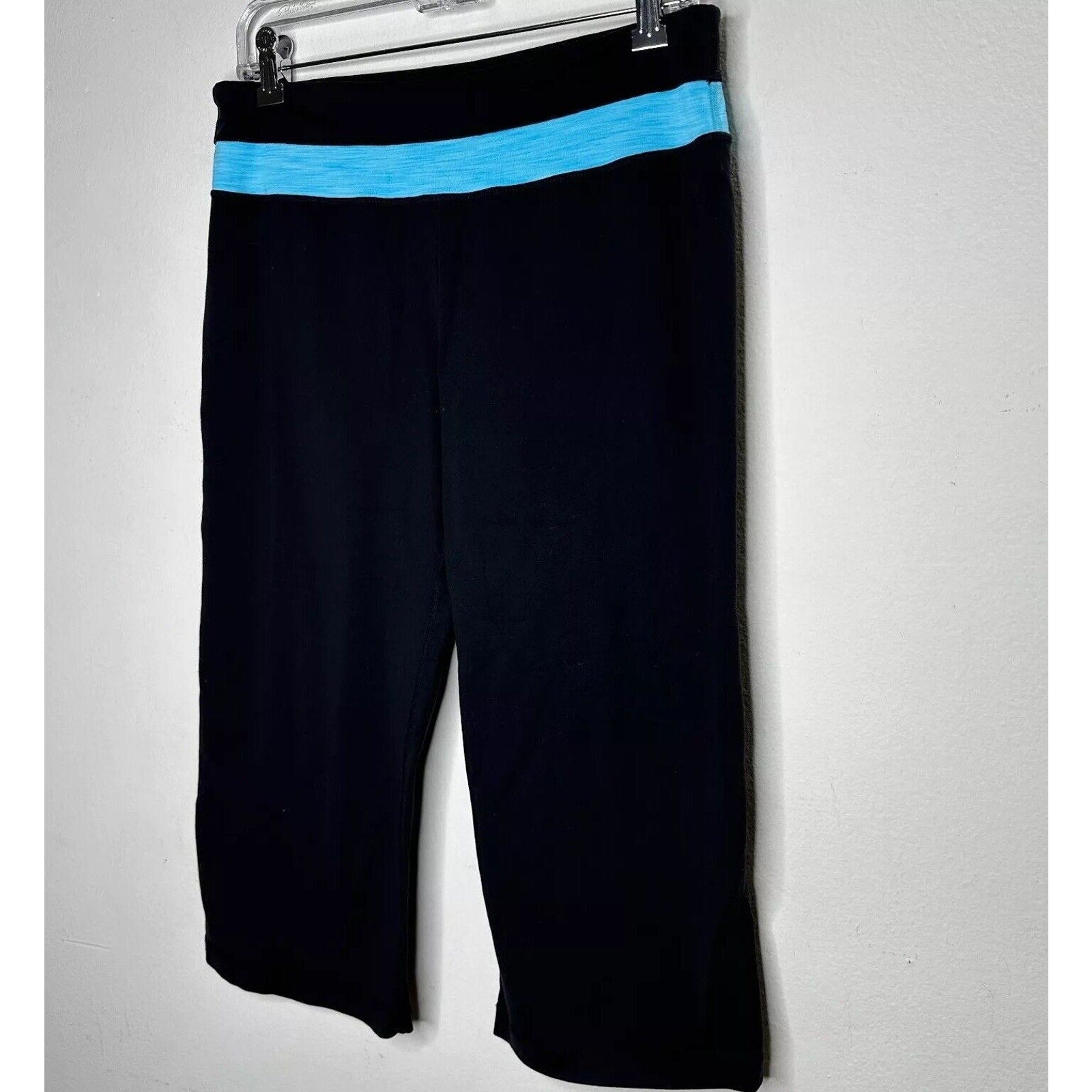 Black Cropped Leggings Aqua Heathered Striped Waist Yoga Bike Shorts Medium