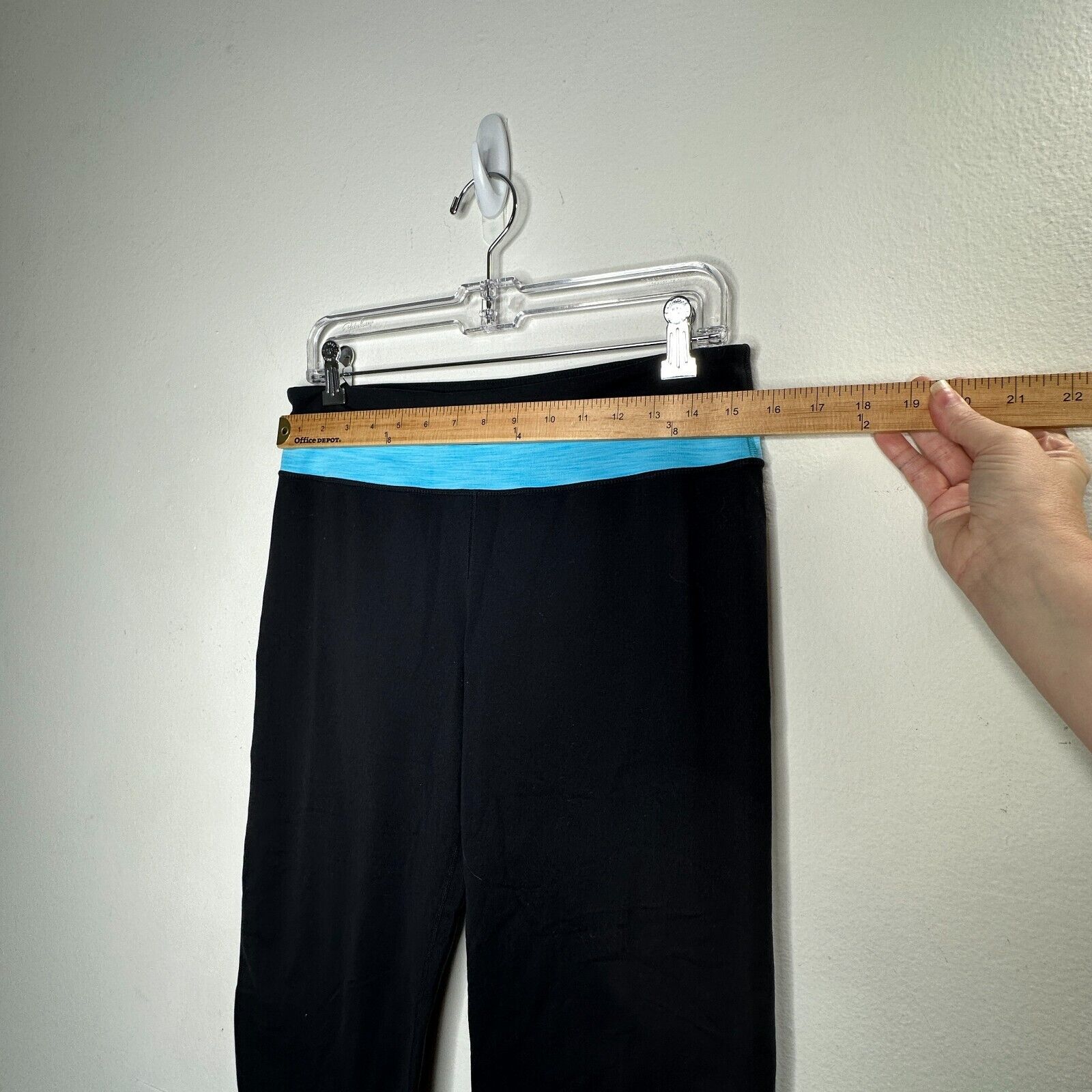 Black Cropped Leggings Aqua heathered Striped Waist