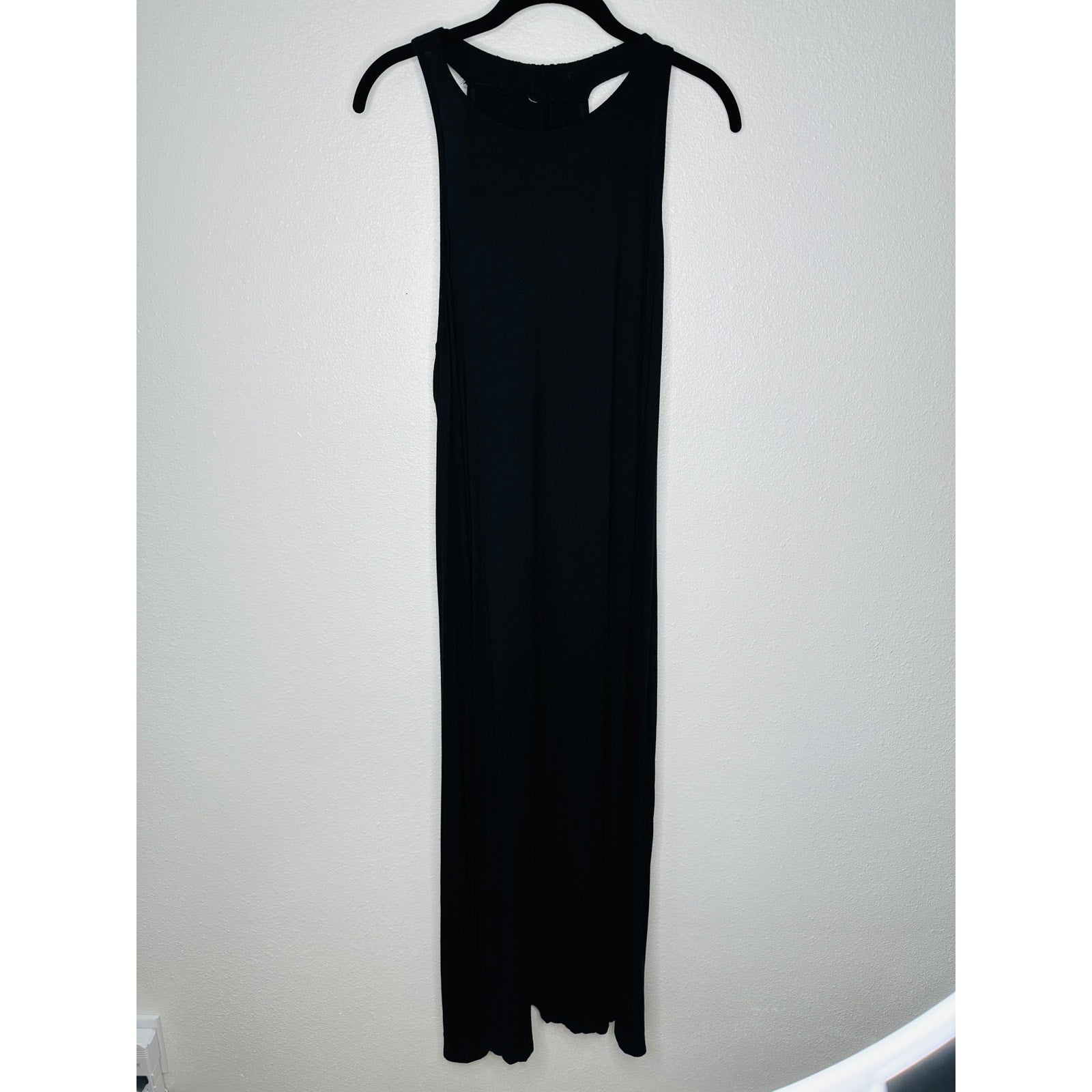 Black High Neck Plunging Sides Sleeveless Gathered Flowy Back Maxi Dress M