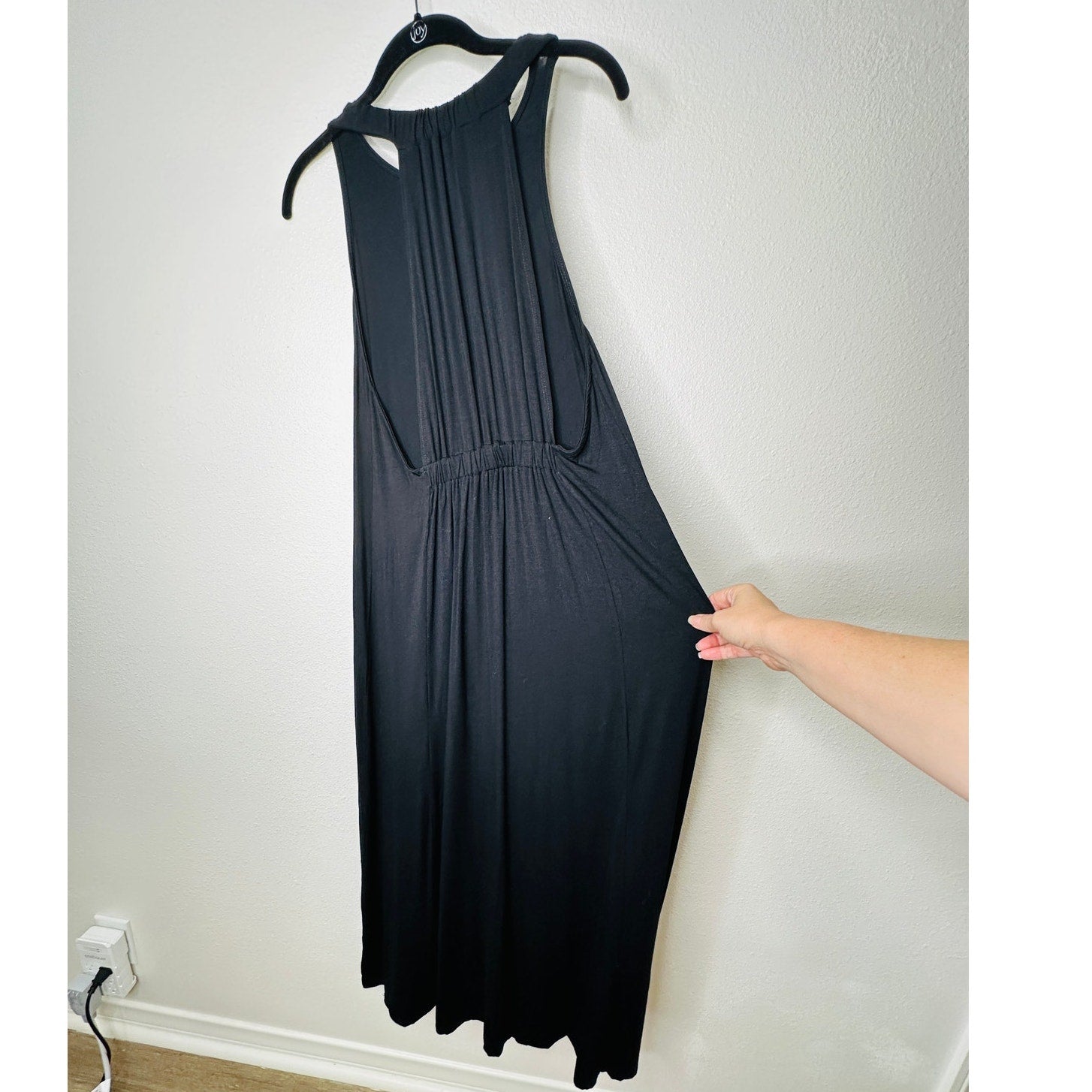 Black High Neck Plunging sides Sleeveless Gathered Flowy Back Maxi Tank Dress