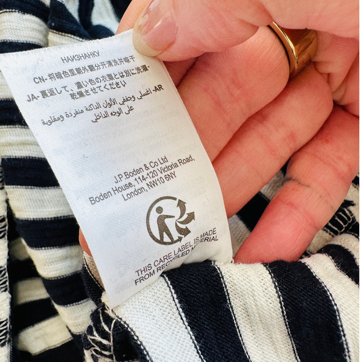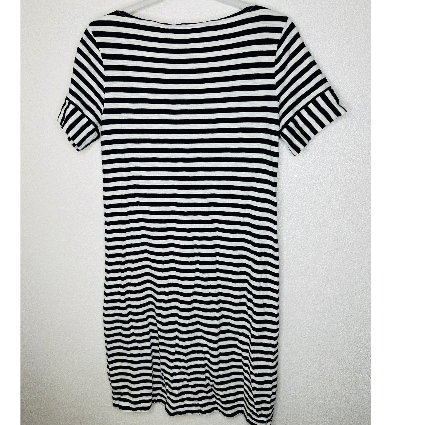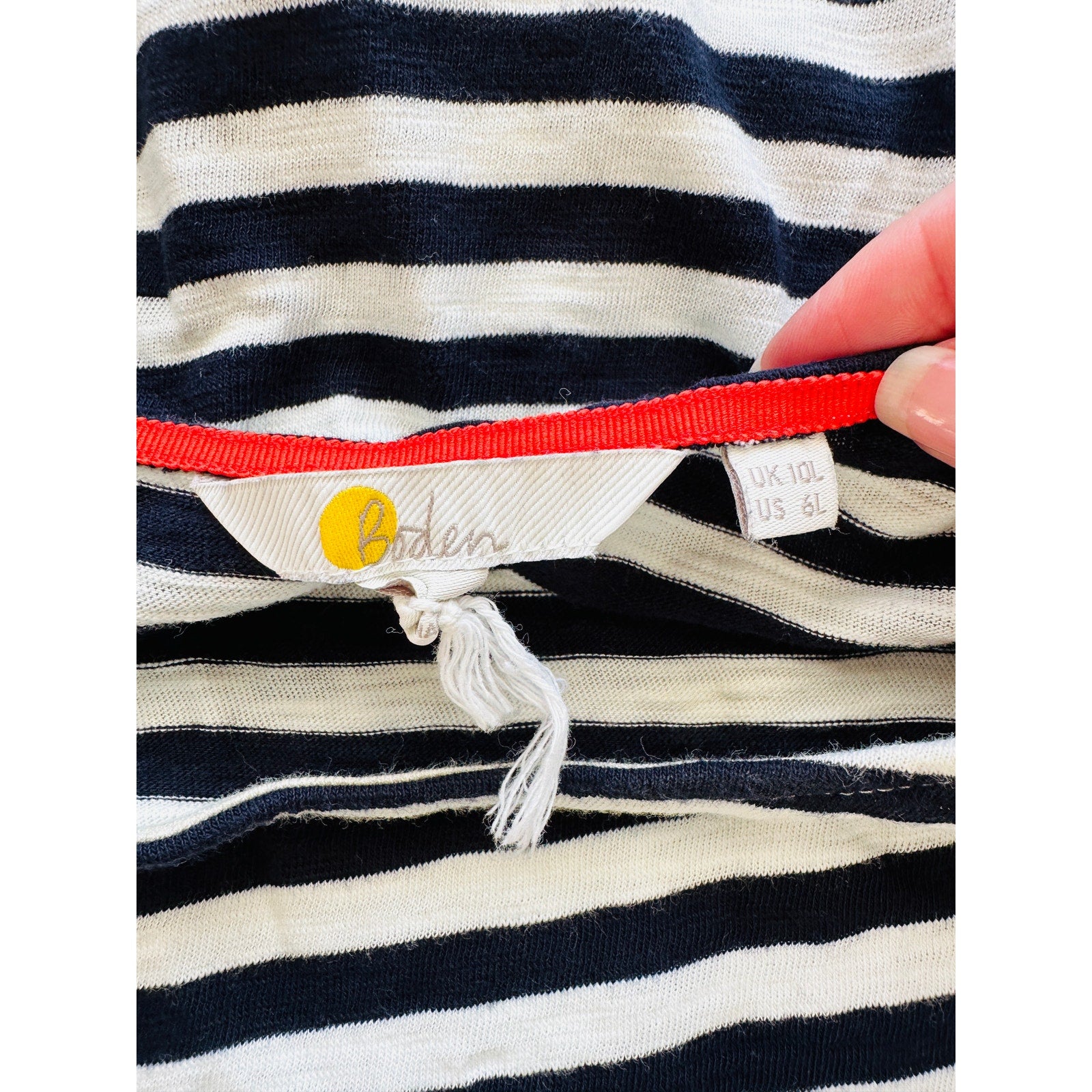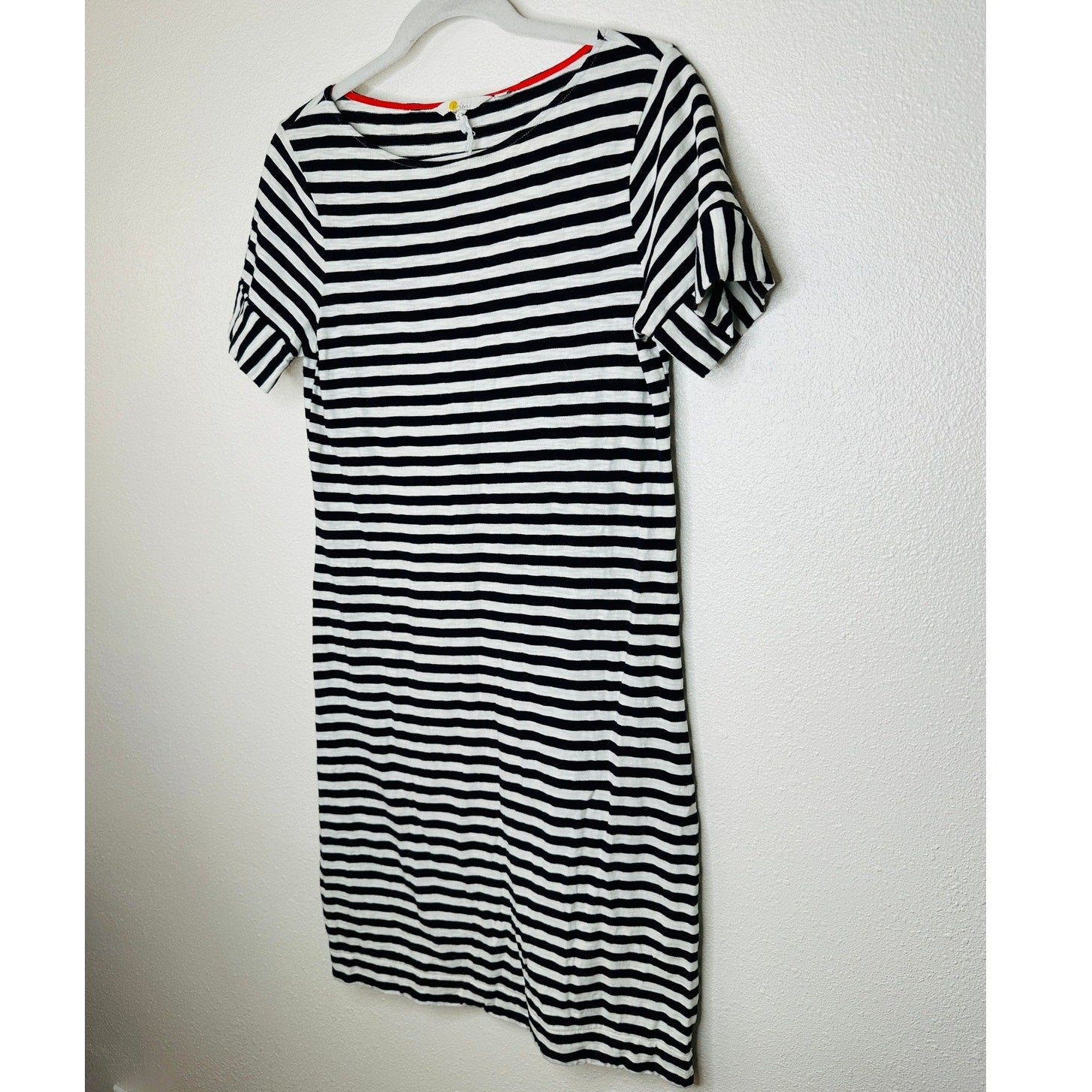 Boden Ivory & Black Stripe Short Sleeve Round Neck Shirt Dress 6 L