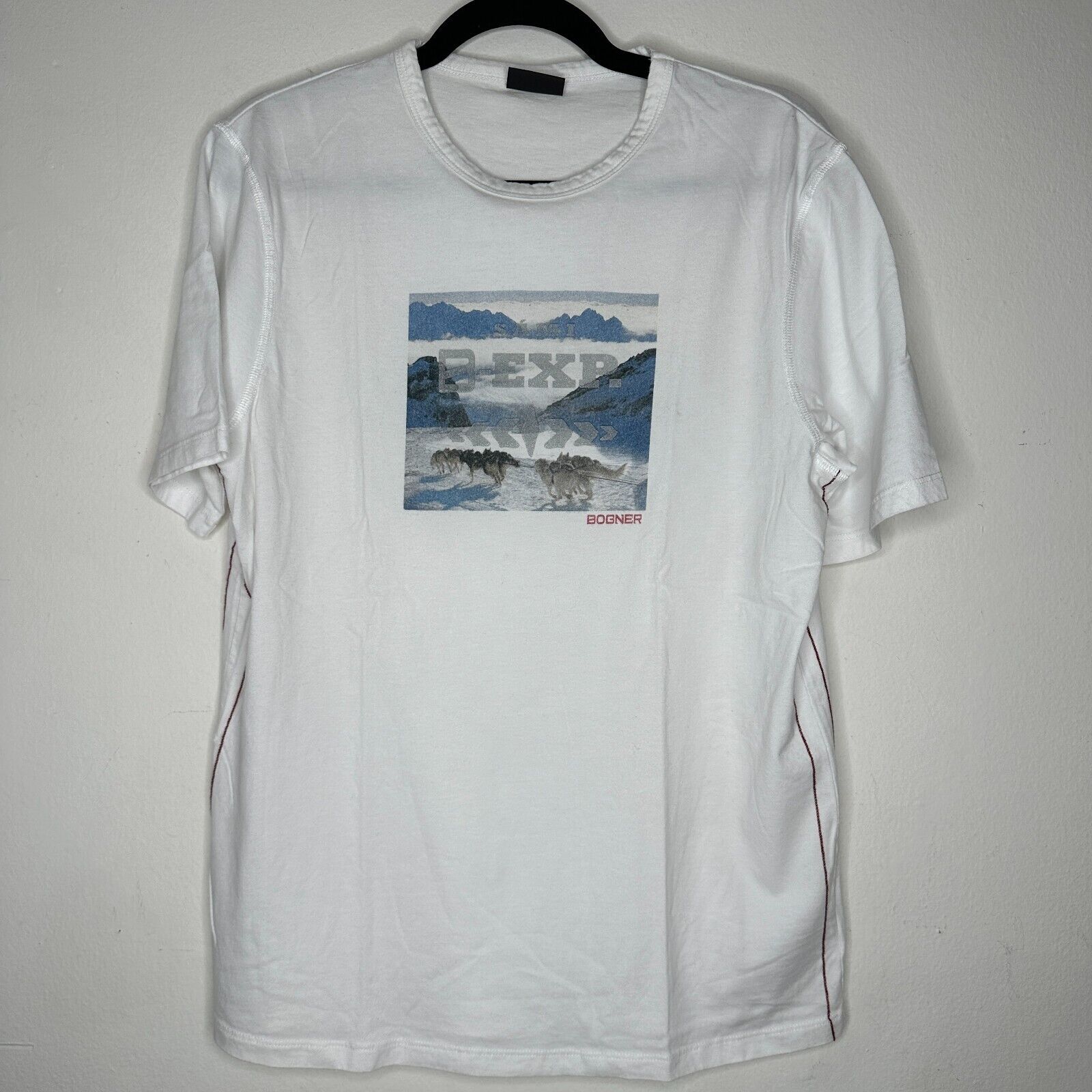 Bogner Ivory Blue Dog Sled Graphic Short Sleeve Round Neck Tee Shirt XL