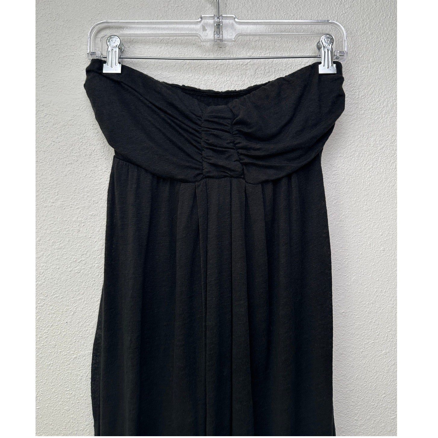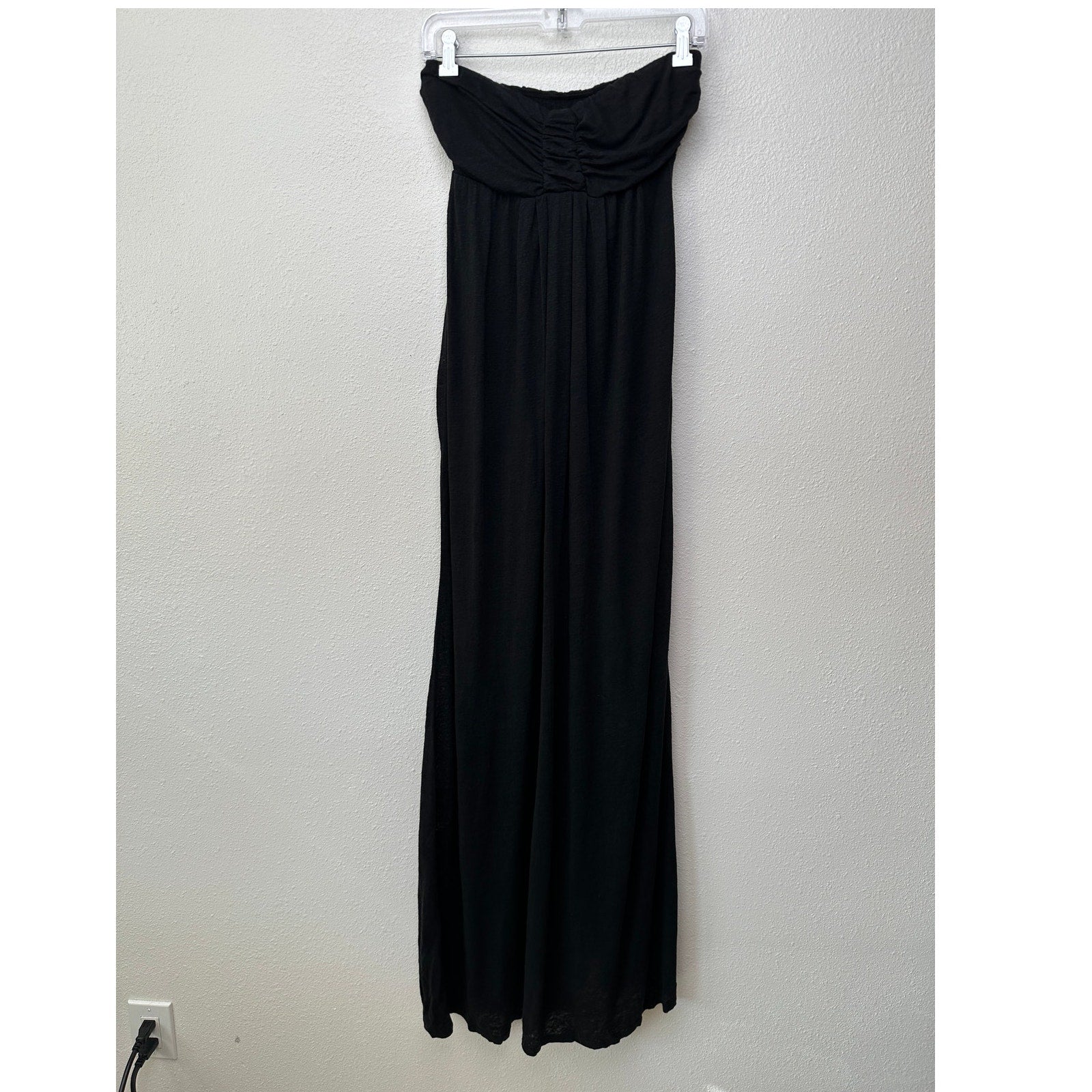 Bordeaux Black Strapless Linen Maxi Dress Ruched Bust Women’s S