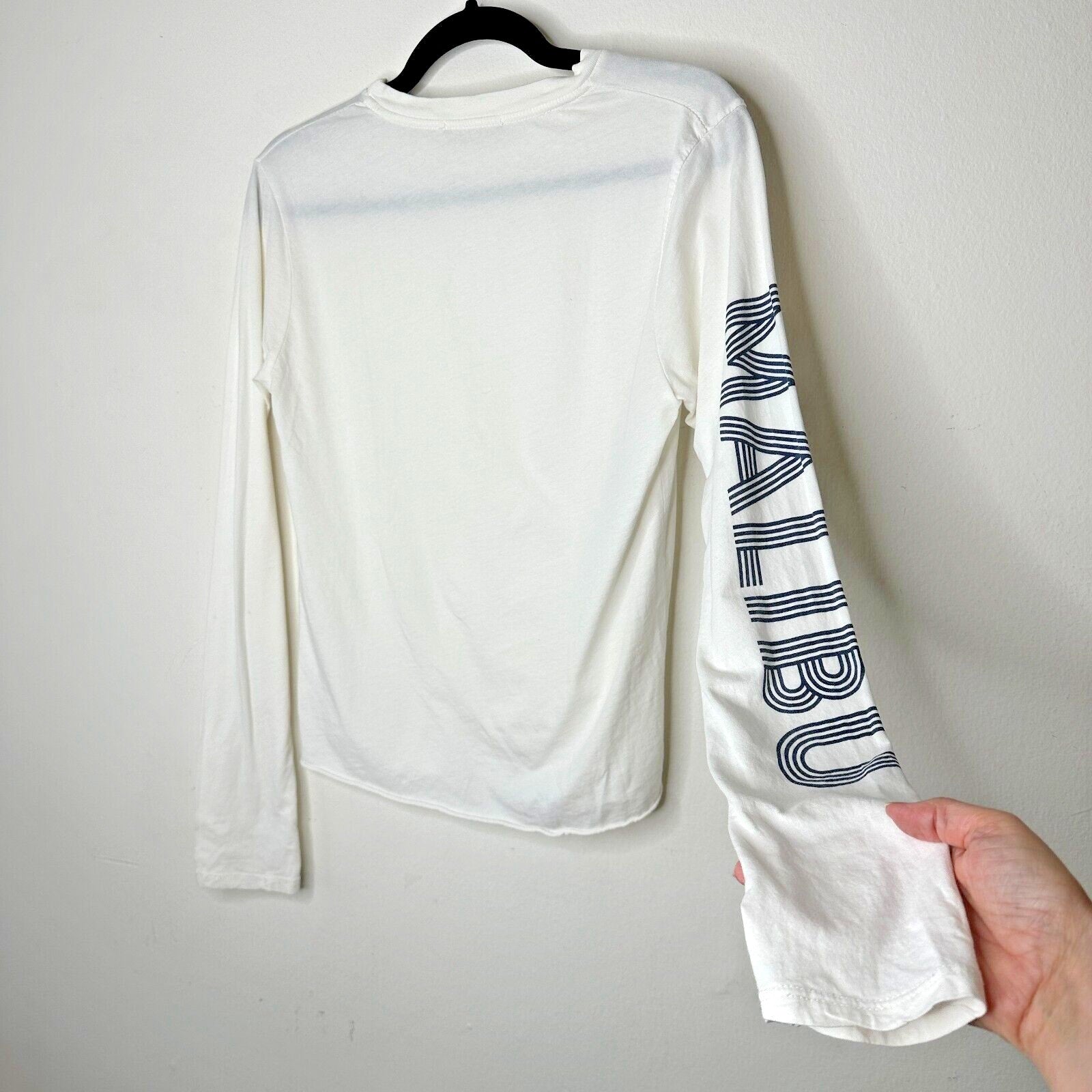 Brandy Melville White with Blue Malibu Graphic Crew Neck Long Sleeve Tee Small