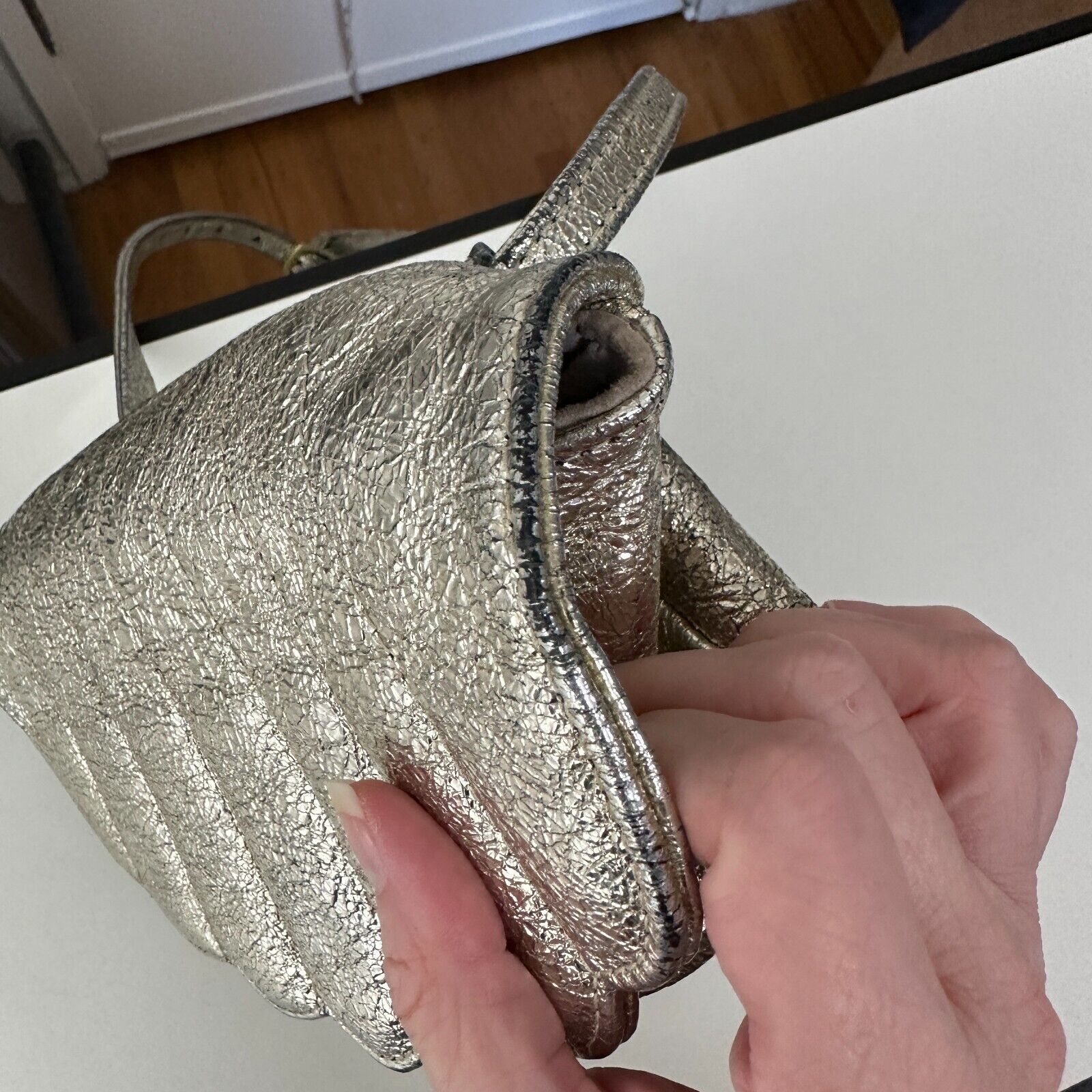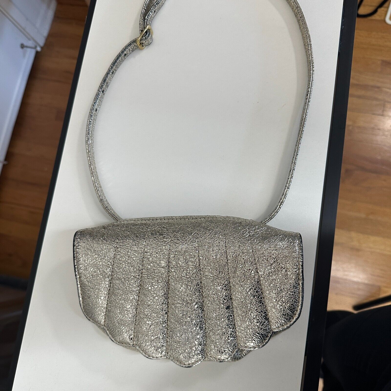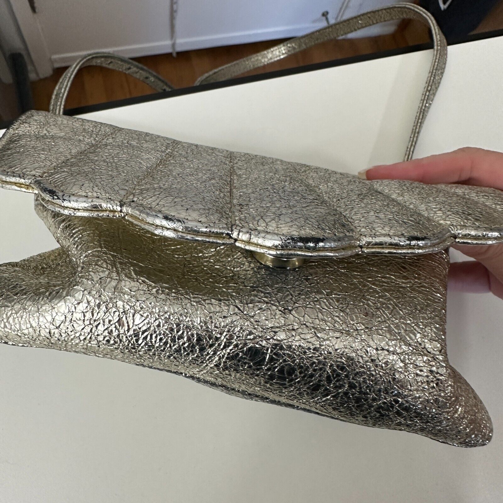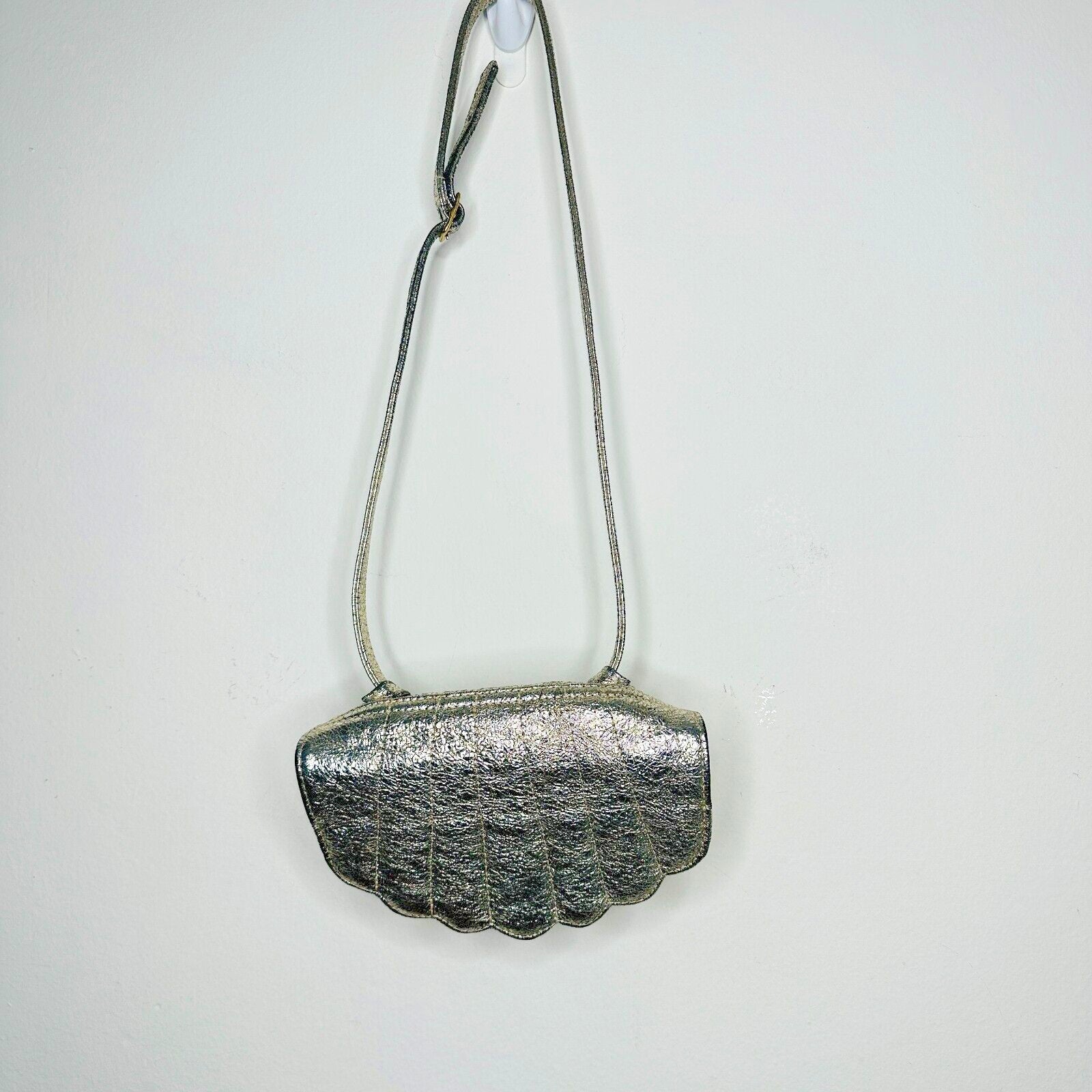 CAB Collection Gold / Silver Shimmer Clam Shell Style Shoulder Bag Snap Close Adjustable Strap