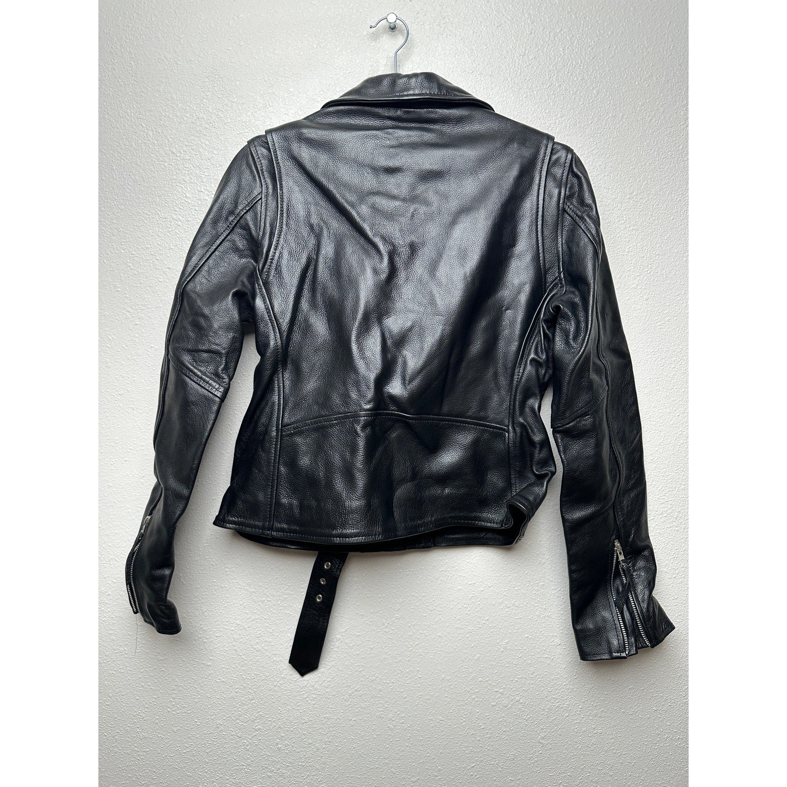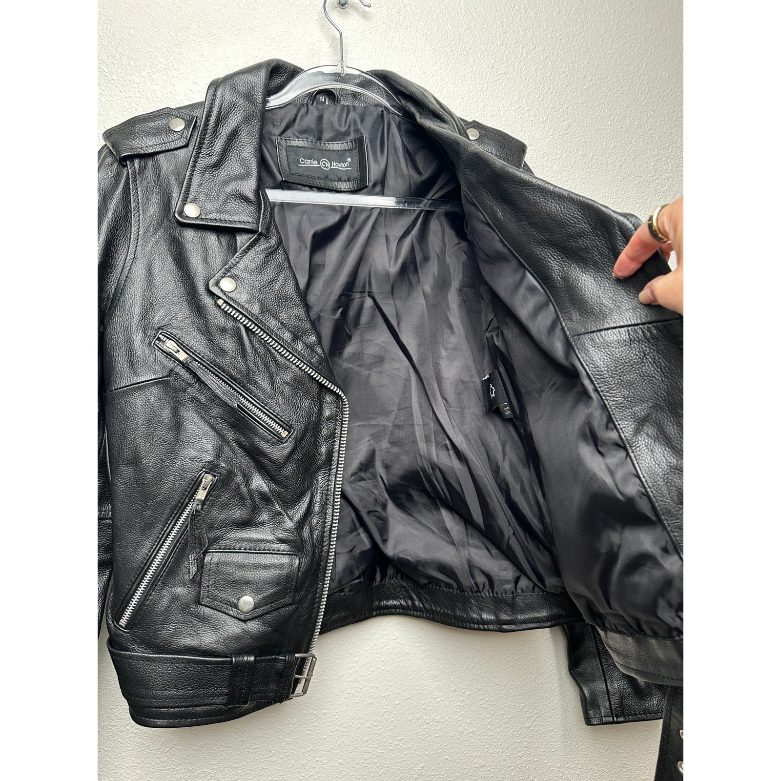 Carrie Hoxton Black Leather Moto Biker Jacket Women’s 14 Belted Zip