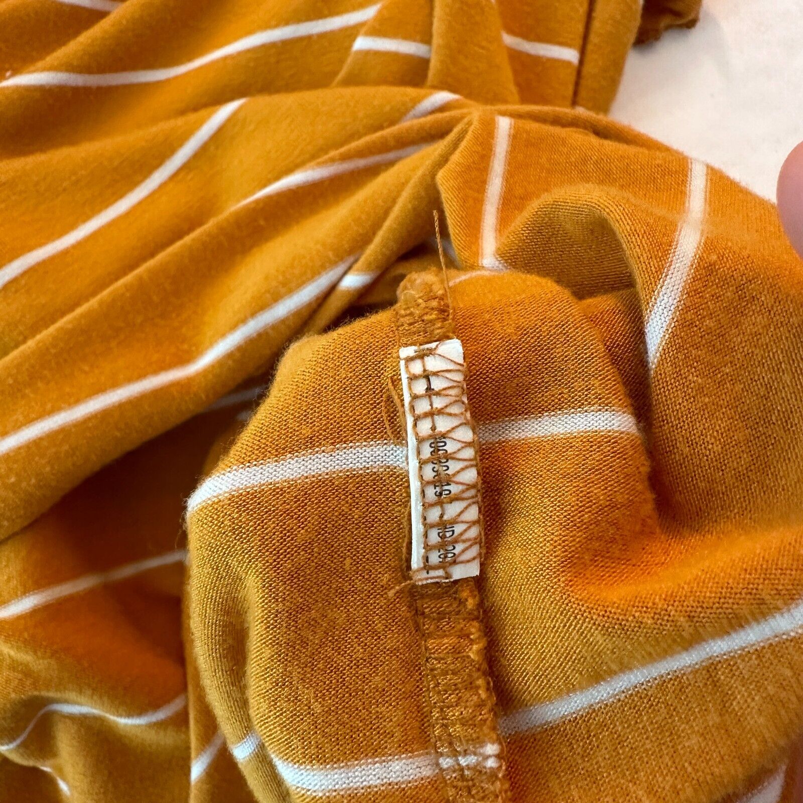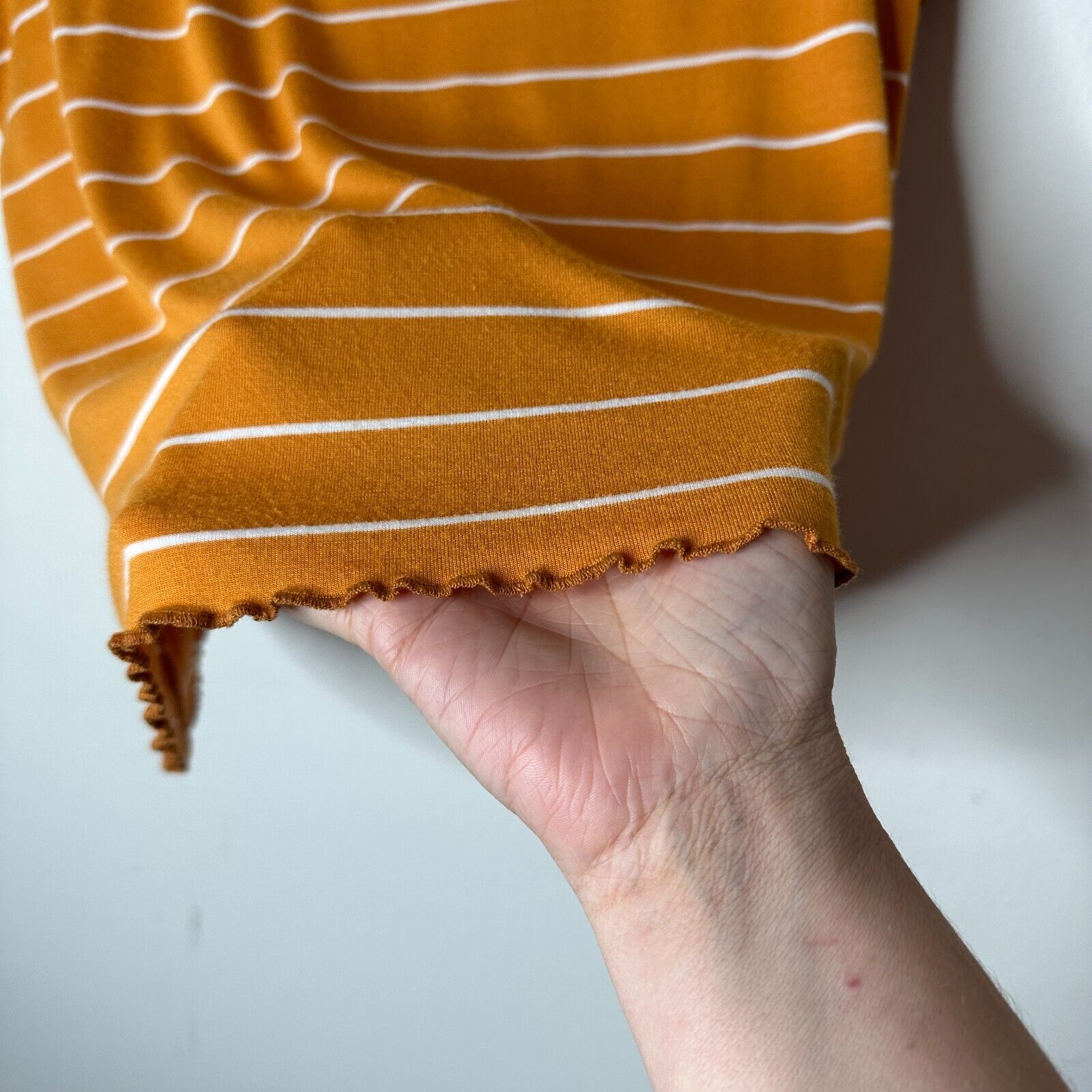 Orange & White Striped Short Sleeve Tee Scallop Edges Round Neck