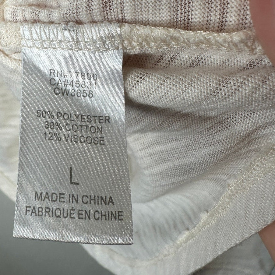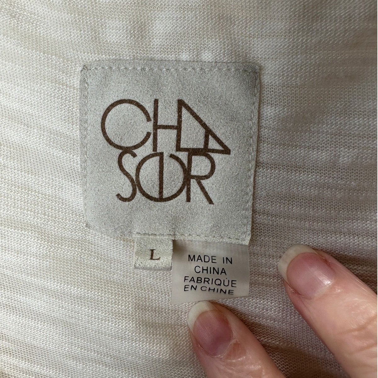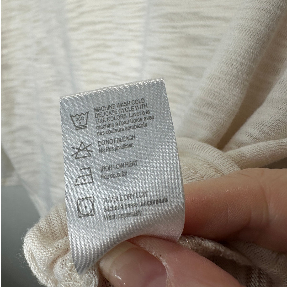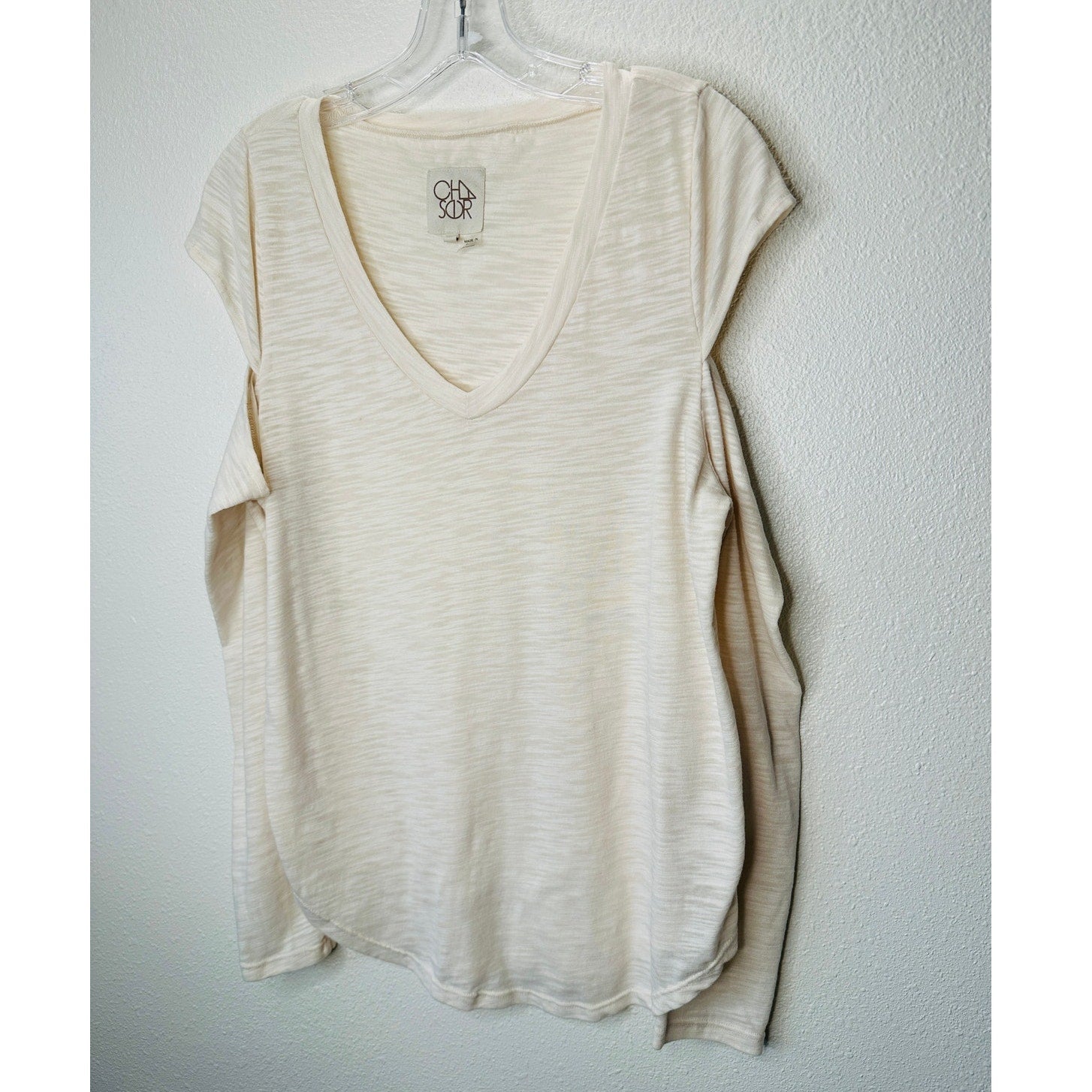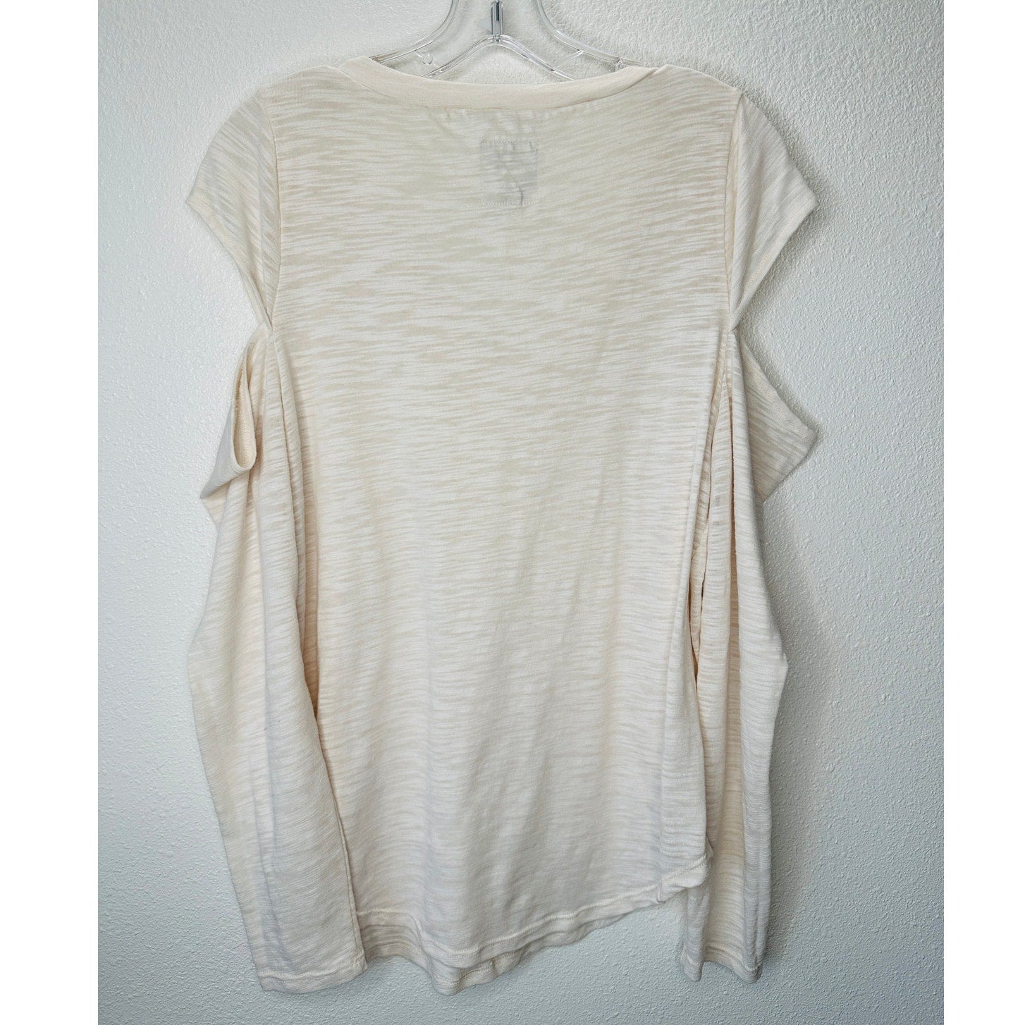 Chaser Cream V-Neck Cold Shoulder Long Sleeve Burnout Top L