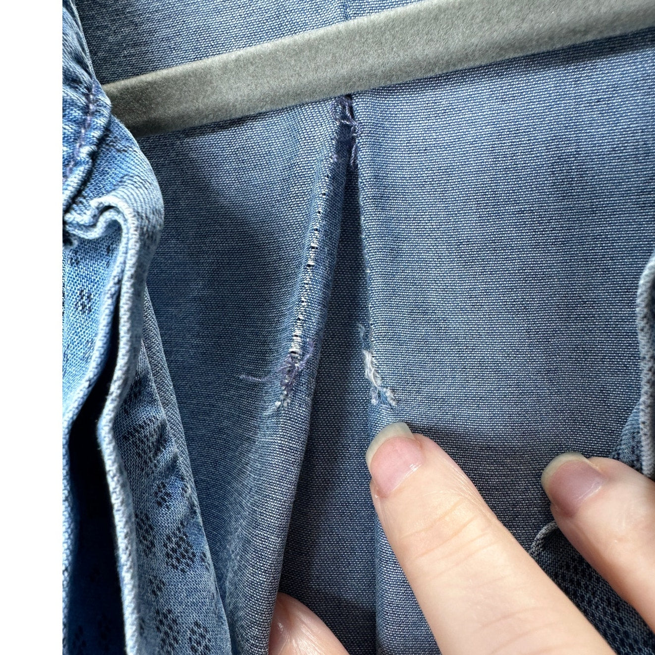 Cloth & Stone Denim Blue Spotted Animal Print Front Button Collared Long Sleeve Back Split Shirt