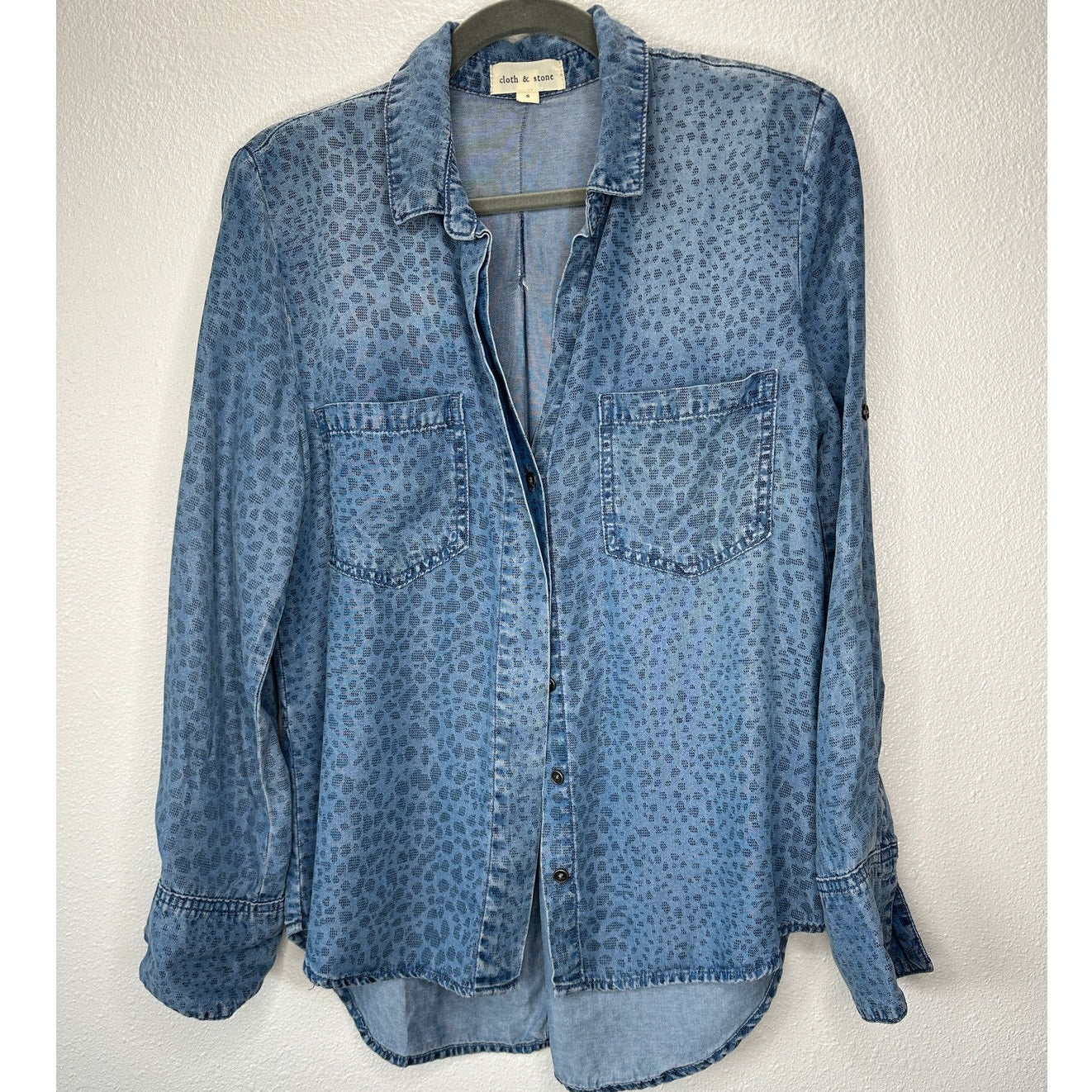 Cloth & Stone Denim Blue Animal Print Button Collared Shirt S