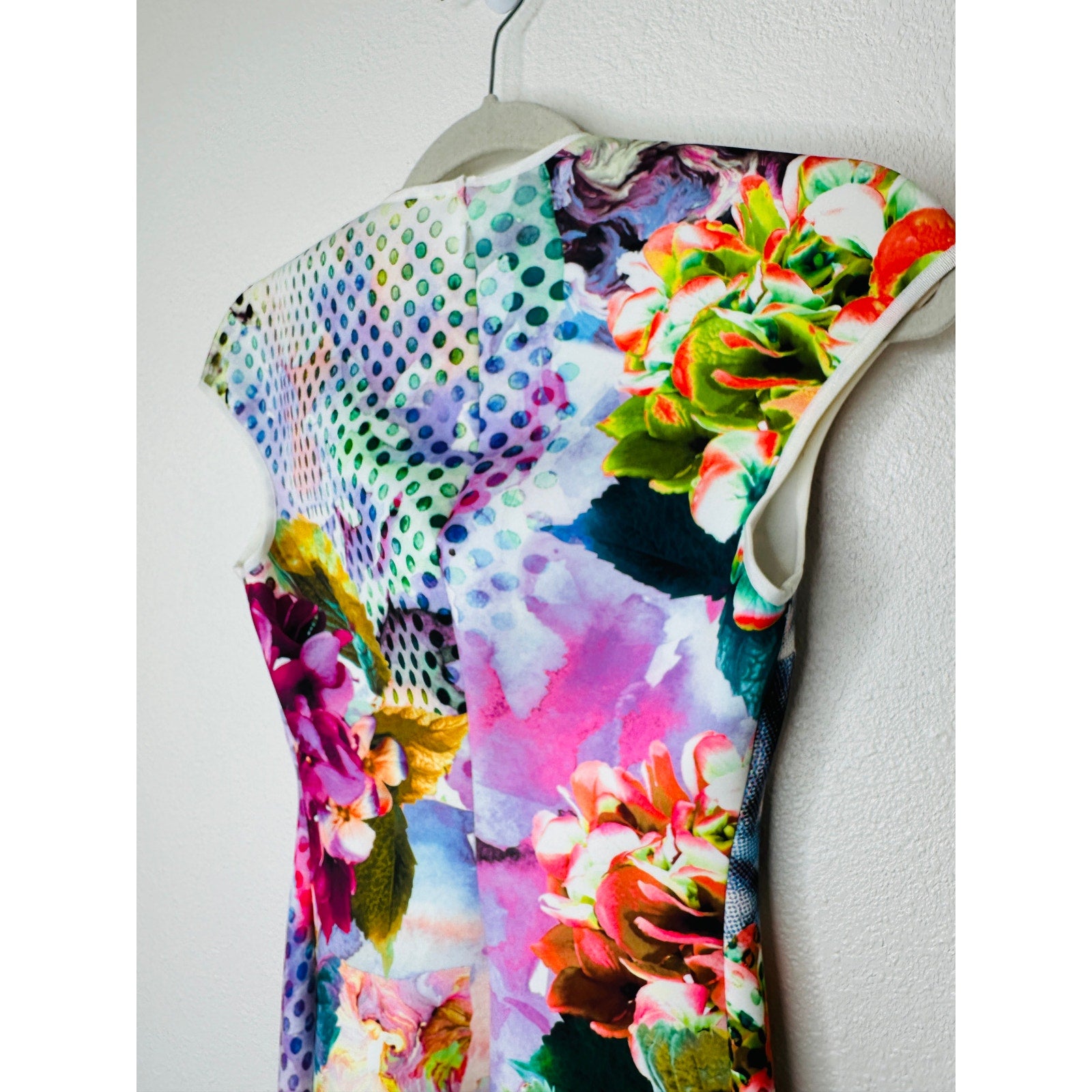 Make a bold and colorful statement with the Clover Canyon Pool Flower Neoprene Multi Color Bodycon Dress. Featuring a striking mix of teal, pink, orange, and white hues, this dress is perfect for those who love to stand out from the crowd. Made from neoprene fabric, it offers a body-hugging fit that accentuates your curves while providing maximum comfort. Whether you're heading to a cocktail party or a summer soiree, this dress will ensure all eyes are on you.