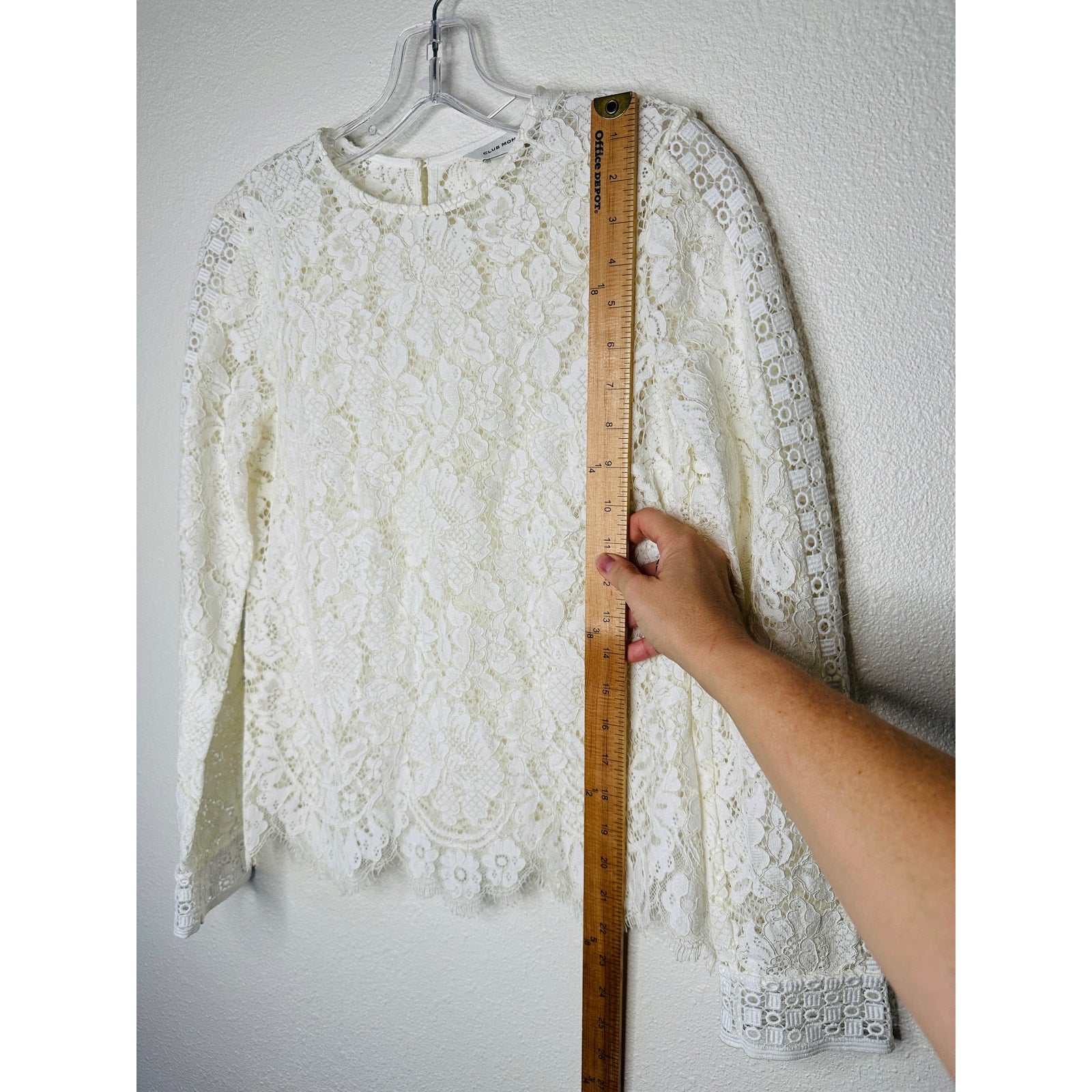 Club Monaco Ivory Floral Lace Round Neck Keyhole Back Long Sleeve Scalloped Hem Blouse XS