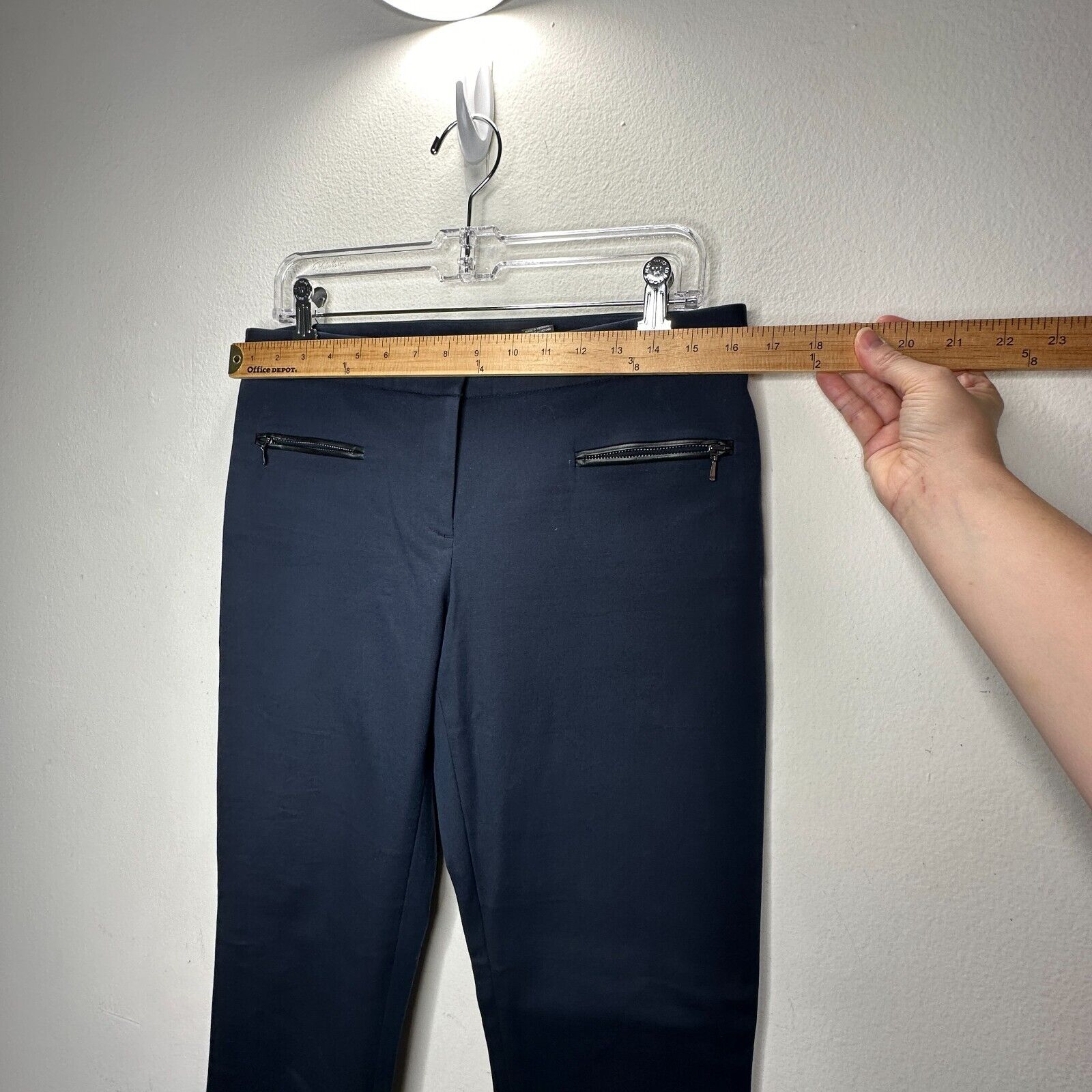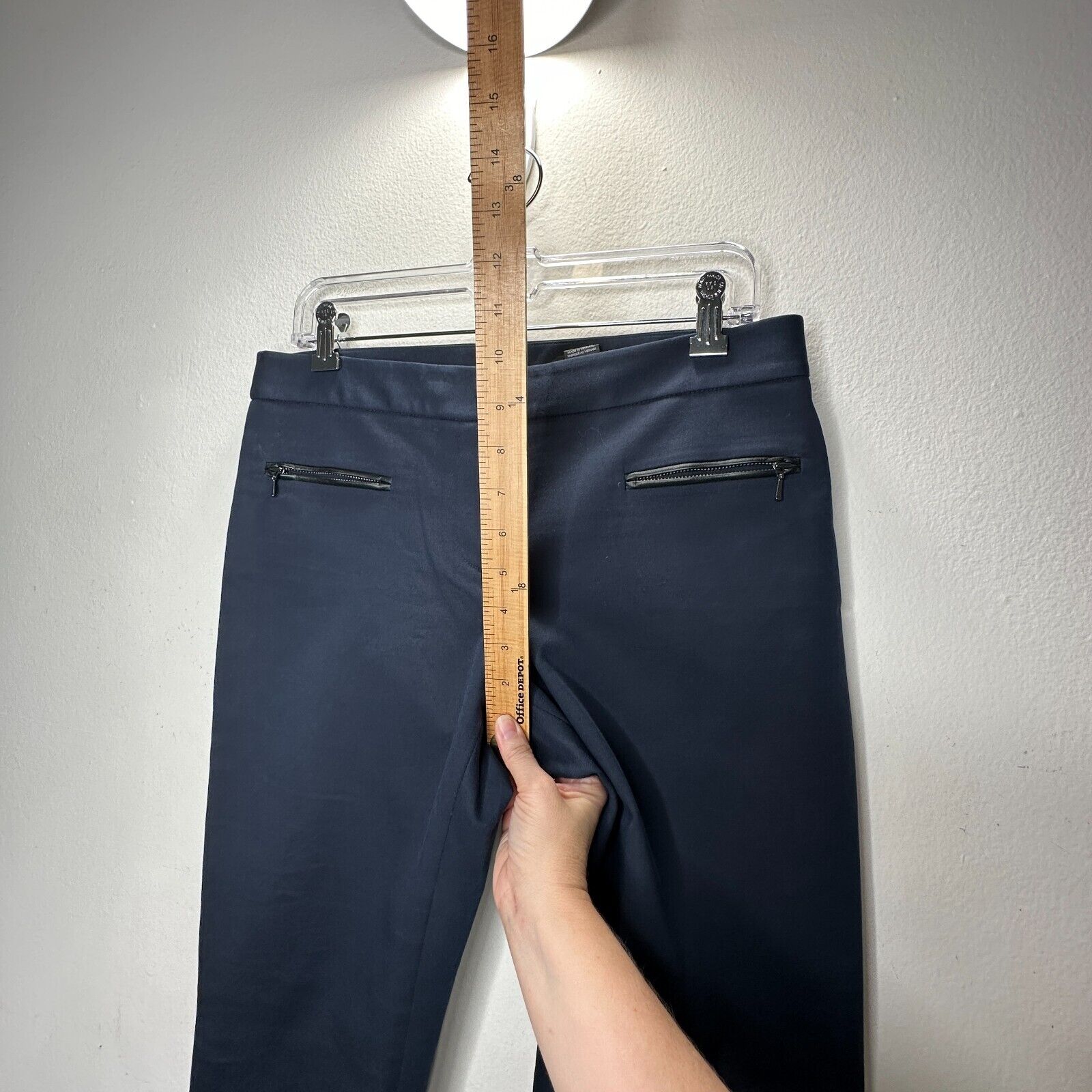 Club Monaco Navy Blue Straight Leg Leather-Lined Zip Pocket AnkleTrouser Pant 8