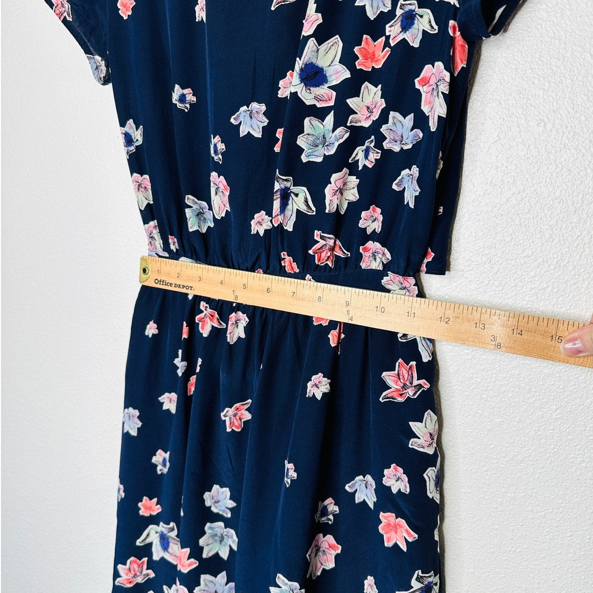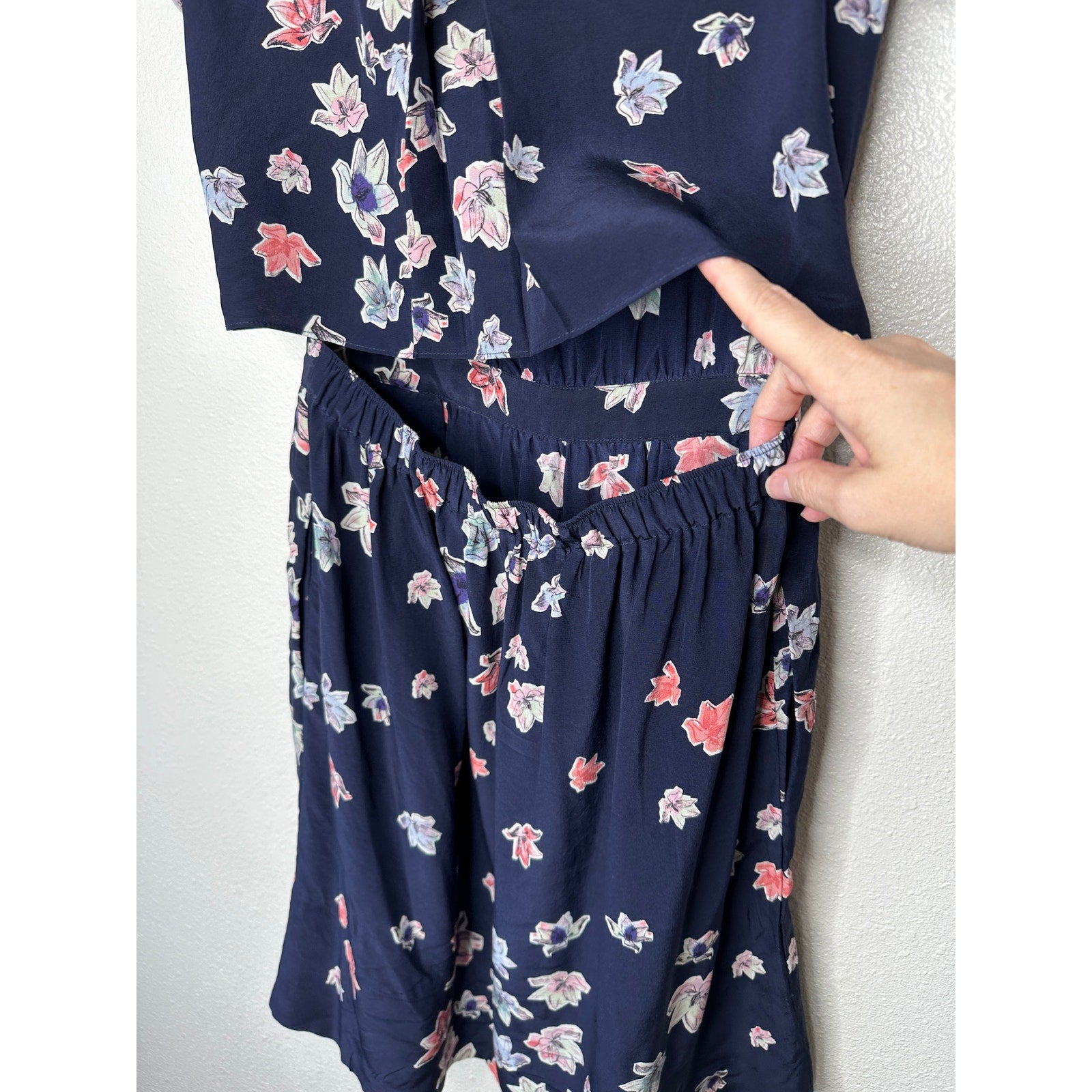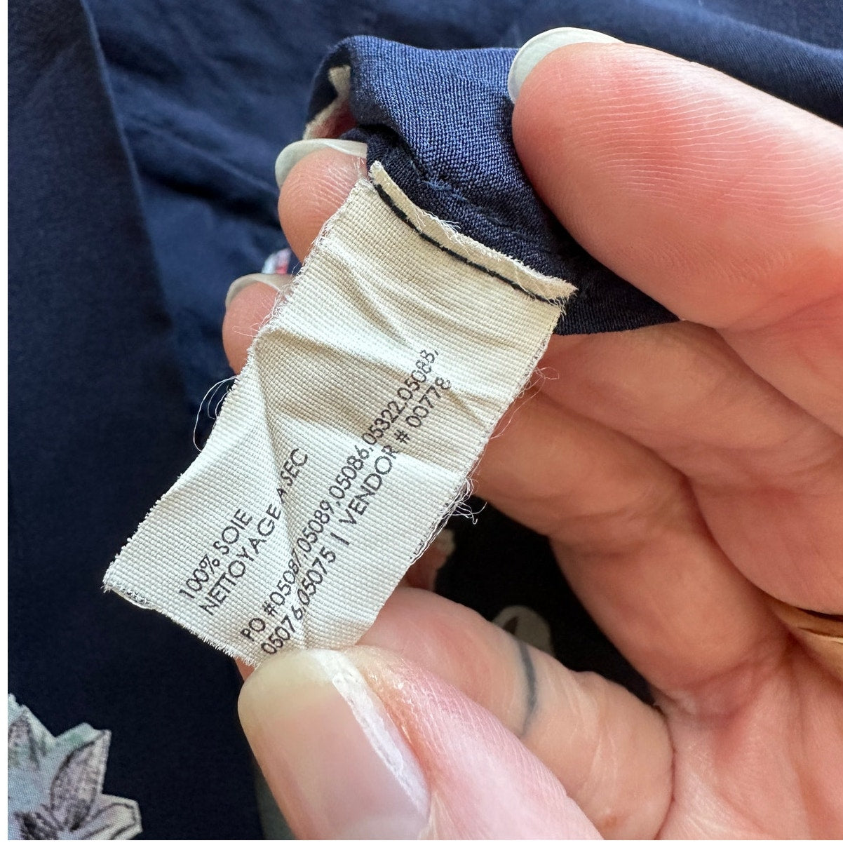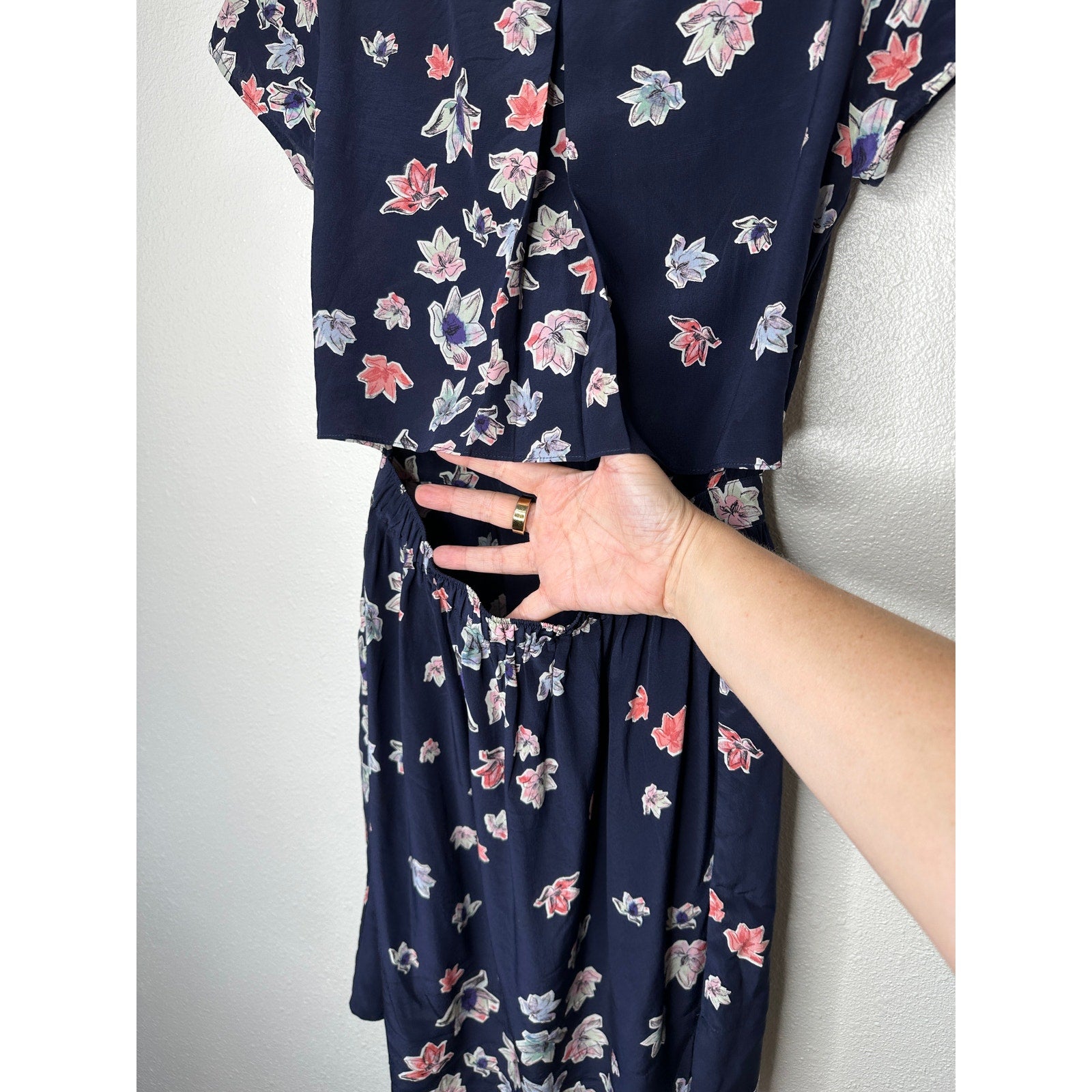Club Monaco Ruth 100% Silk Navy Floral Open Back Dress