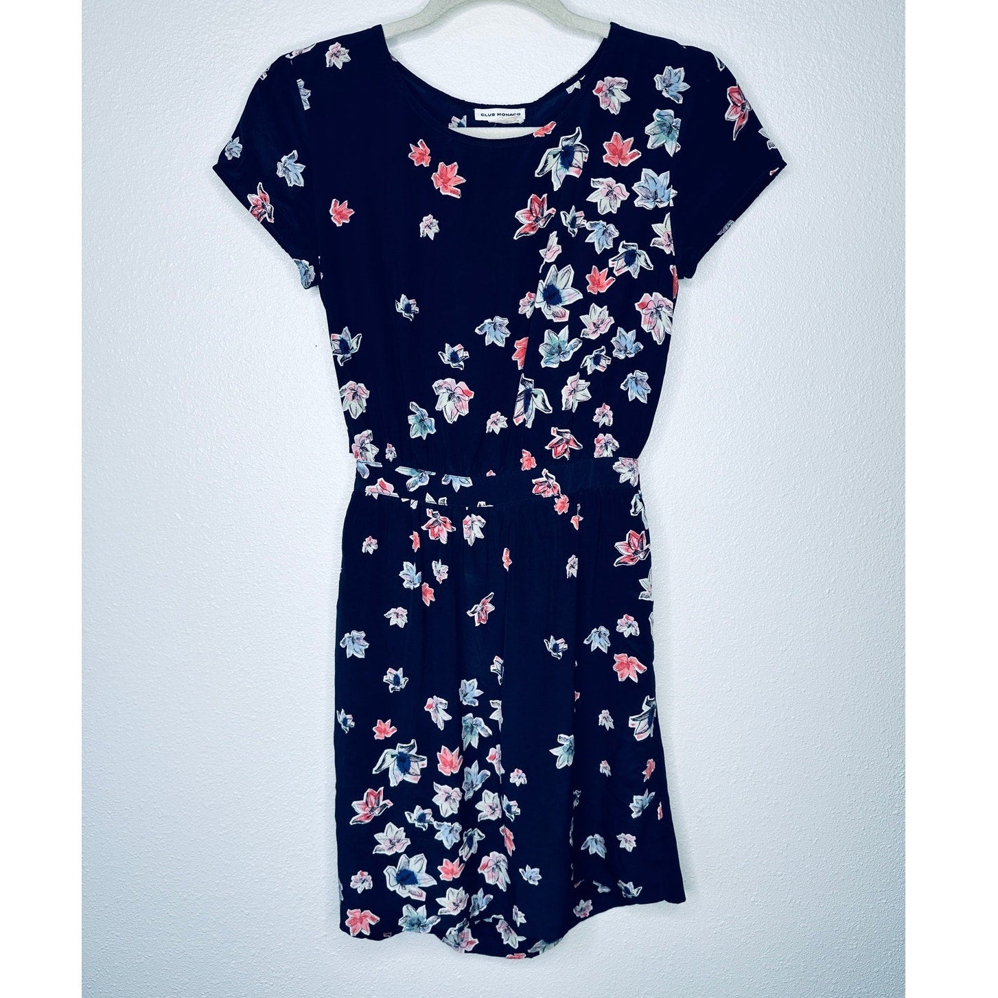 Club Monaco Ruth 100% Silk Navy Floral Open Back Dress pink blue 00